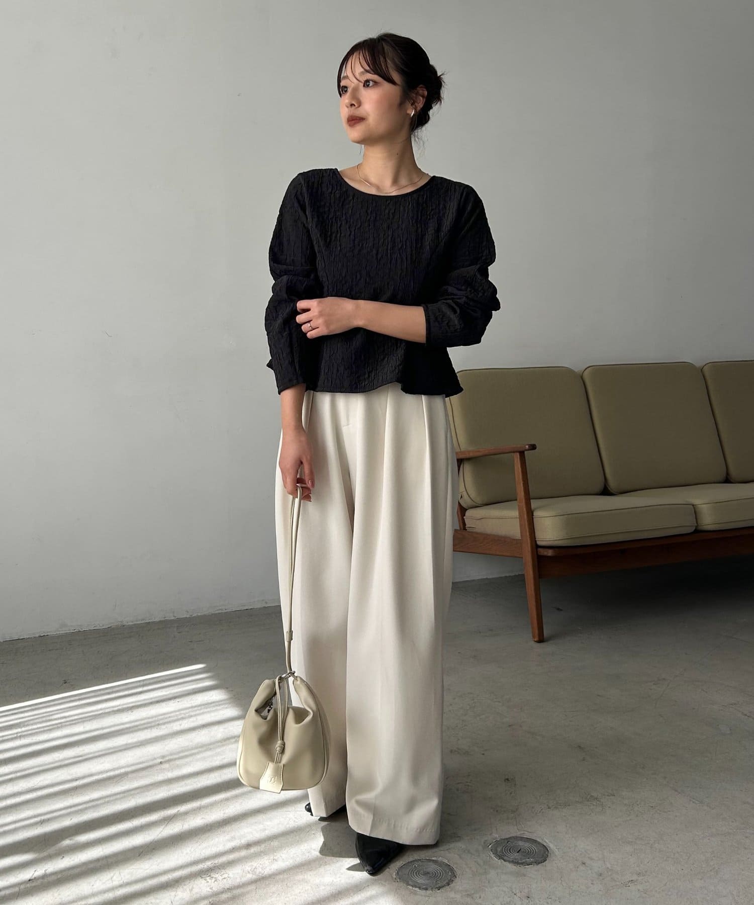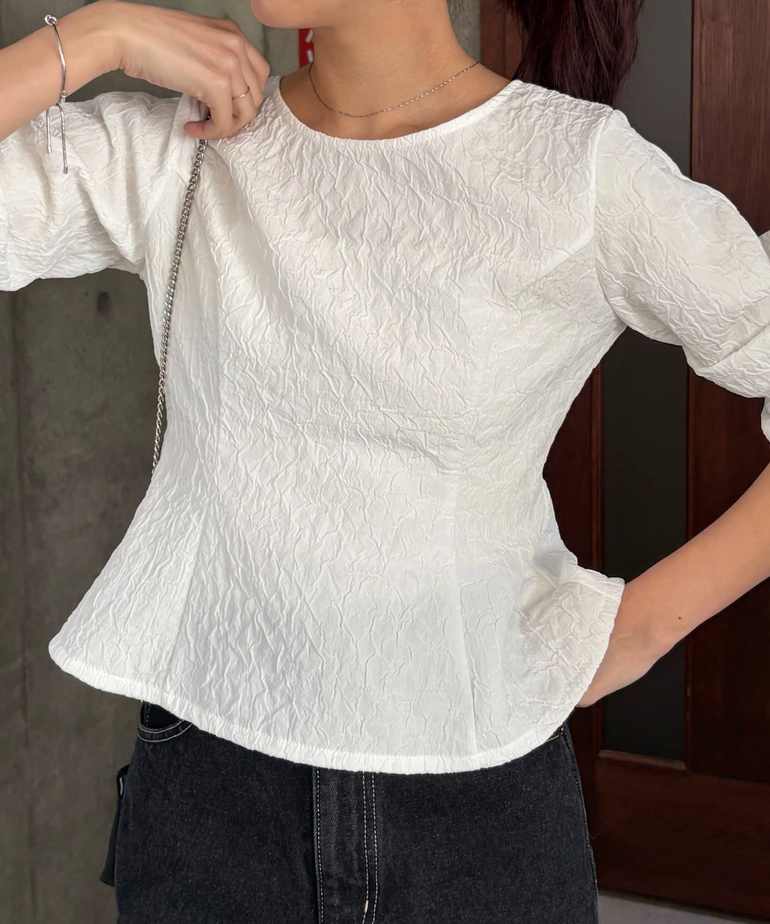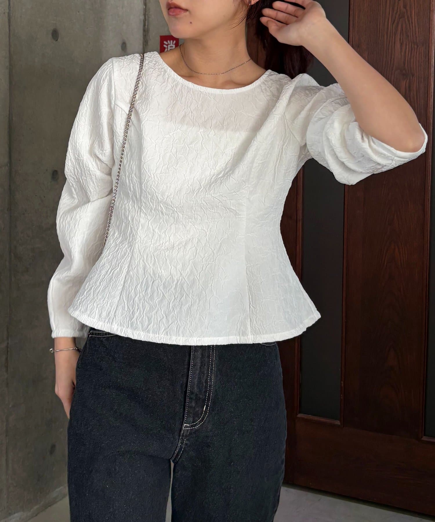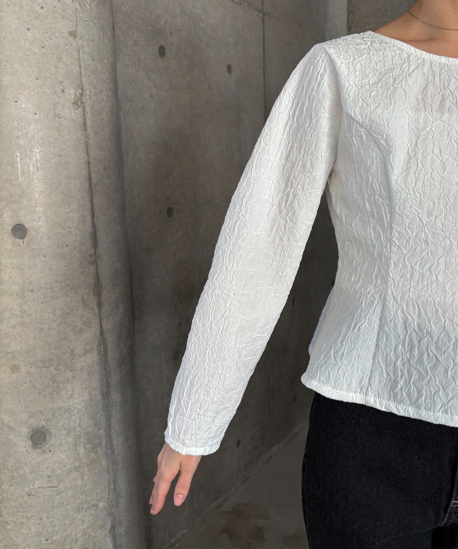 ・凹凸感のあるジャガード素材が華やかな春ブラウス