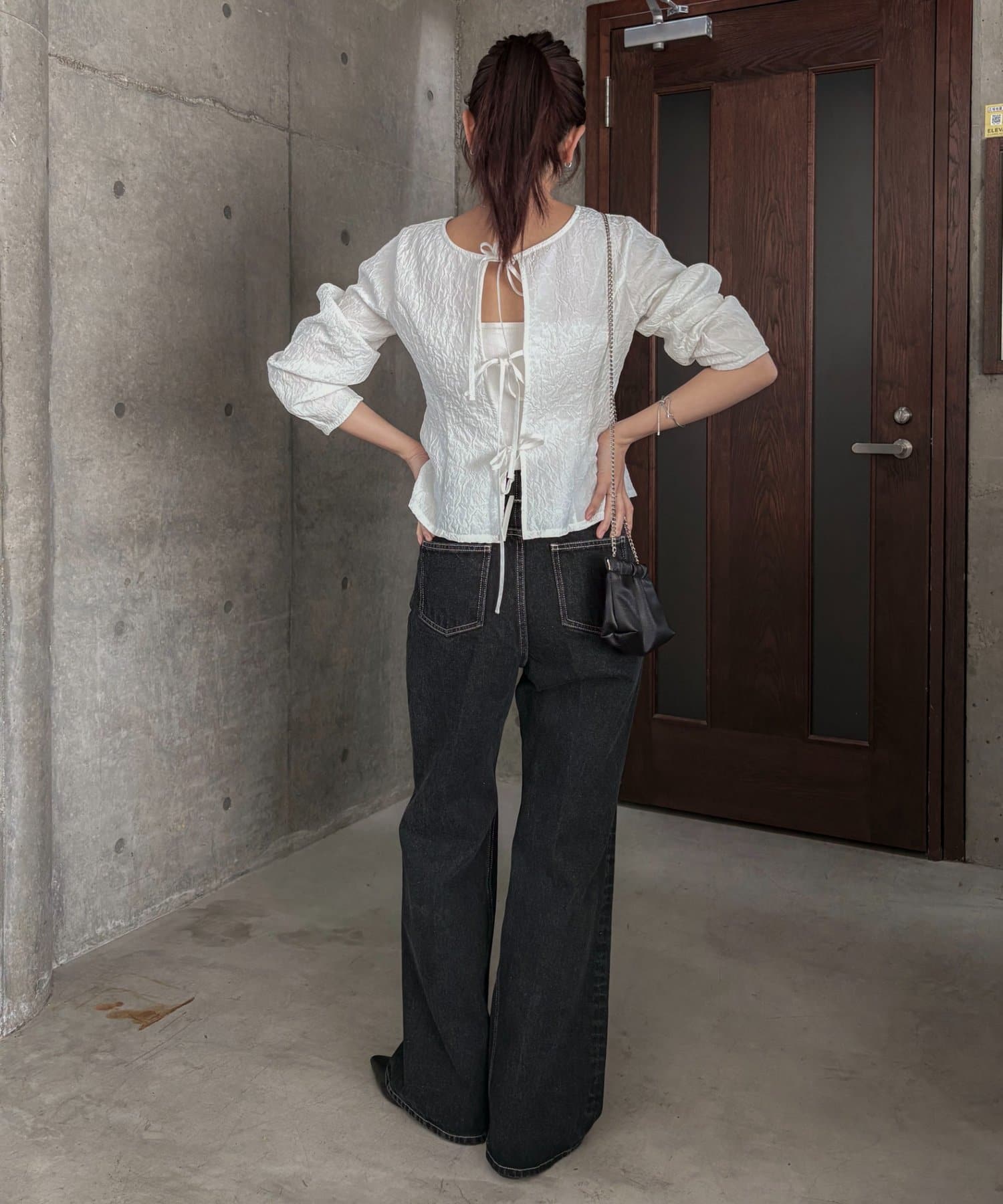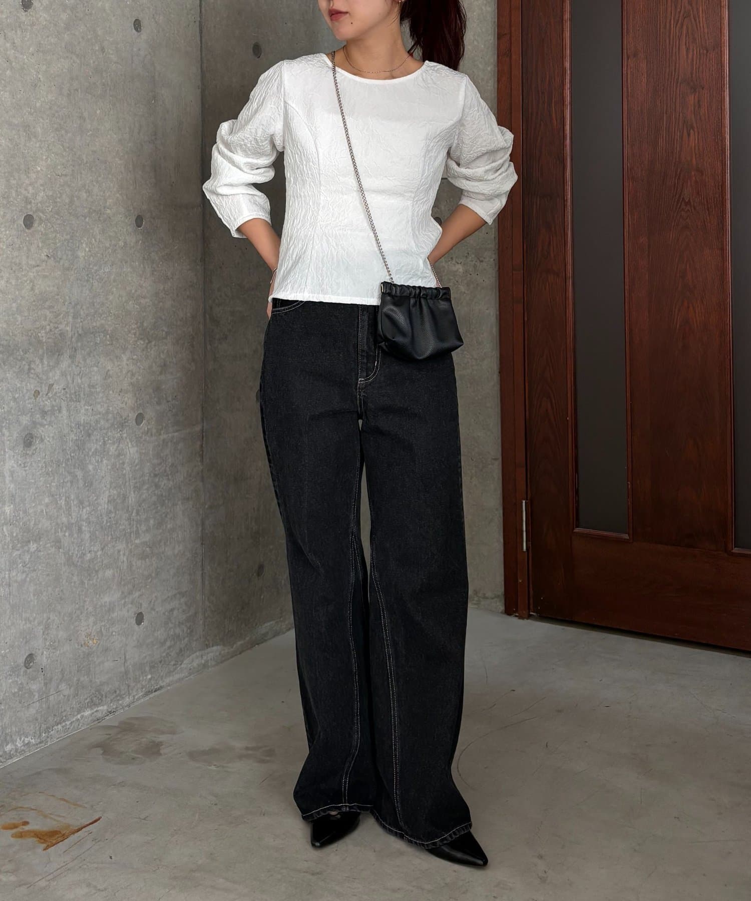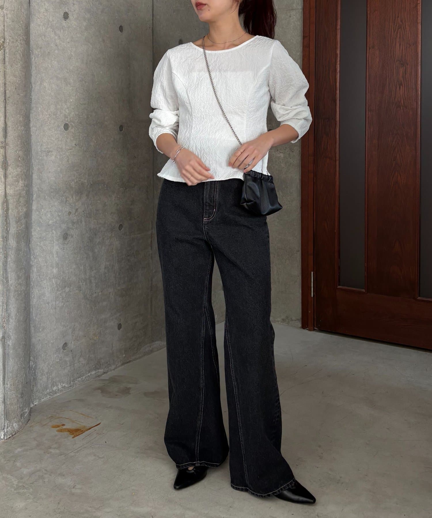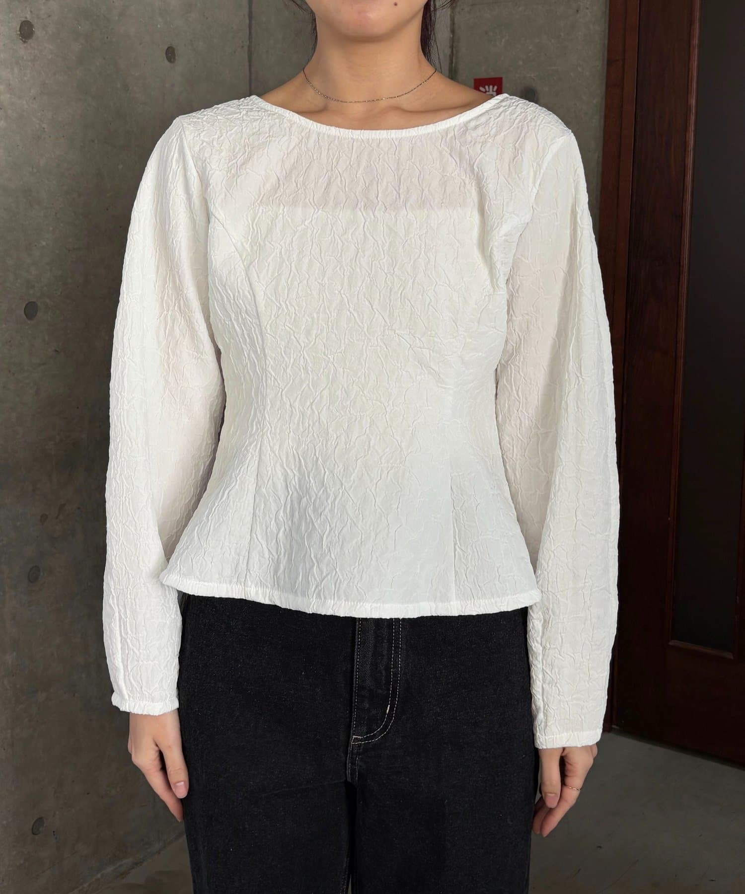 ・凹凸感のあるジャガード素材が華やかな春ブラウス