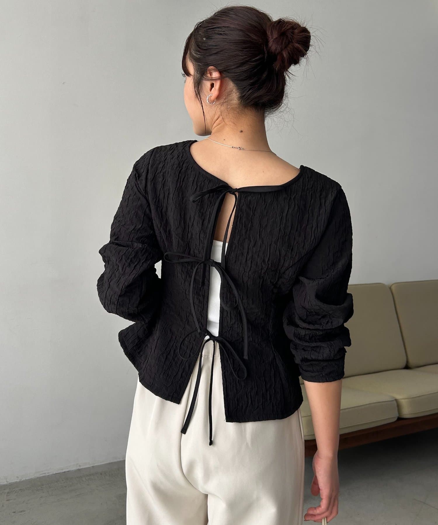 TOP > CAPRICIEUX LE'MAGE > レディース > トップス > シャツ/ブラウス(プルオーバー) > ジャガードバックリボンペプラムブラウス