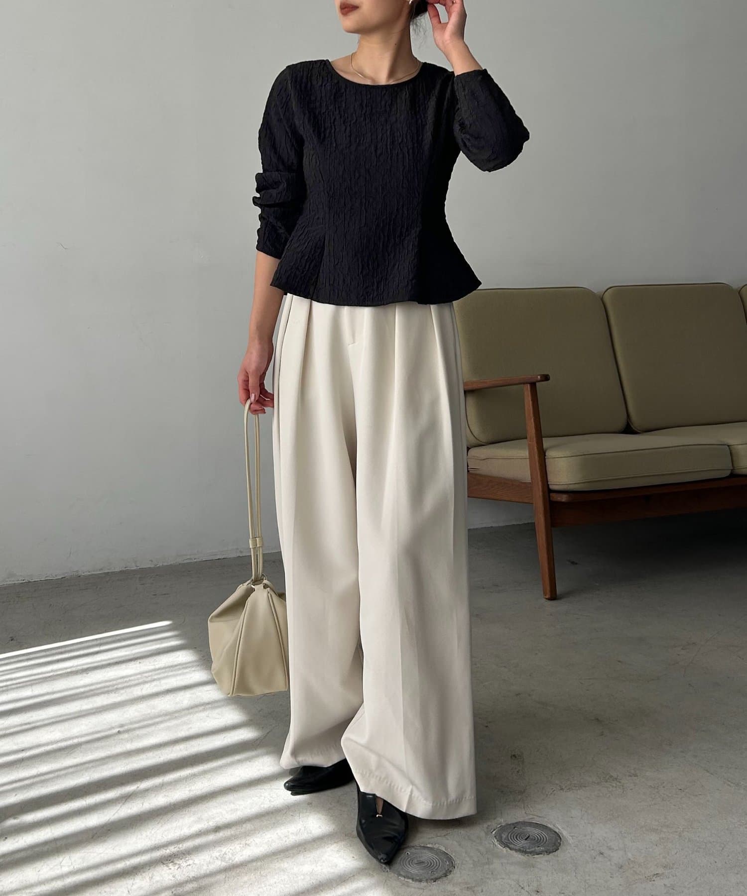マキシIラインスカート2タックワイドパンツを合わせてセレモニーシーンにも使える