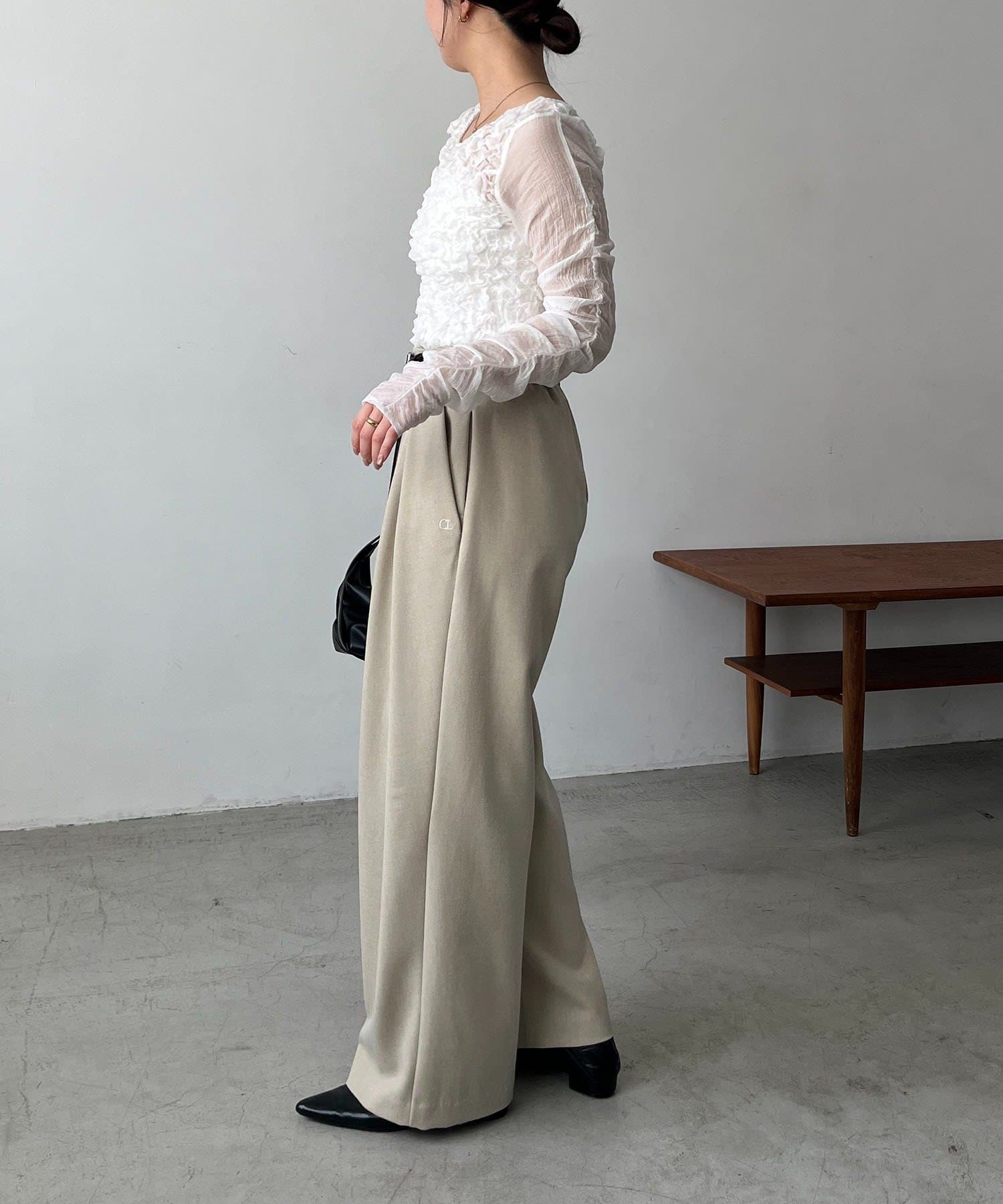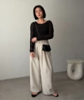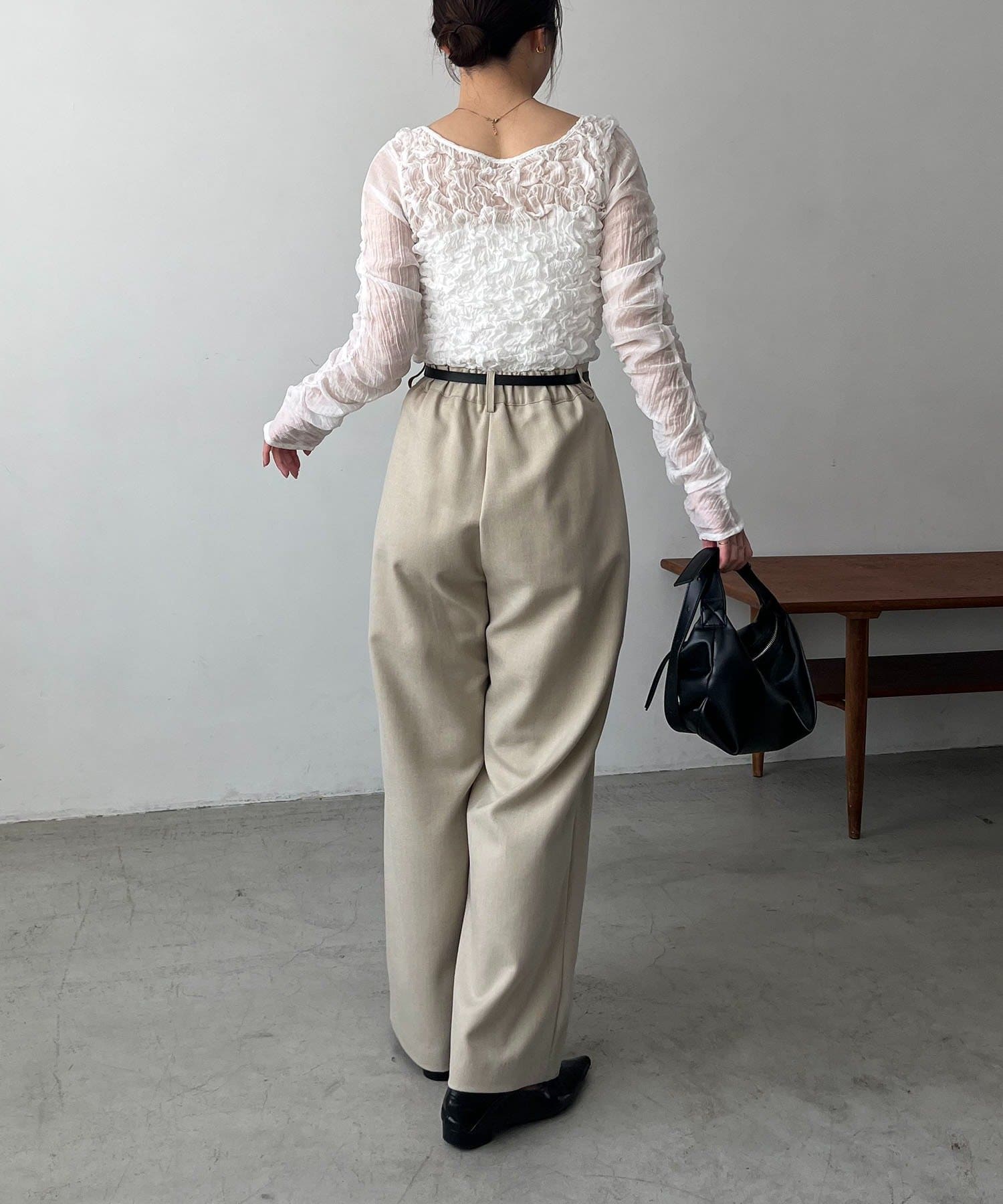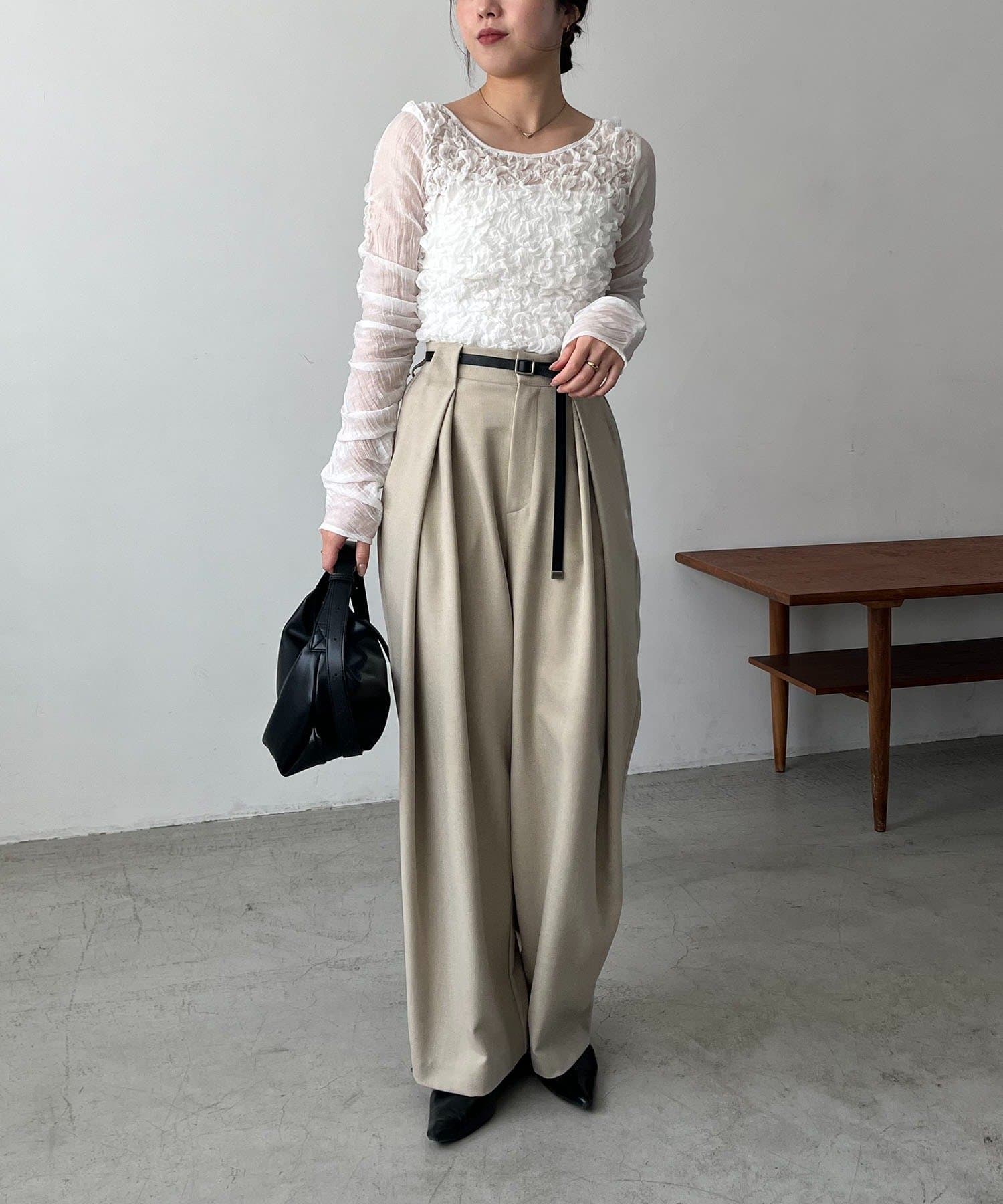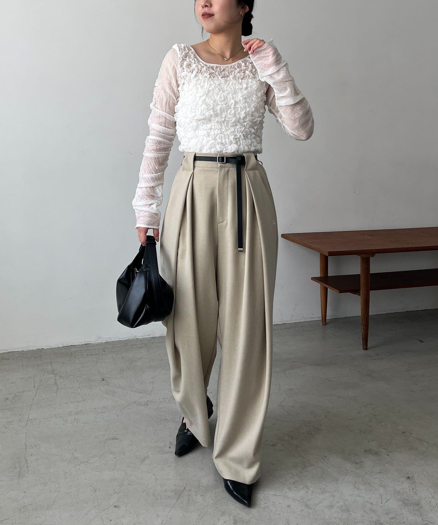【ホワイト着用アイテム】〈C.L〉レザーベルト付変形タックパンツ