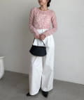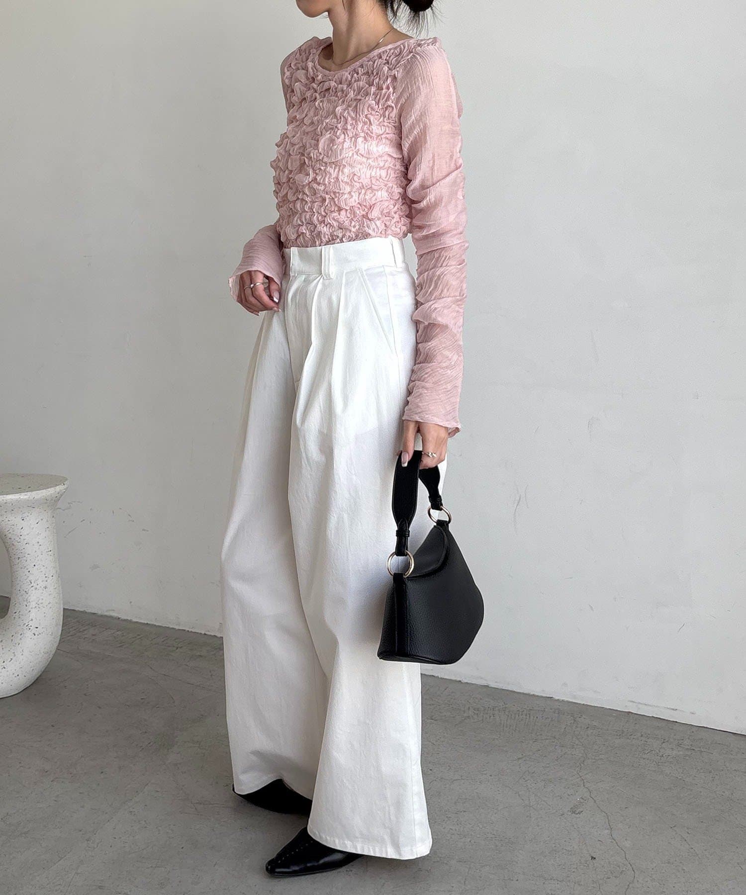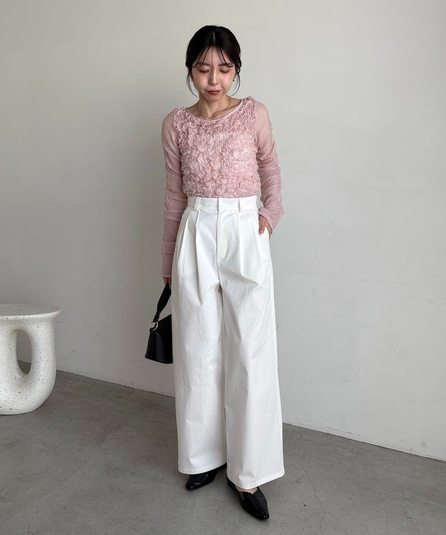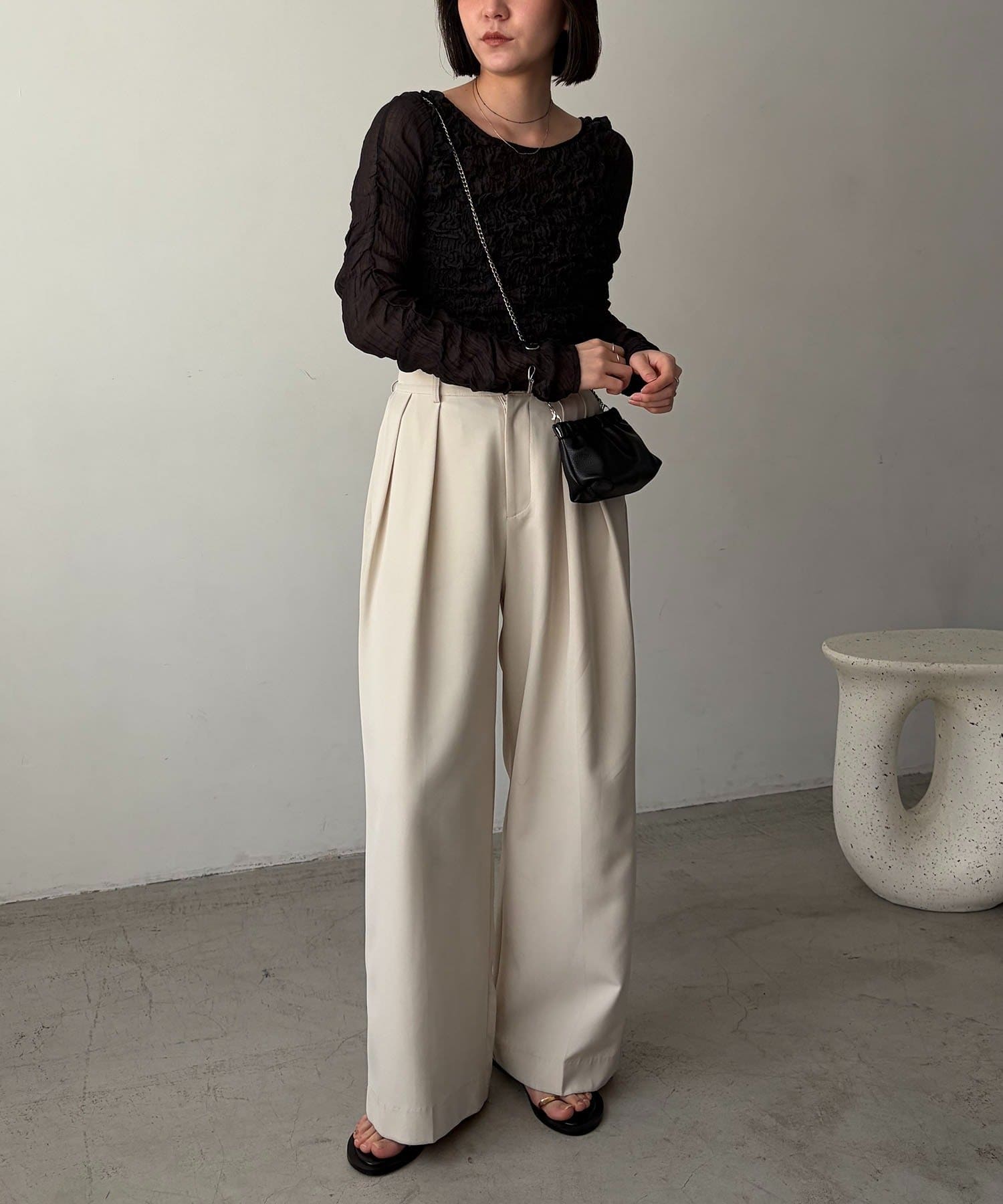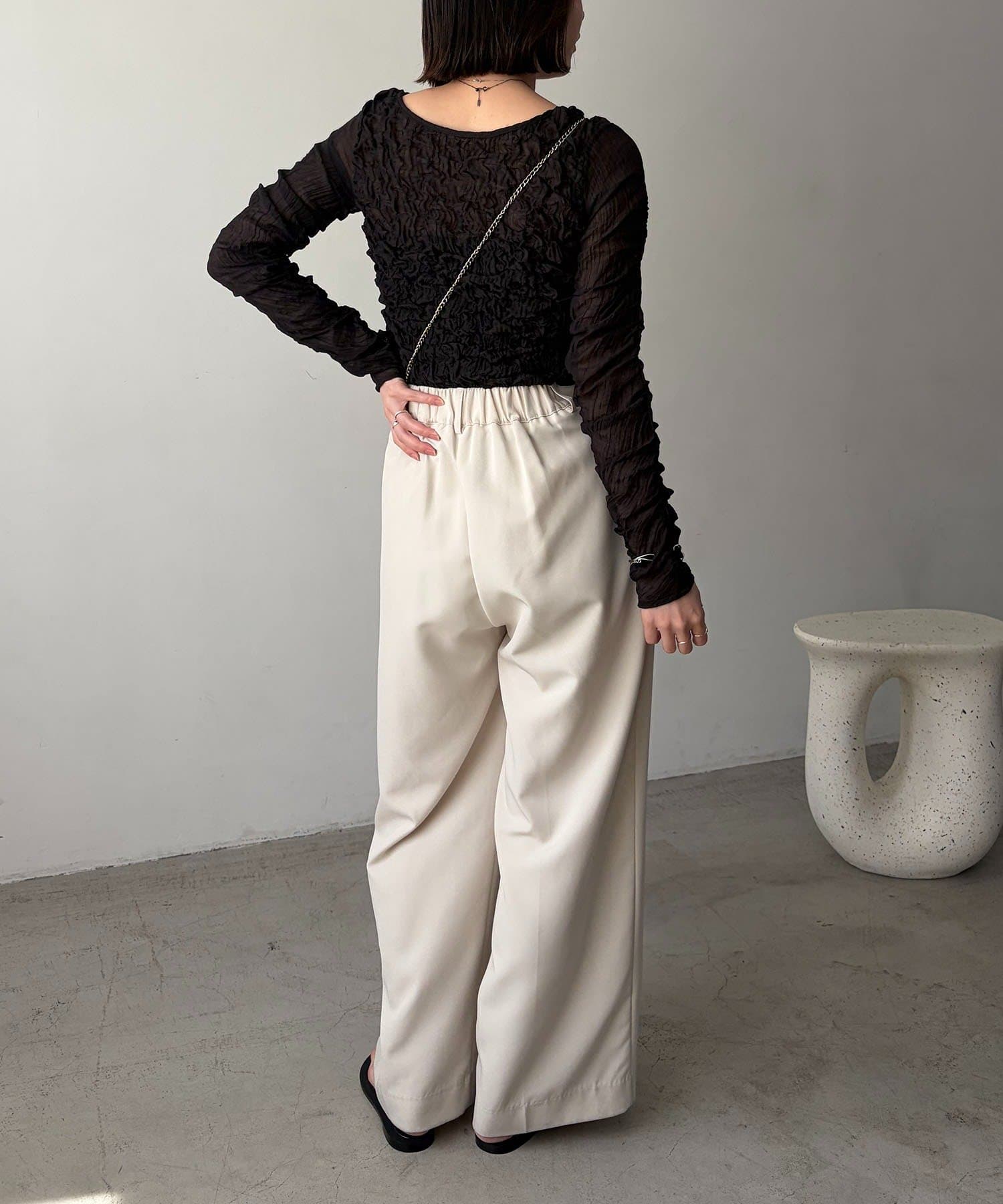 【ホワイト着用アイテム】〈C.L〉レザーベルト付変形タックパンツ