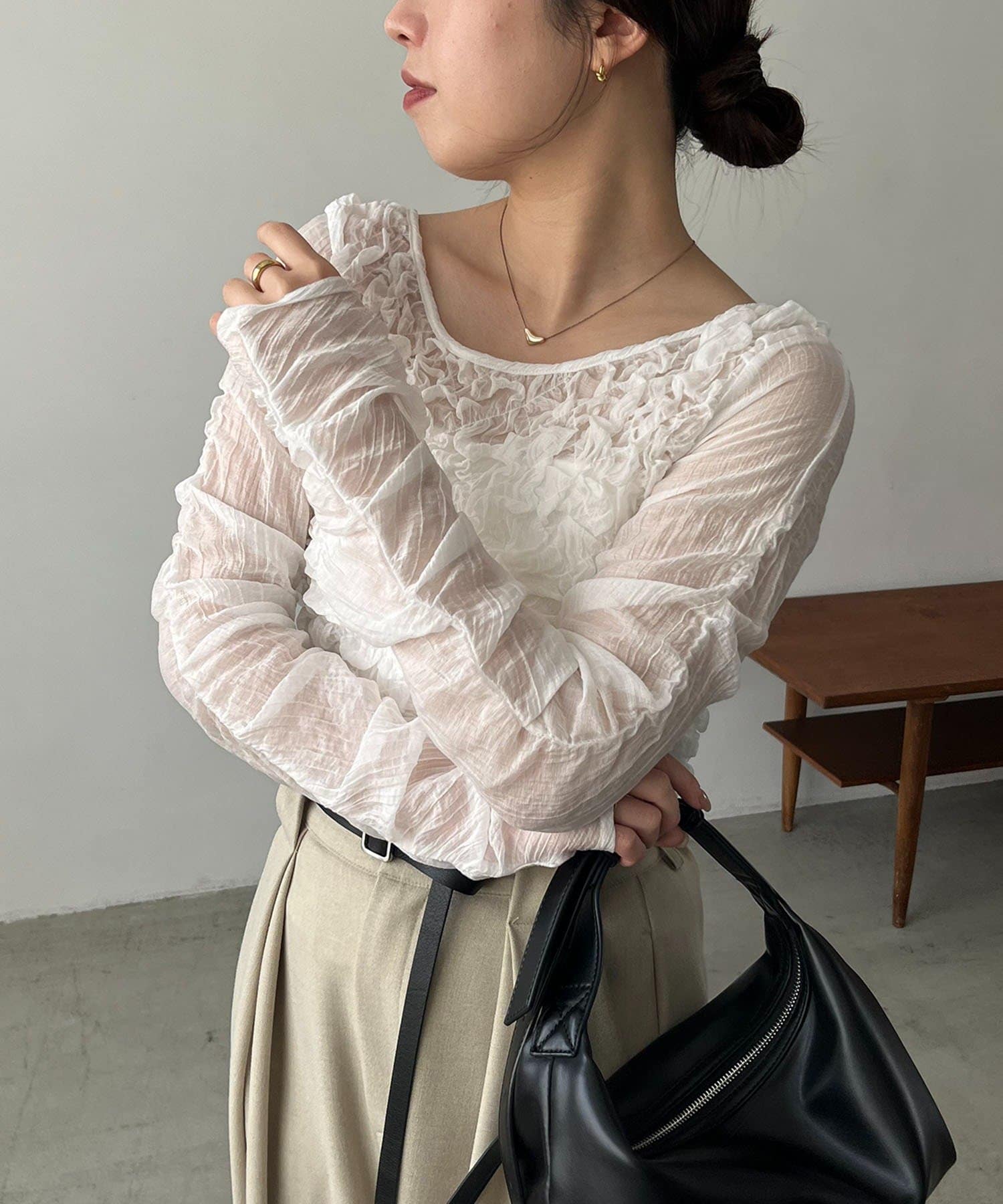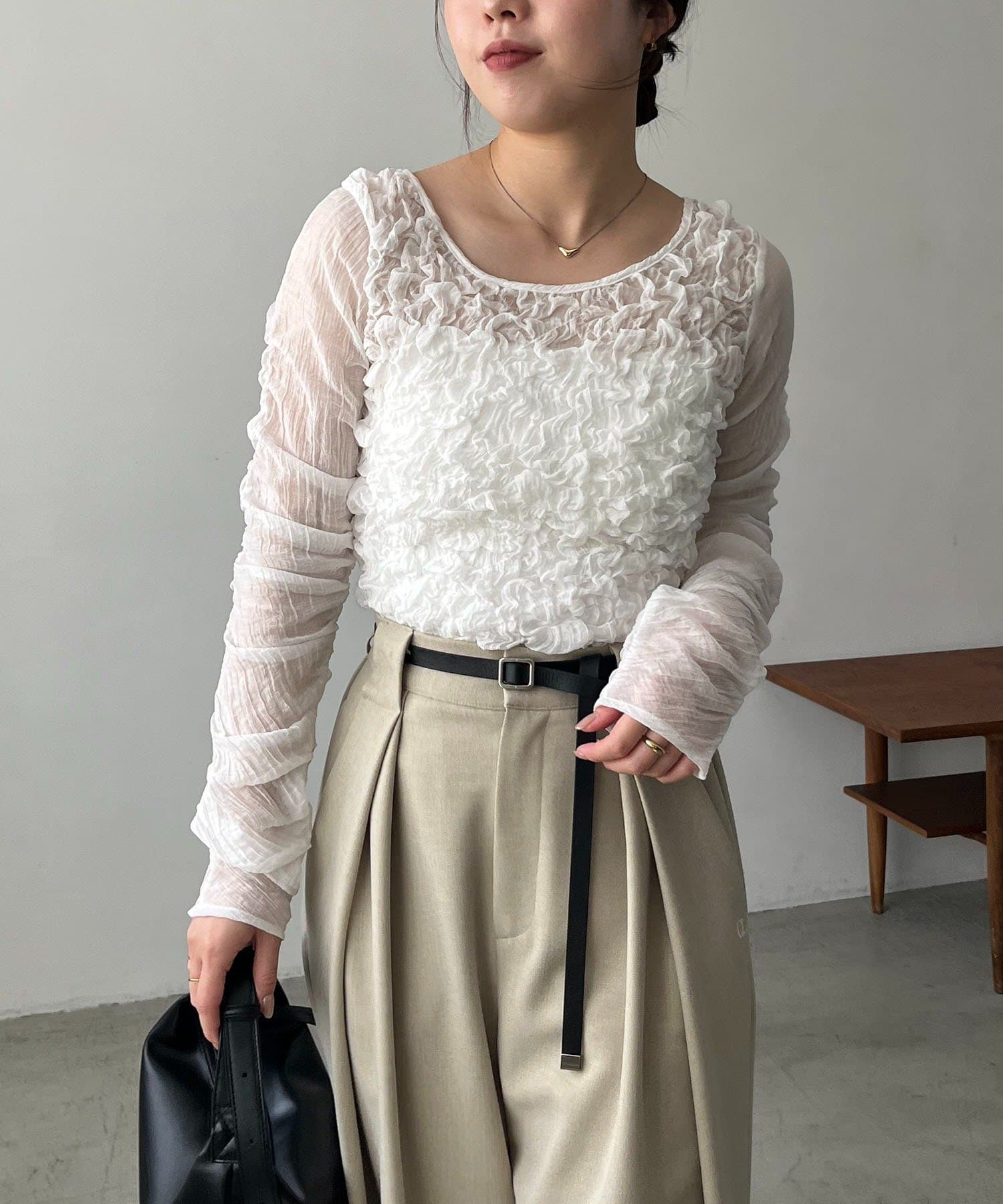 TOP > CAPRICIEUX LE'MAGE > レディース > トップス > Tシャツ/カットソー > シアーバブルブラウス