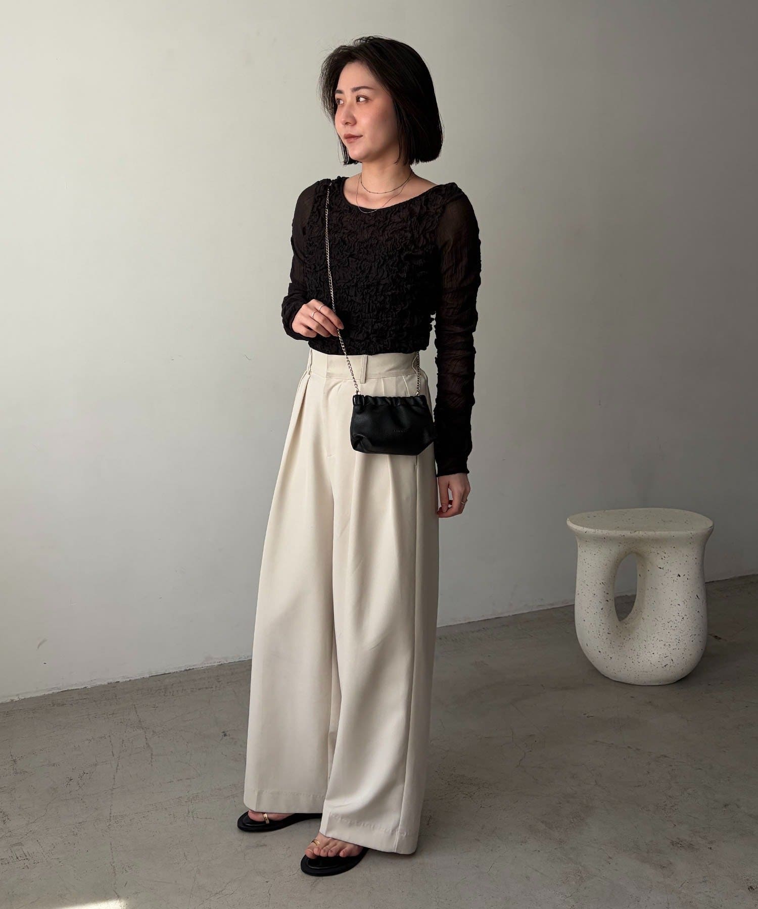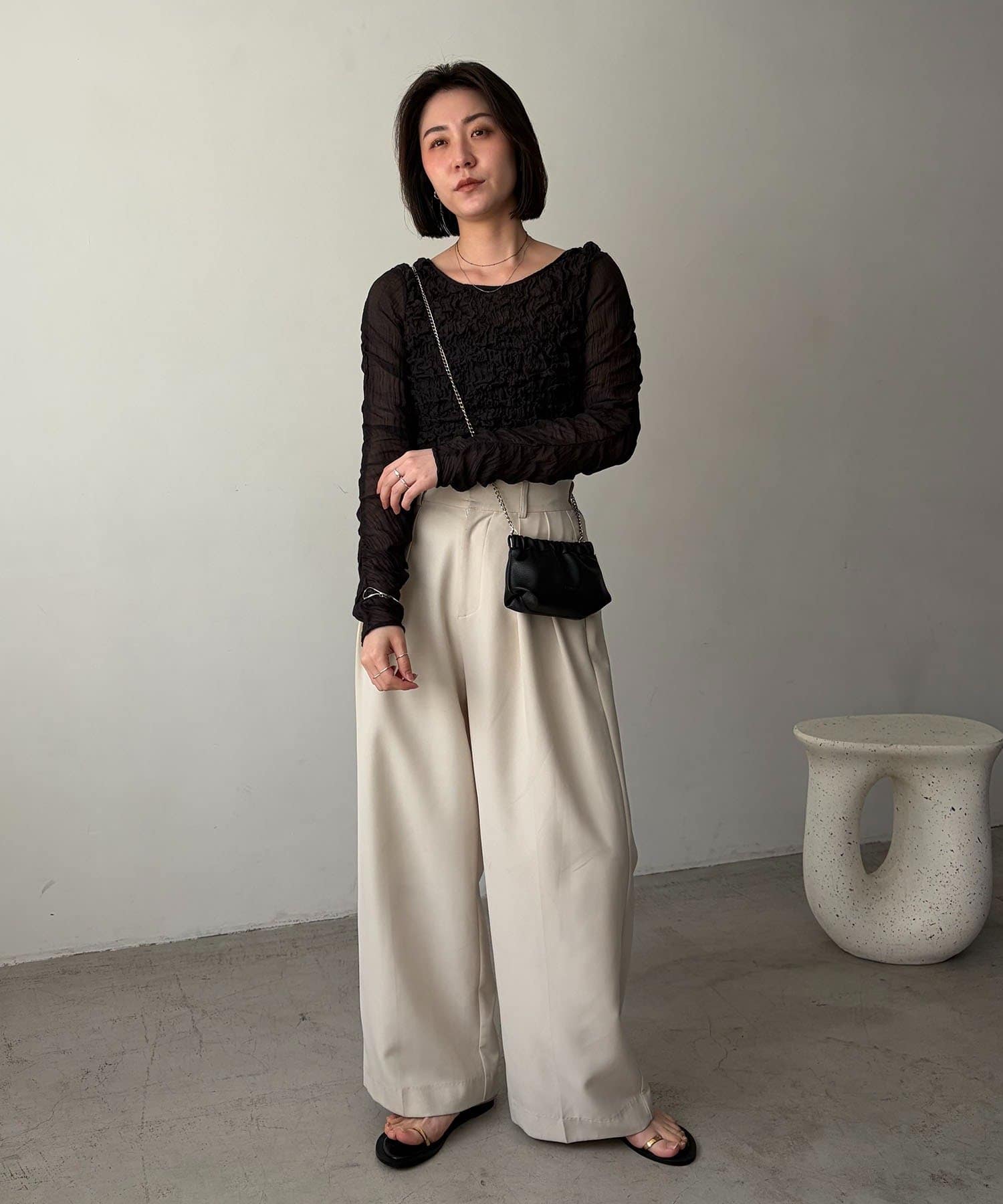 ・シアー素材が柔らかくフェミニンな雰囲気を演出