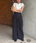 【ホワイト着用アイテム①】〈C.L〉レザーベルト付変形タックパンツ