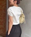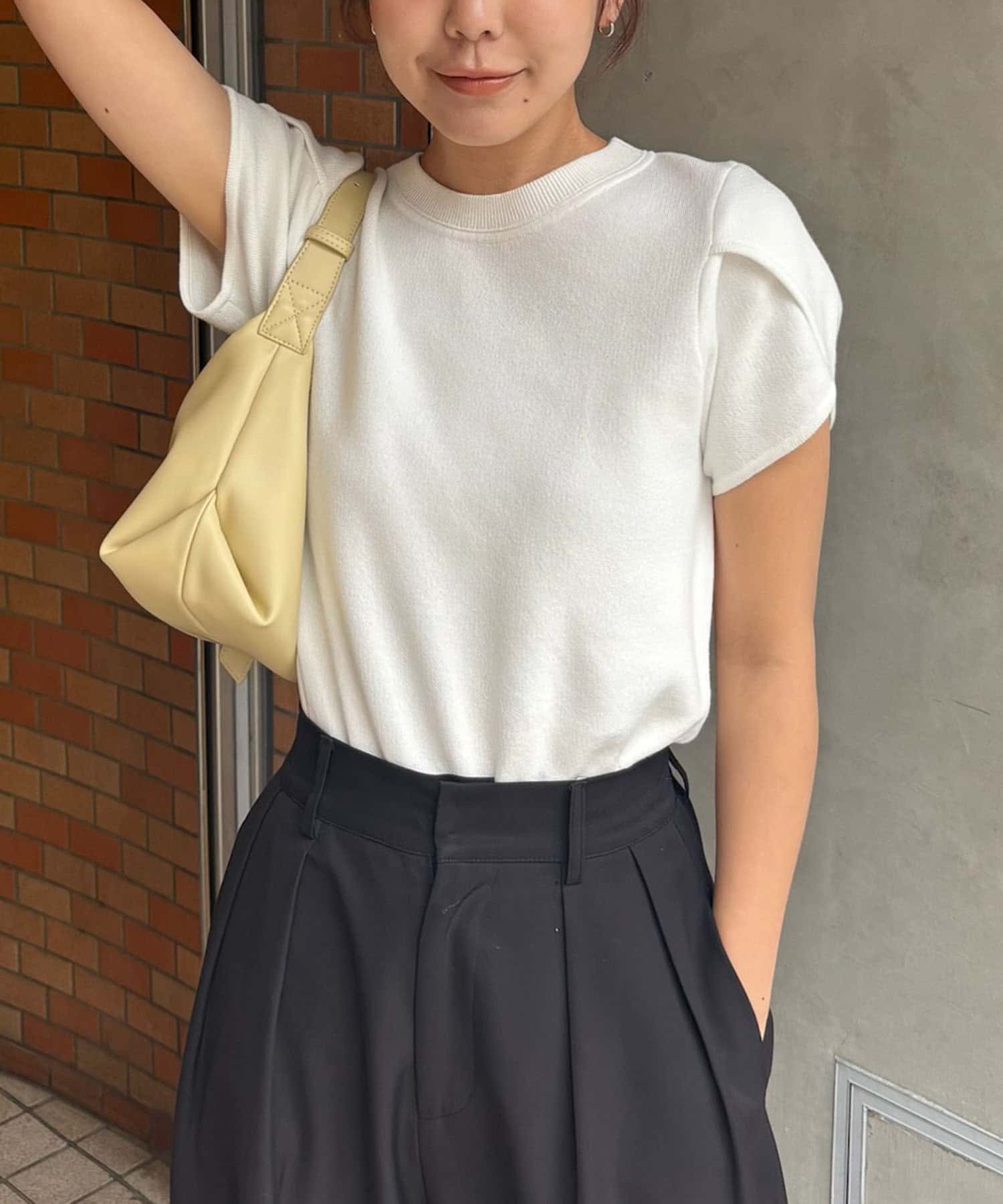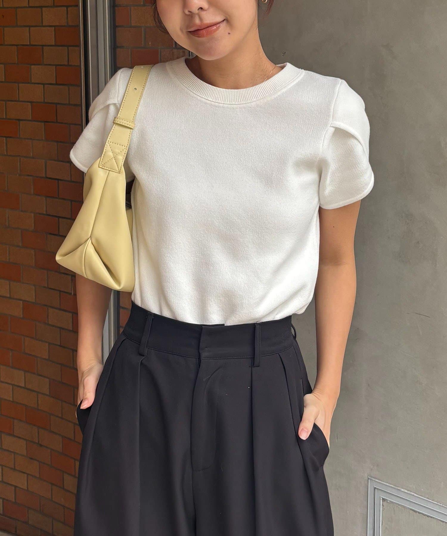 ・花びらのように重なったチューリップスリーブがポイントの春夏ニット