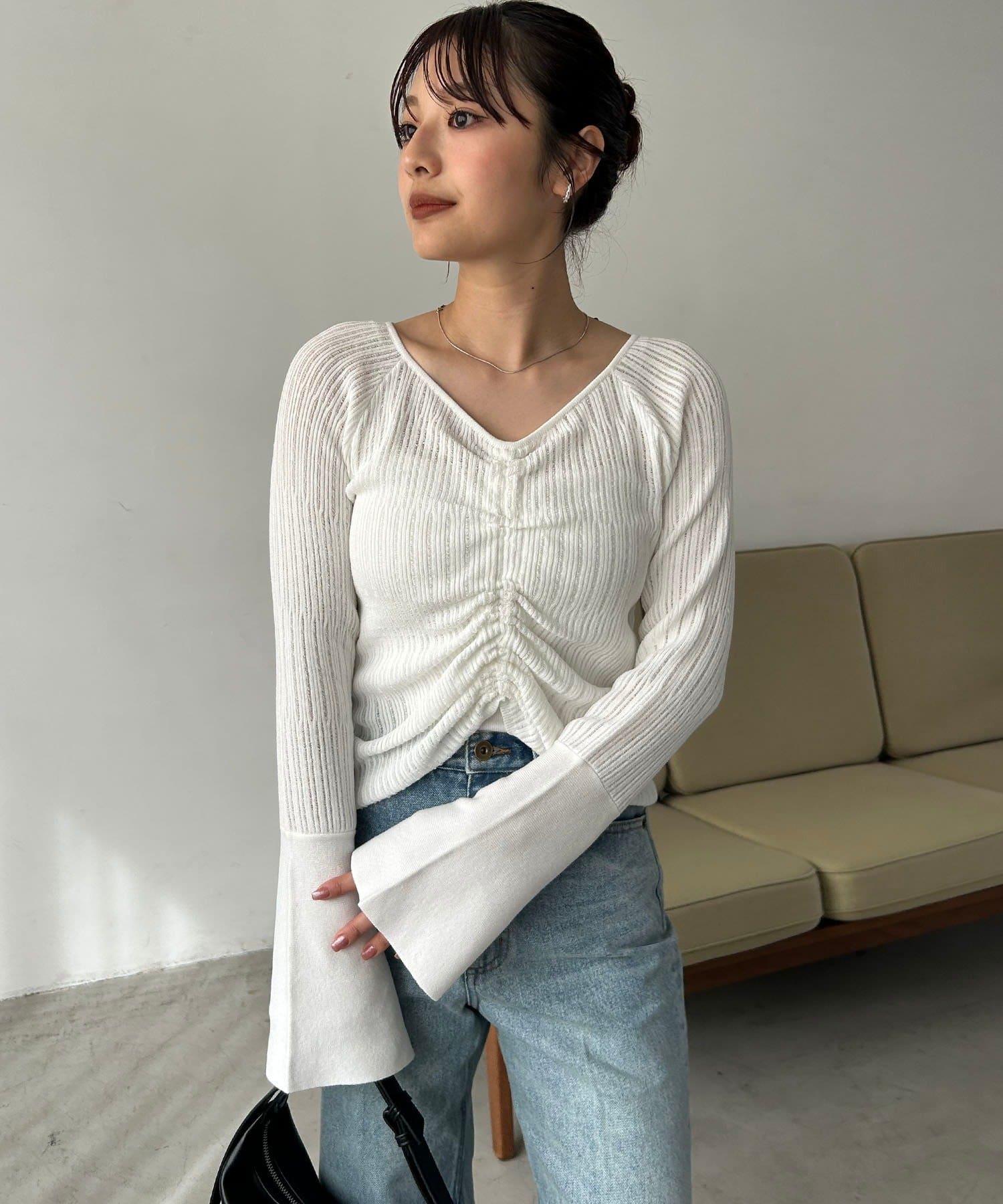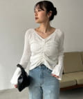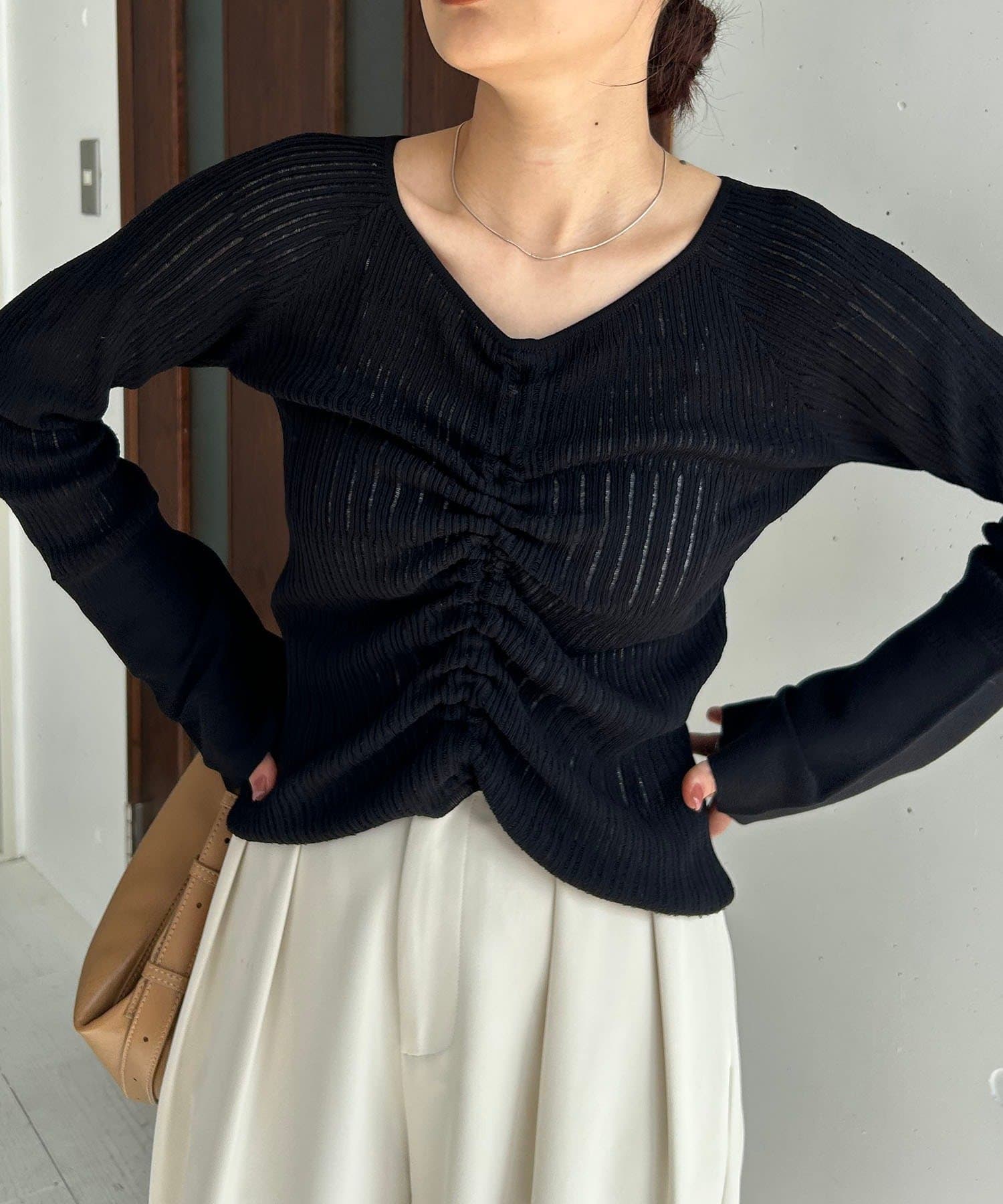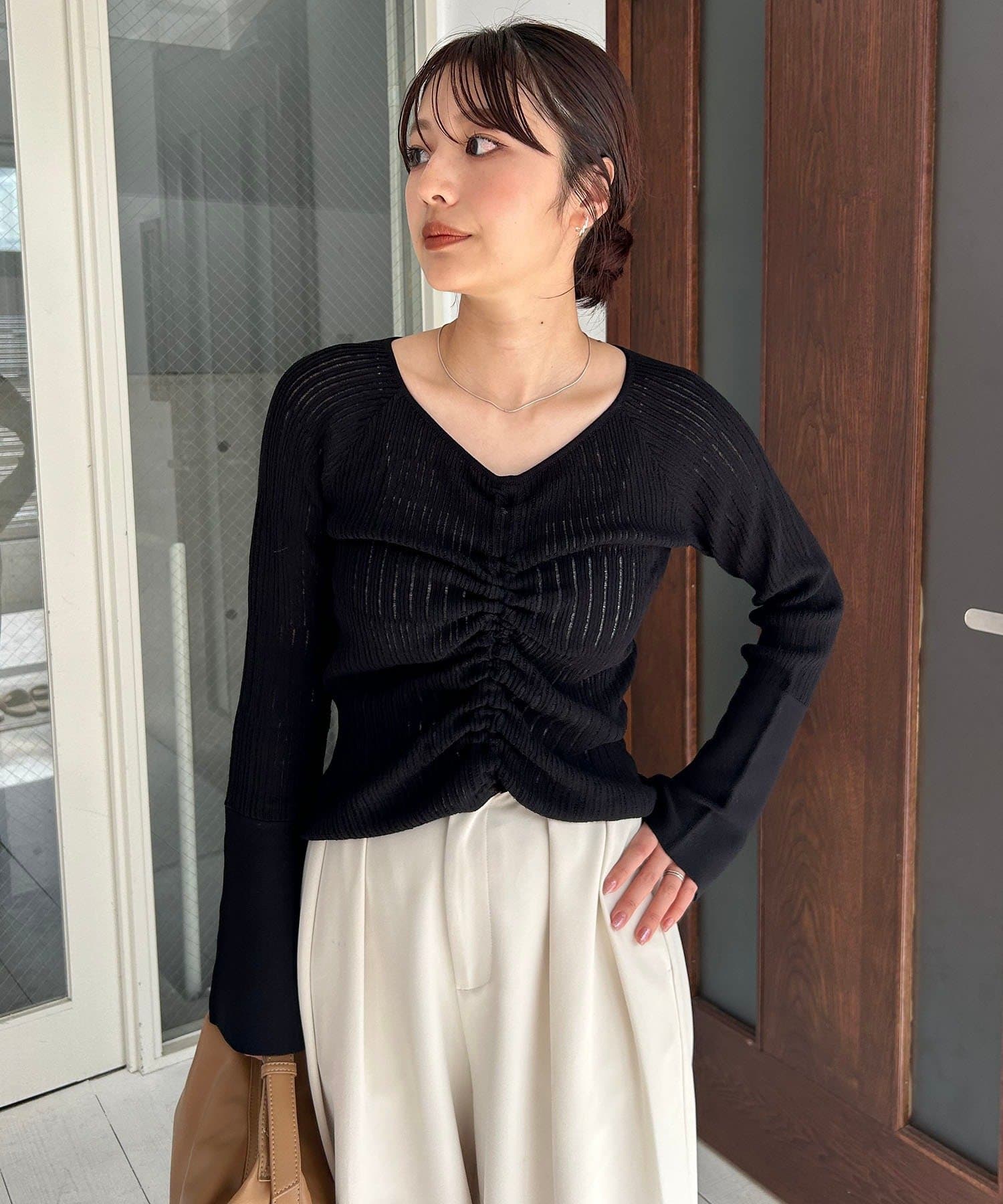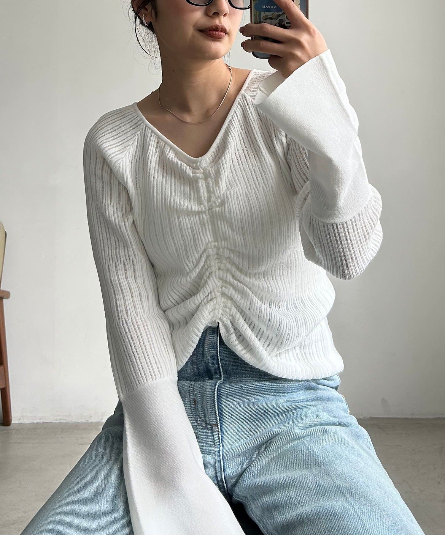 ・浅めのVネックでデコルテラインをきれいにみせてくれる