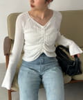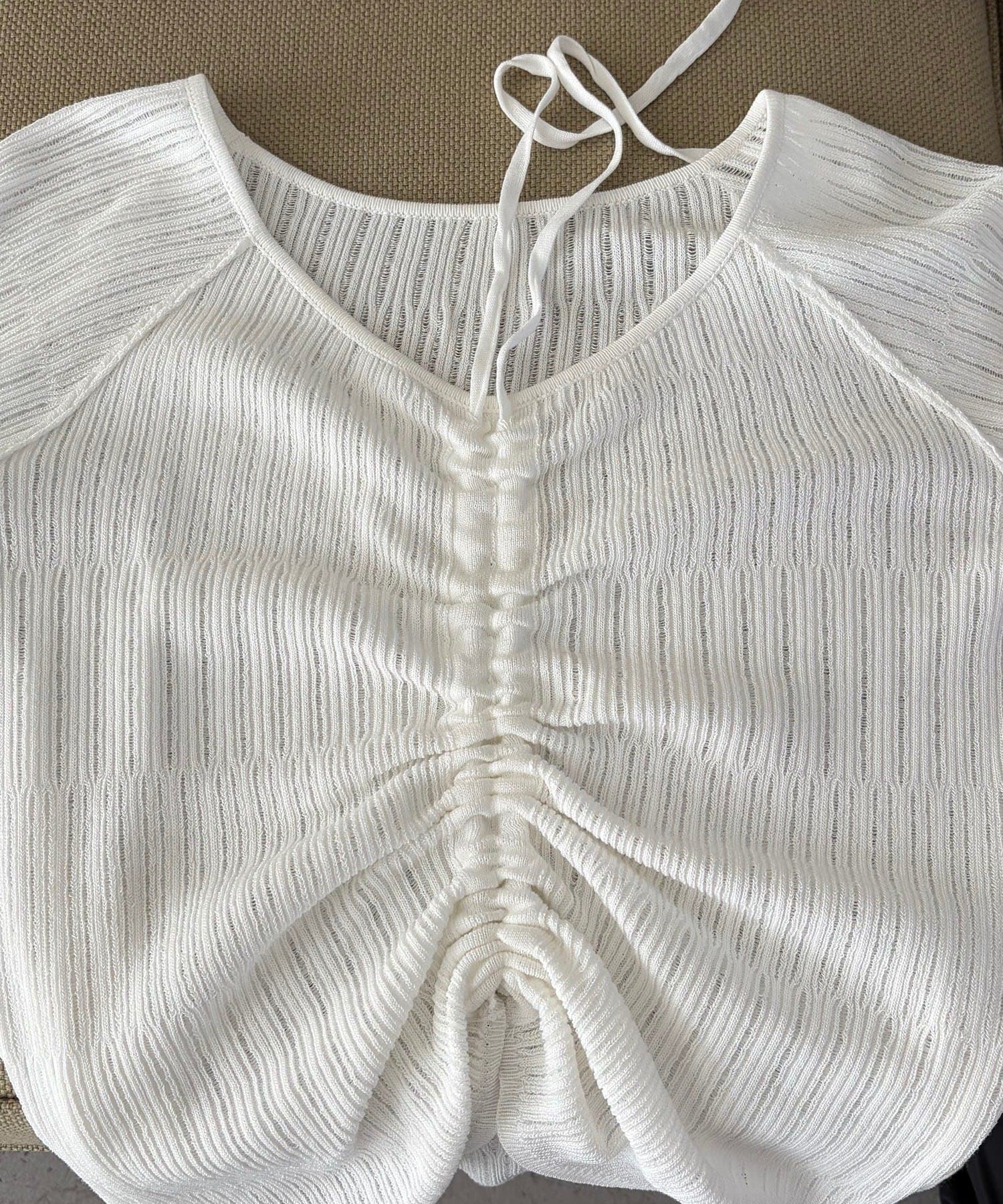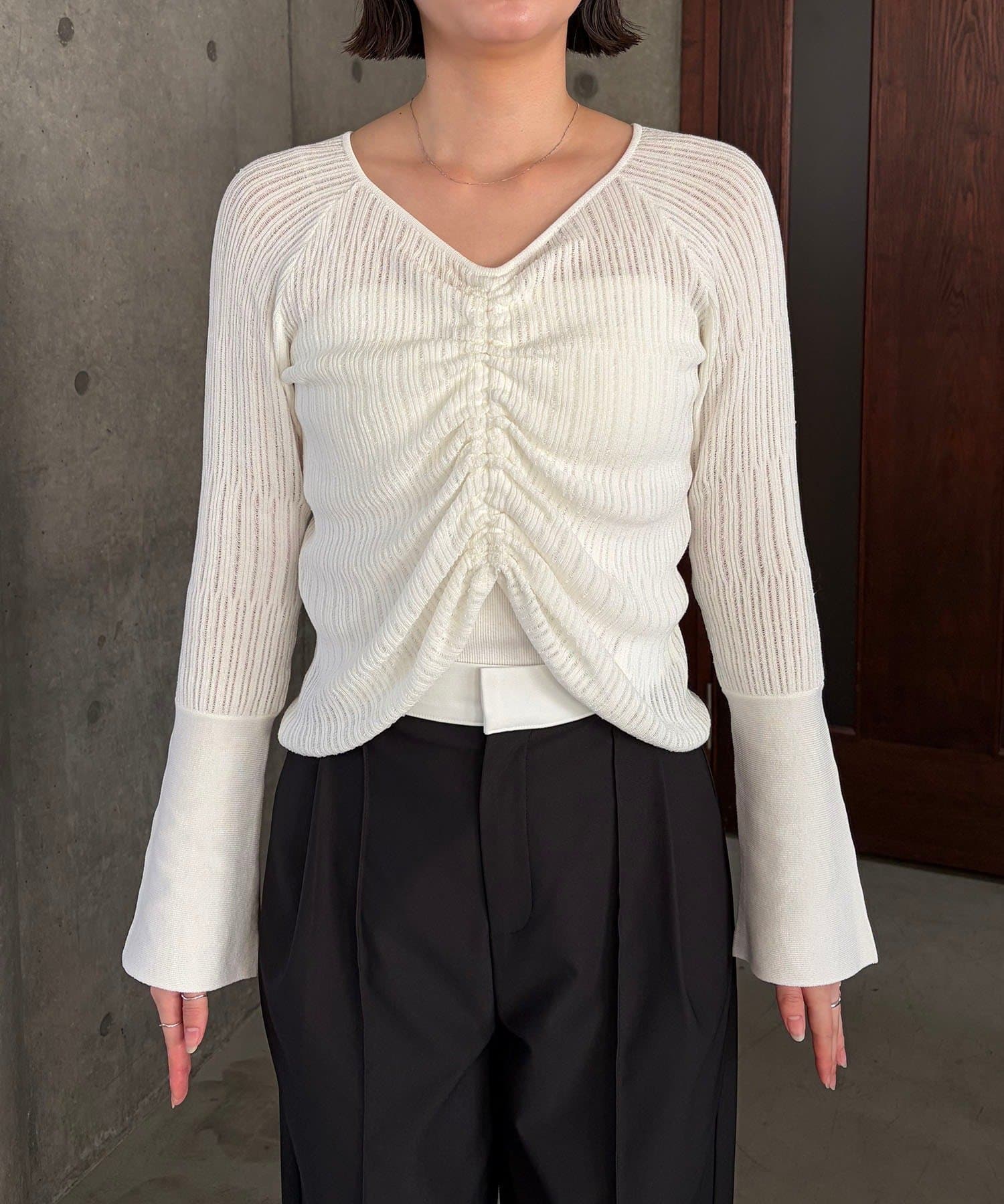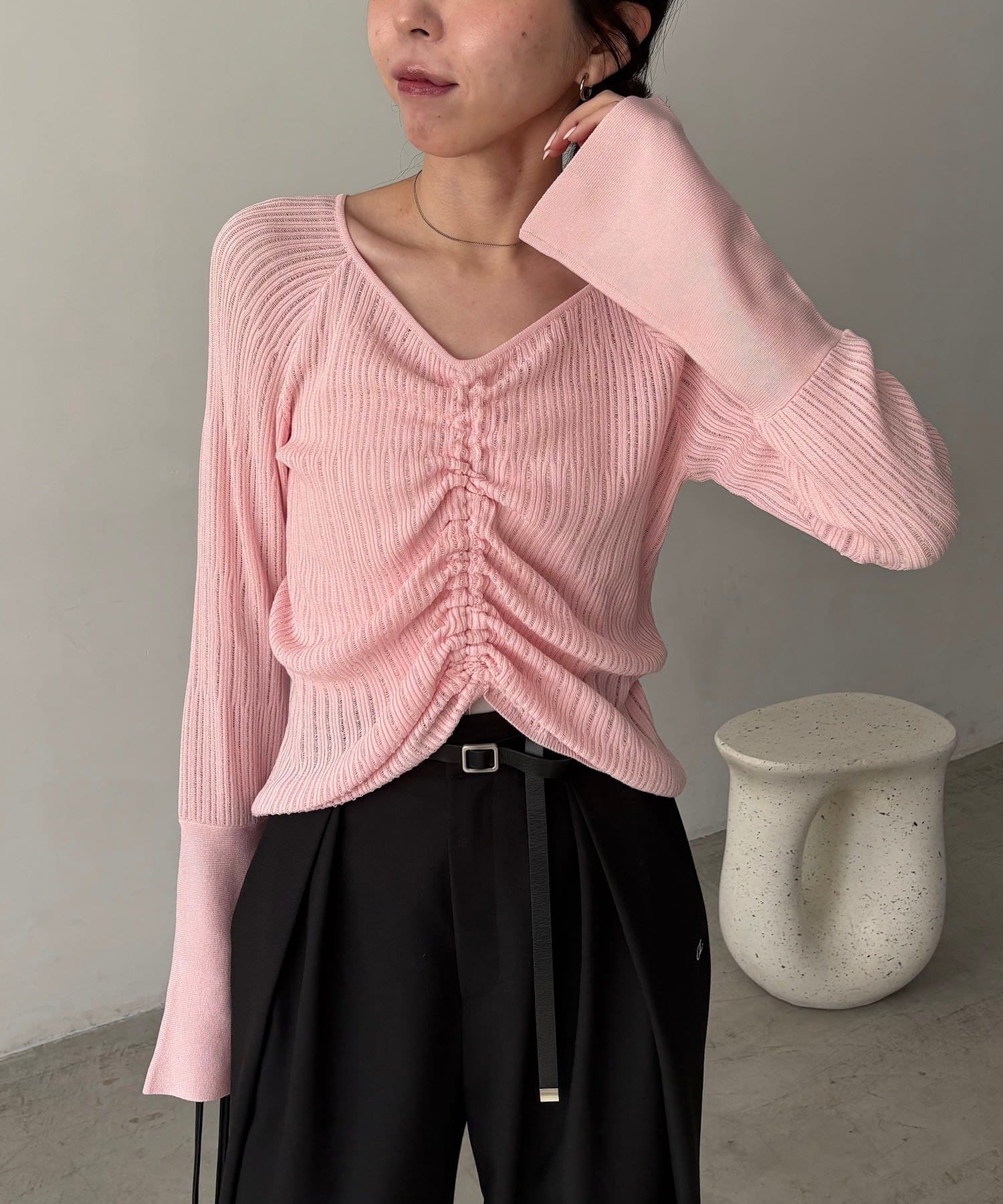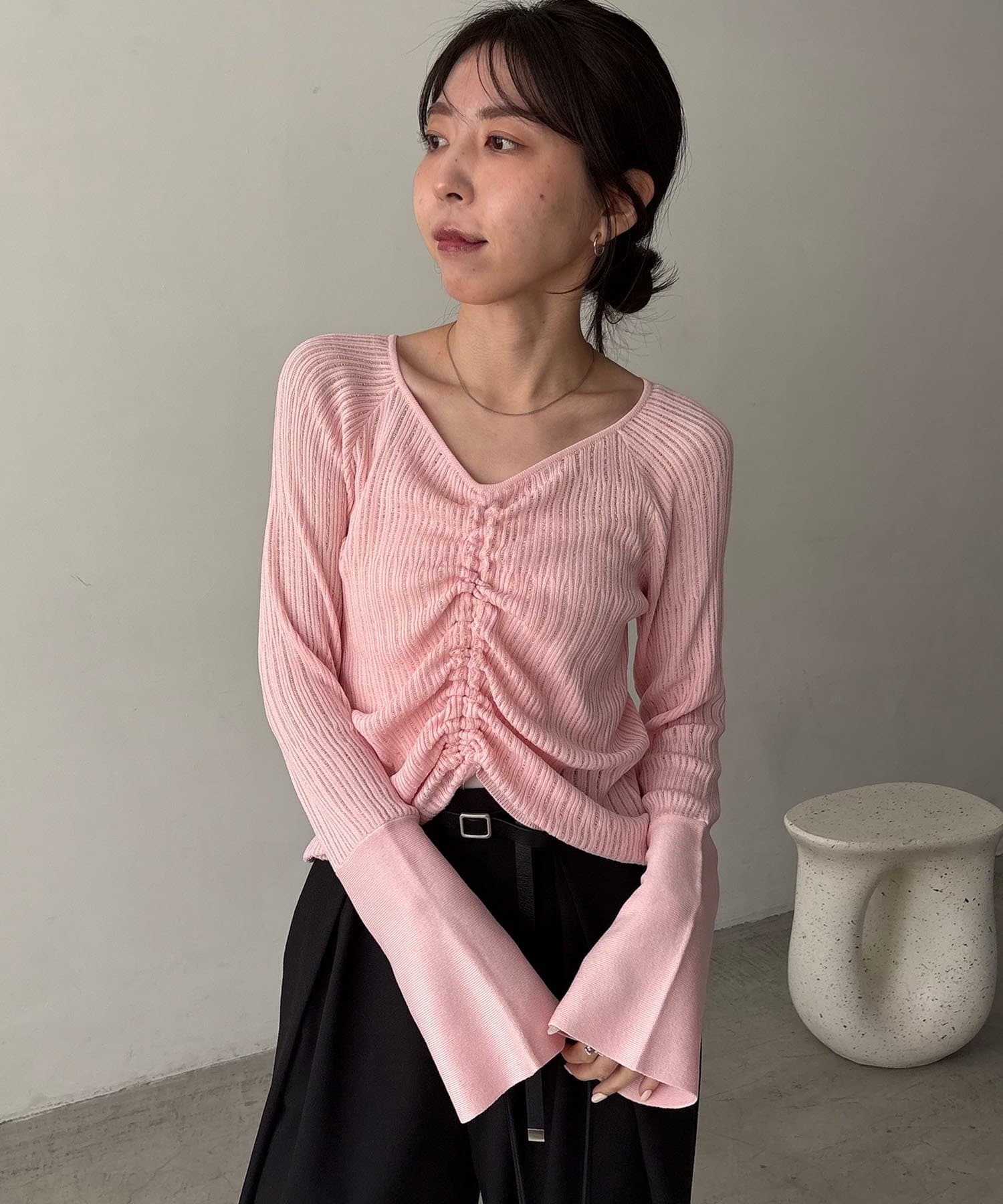 ・浅めのVネックでデコルテラインをきれいにみせてくれる