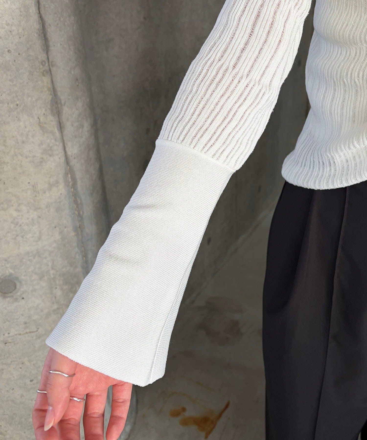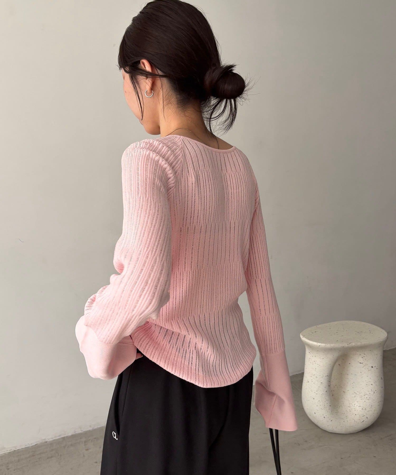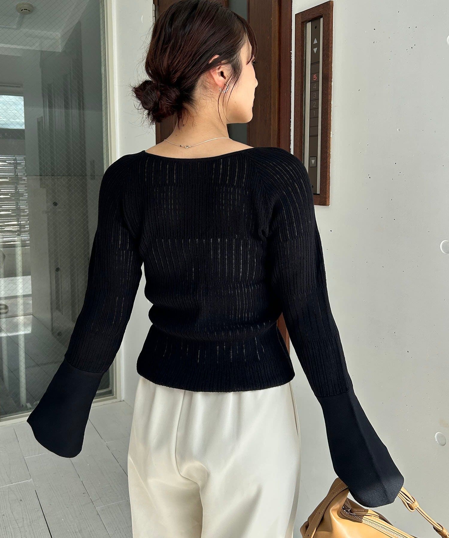 ・編み地を切り替えたフレアスリーブが手元を華やかな印象に