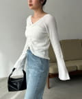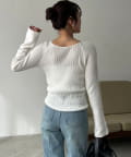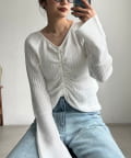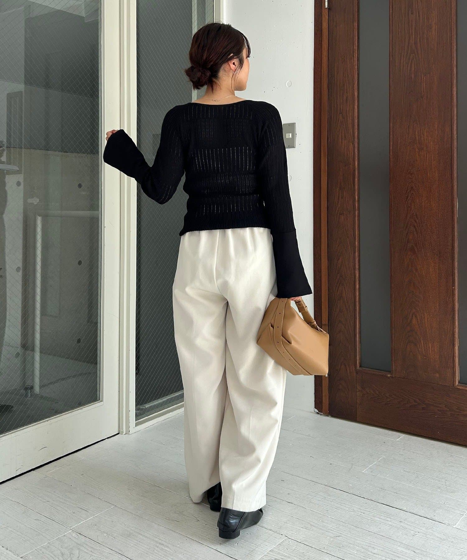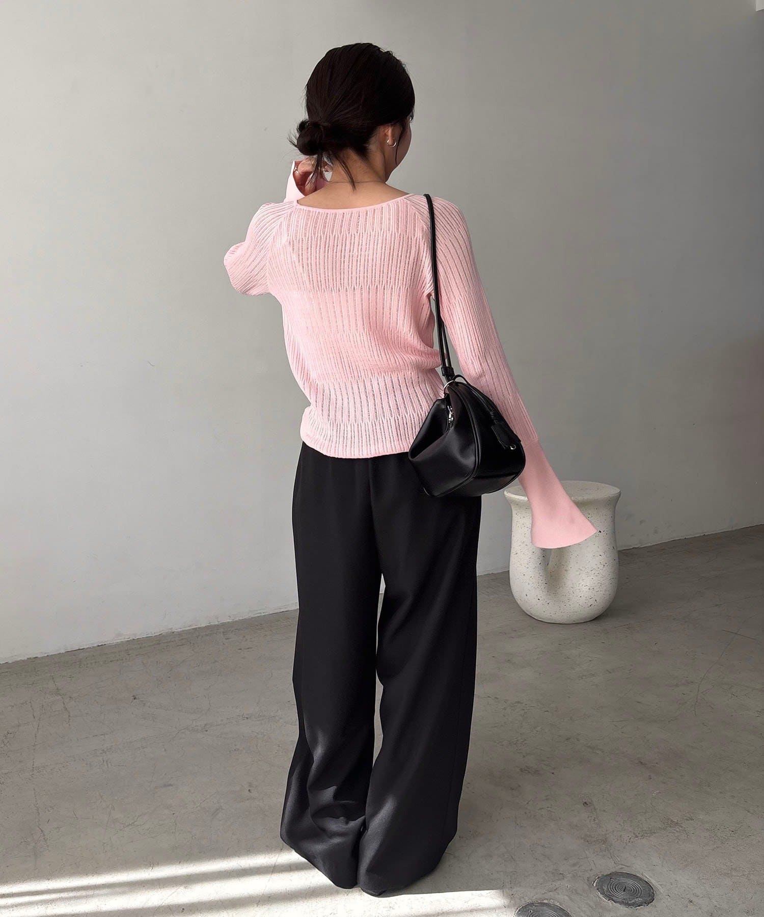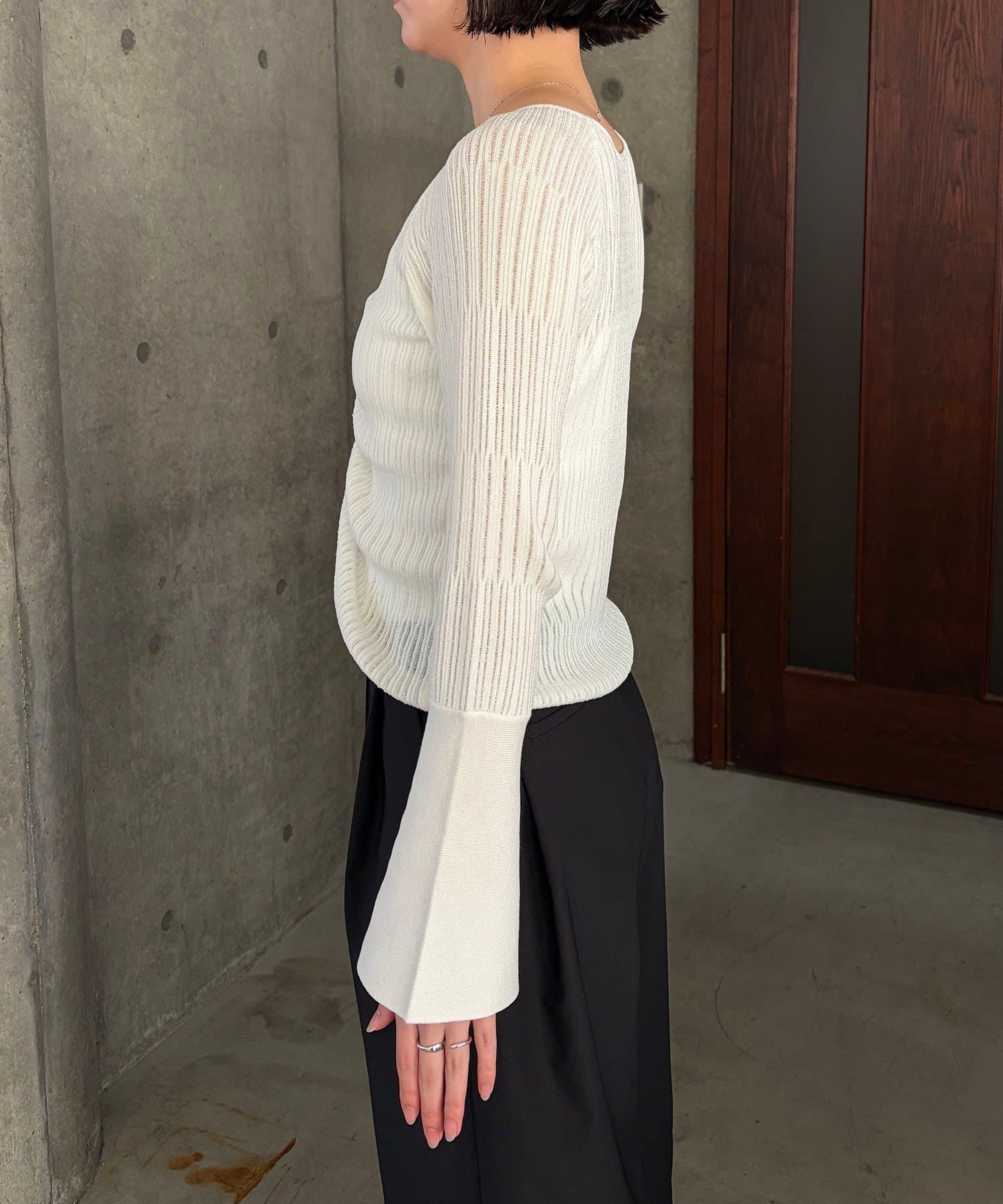 ・編み地を切り替えたフレアスリーブが手元を華やかな印象に
