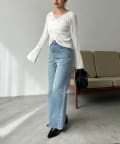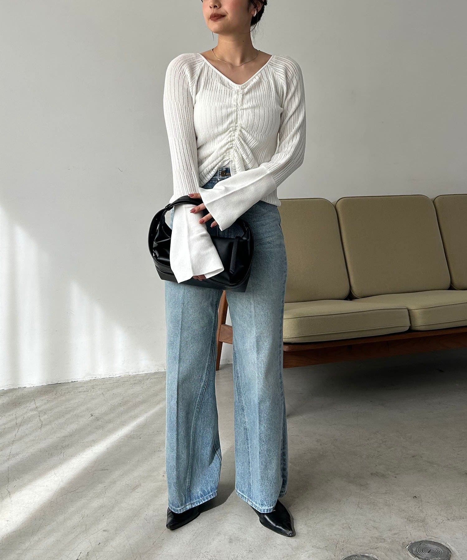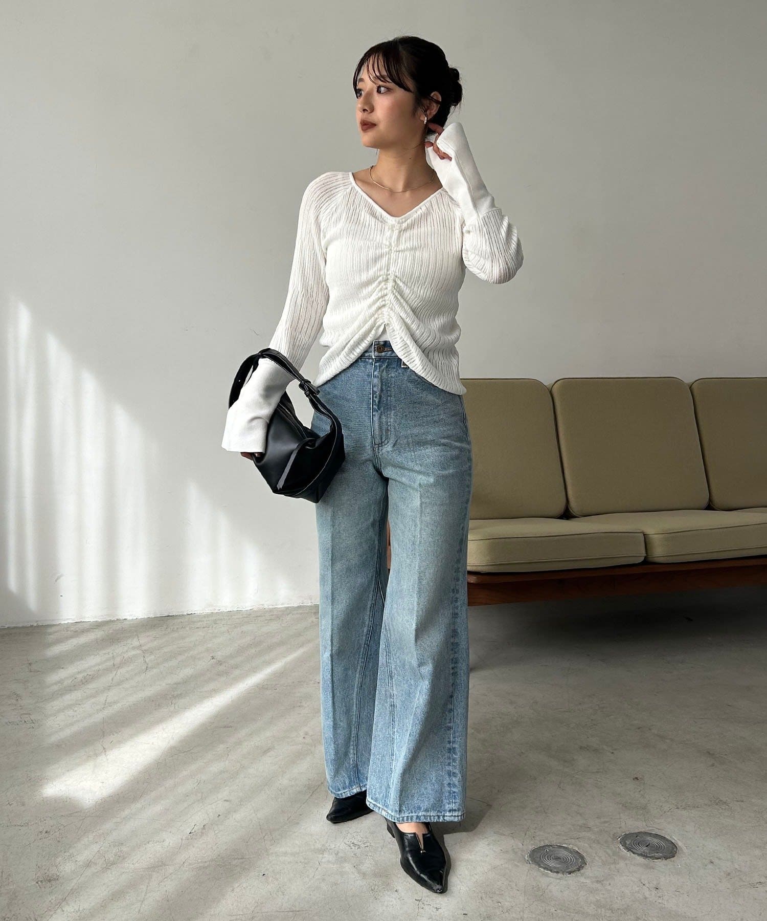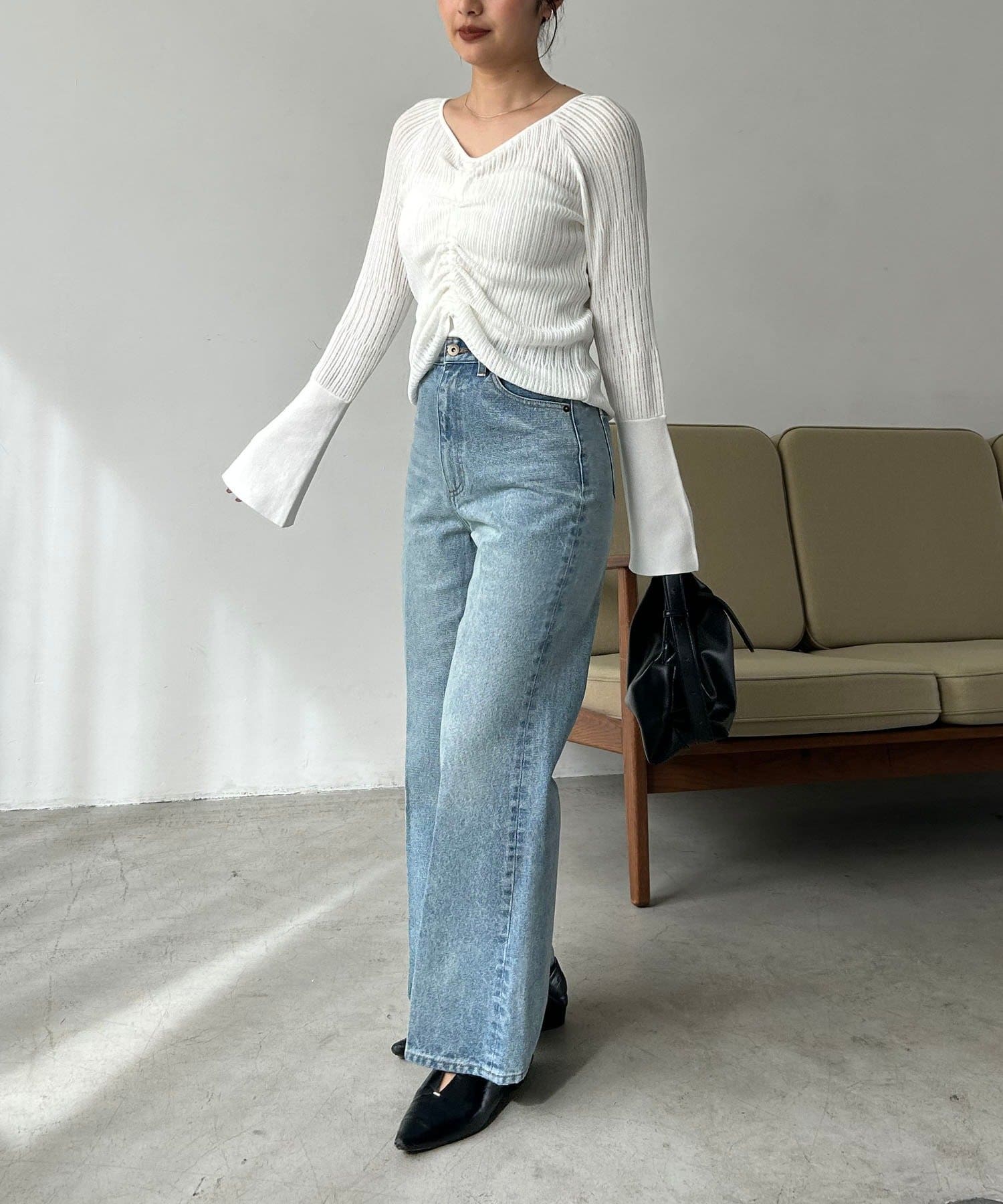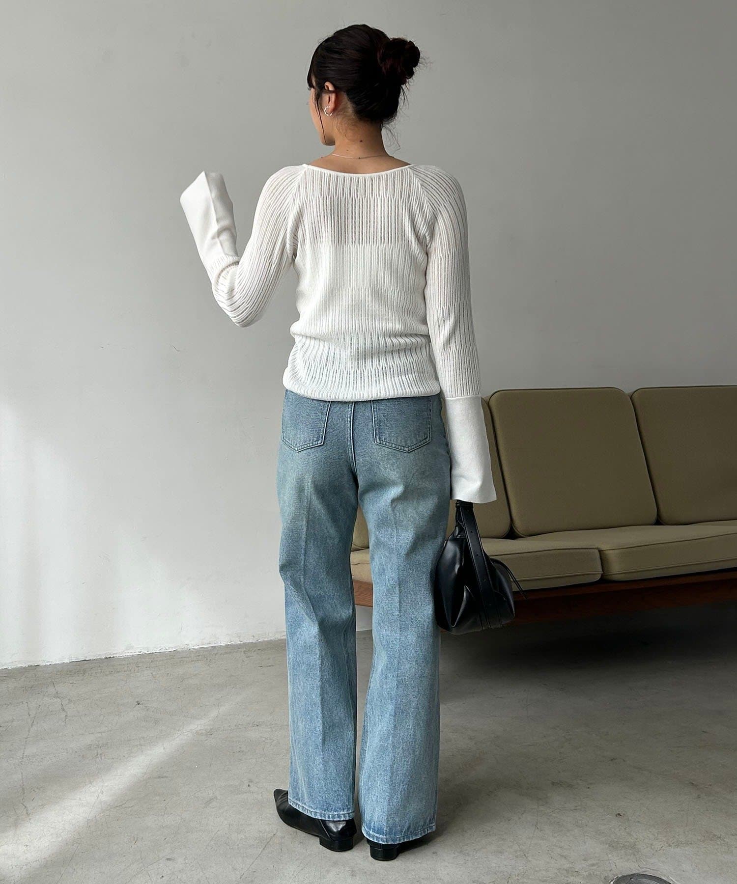 【オフホワイト着用アイテム】【低身長サイズあり】セミフレアデニム