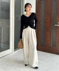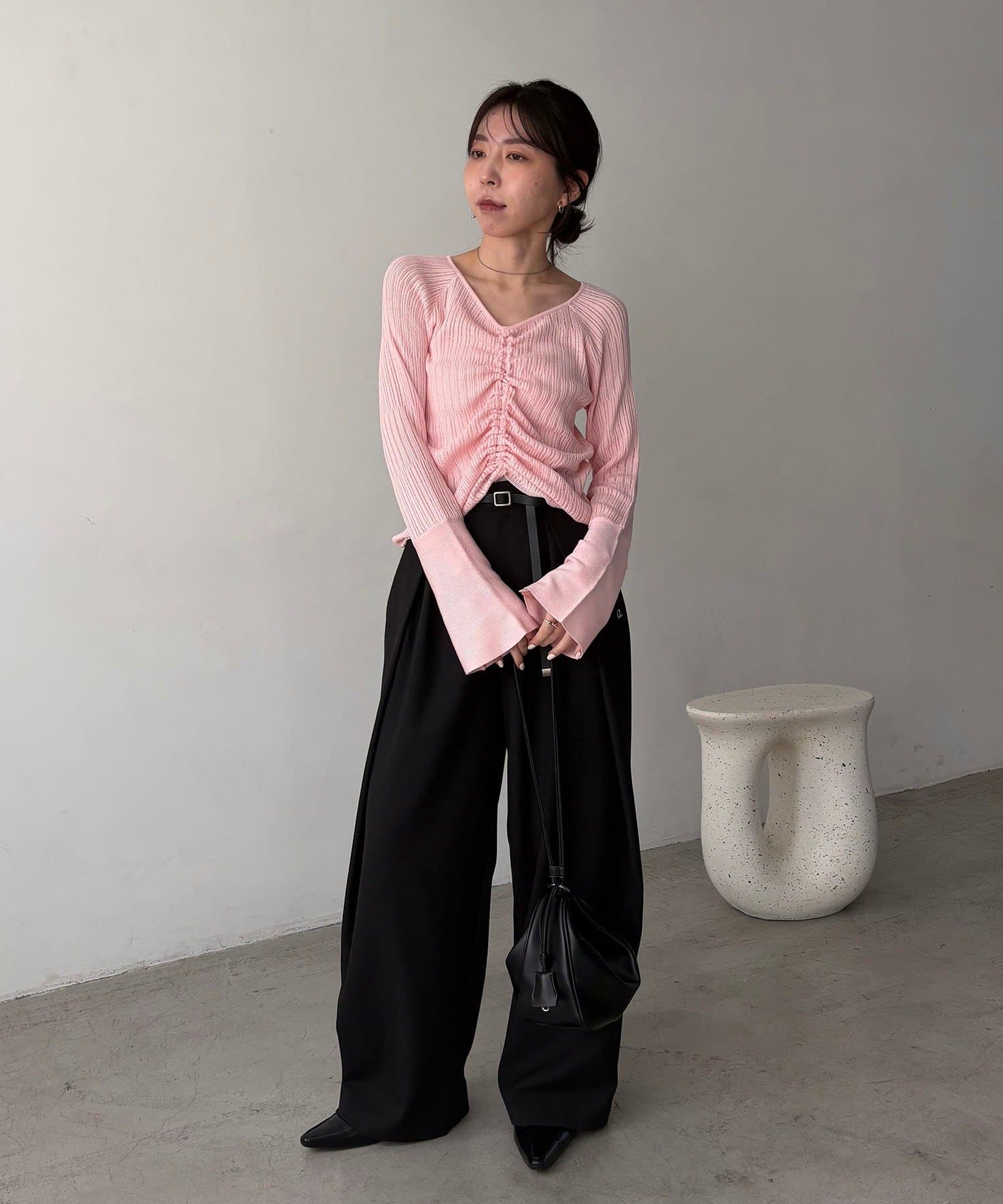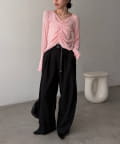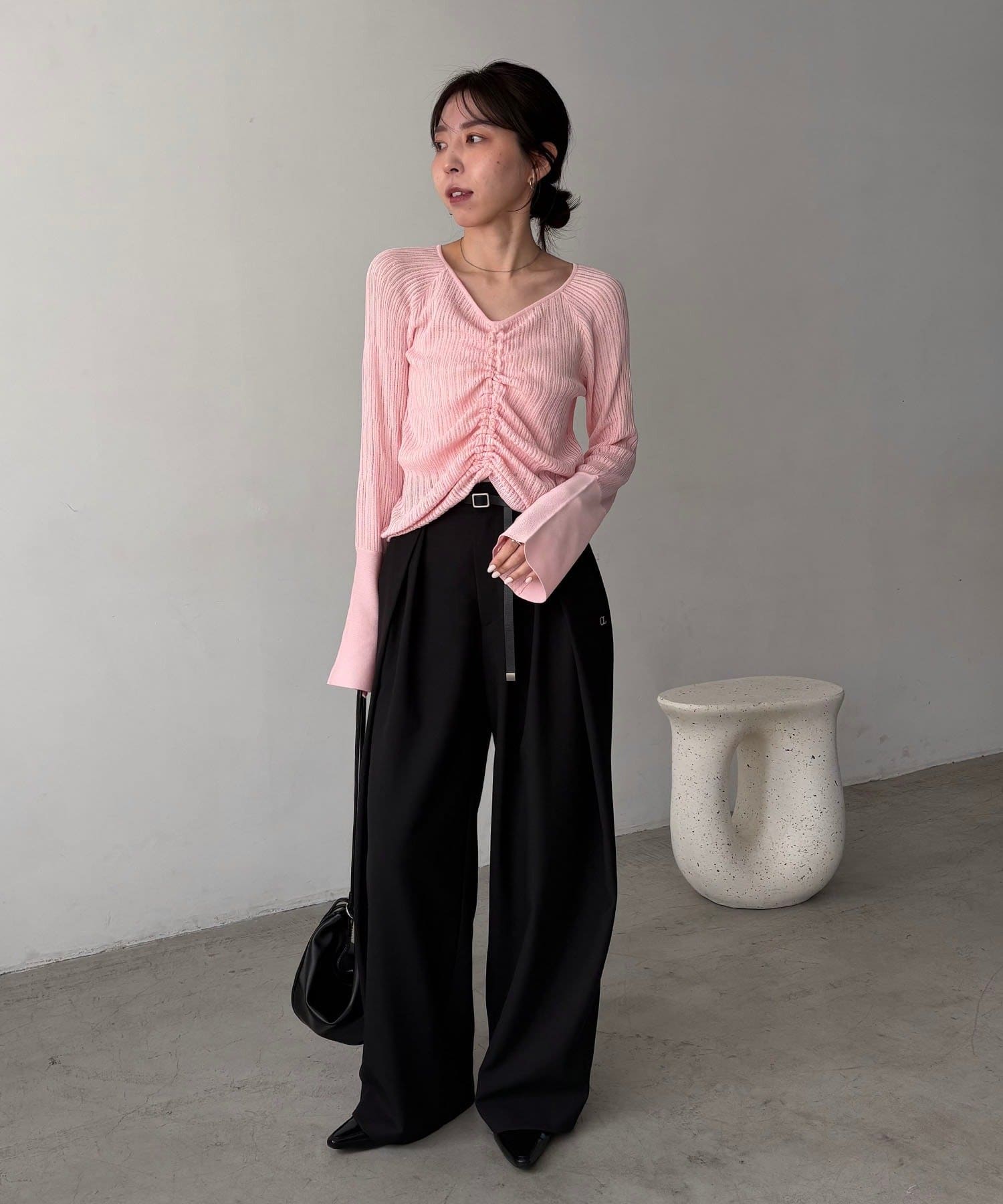 【ピンク着用アイテム】〈C.L〉レザーベルト付変形タックパンツ