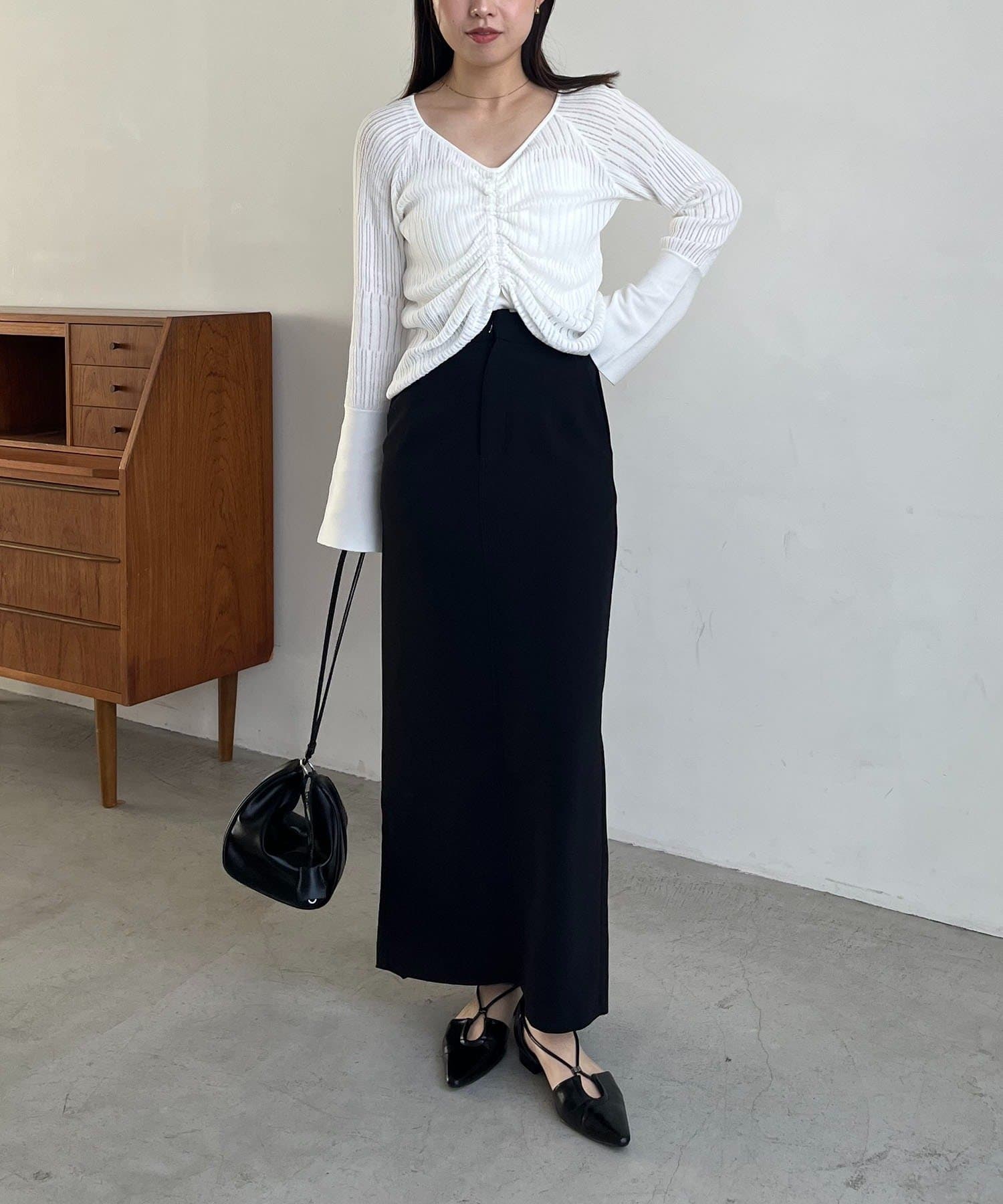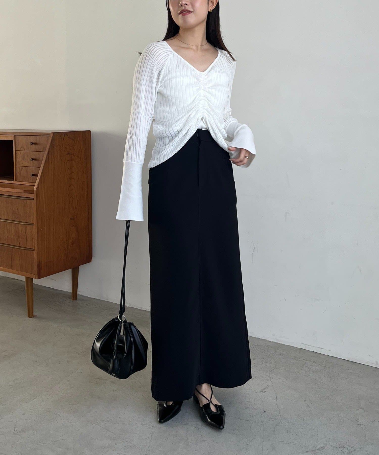 【オフホワイト着用アイテム③】マキシIラインスカート