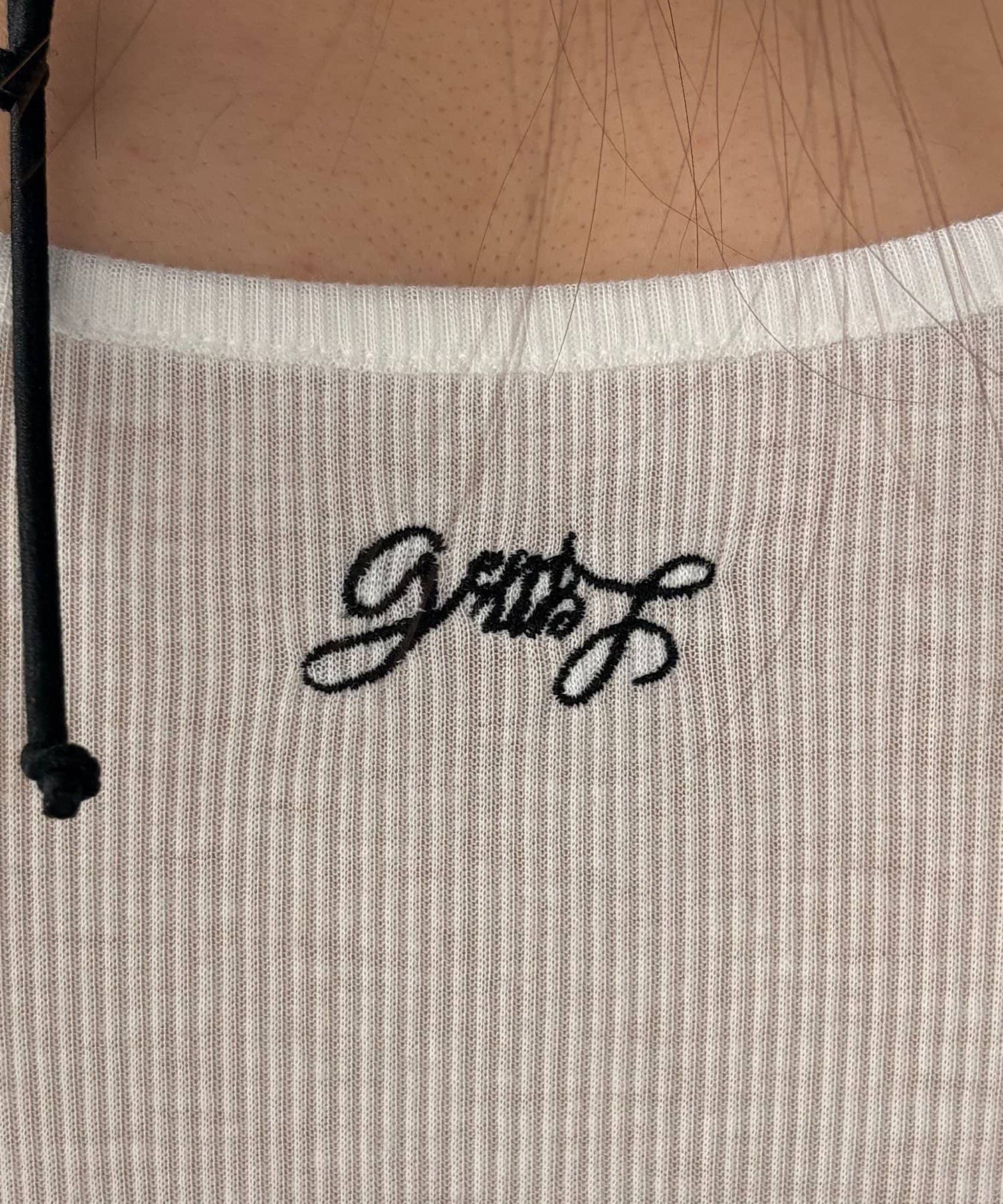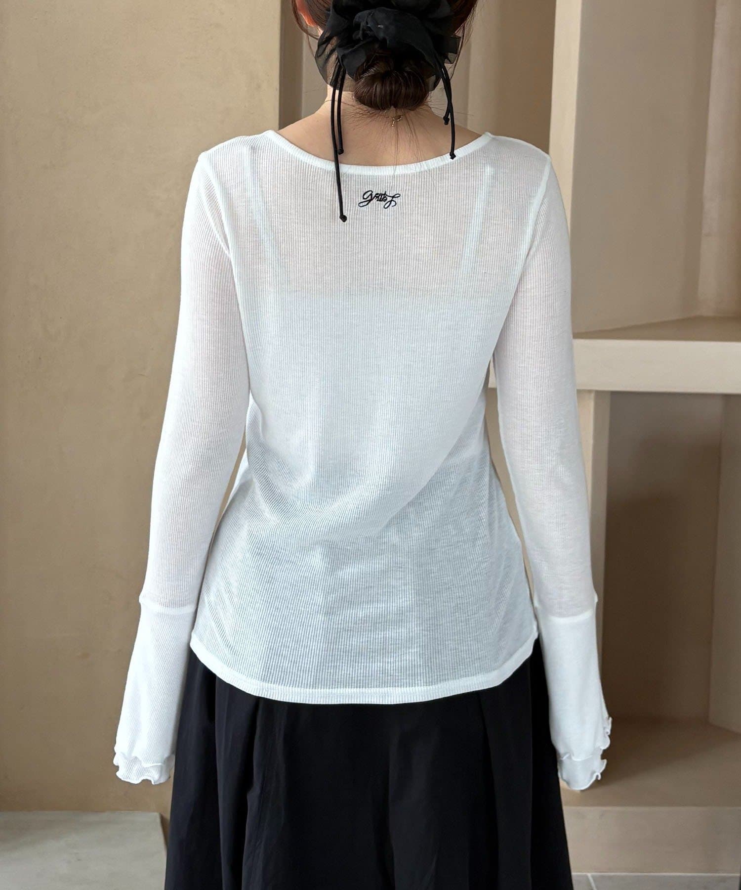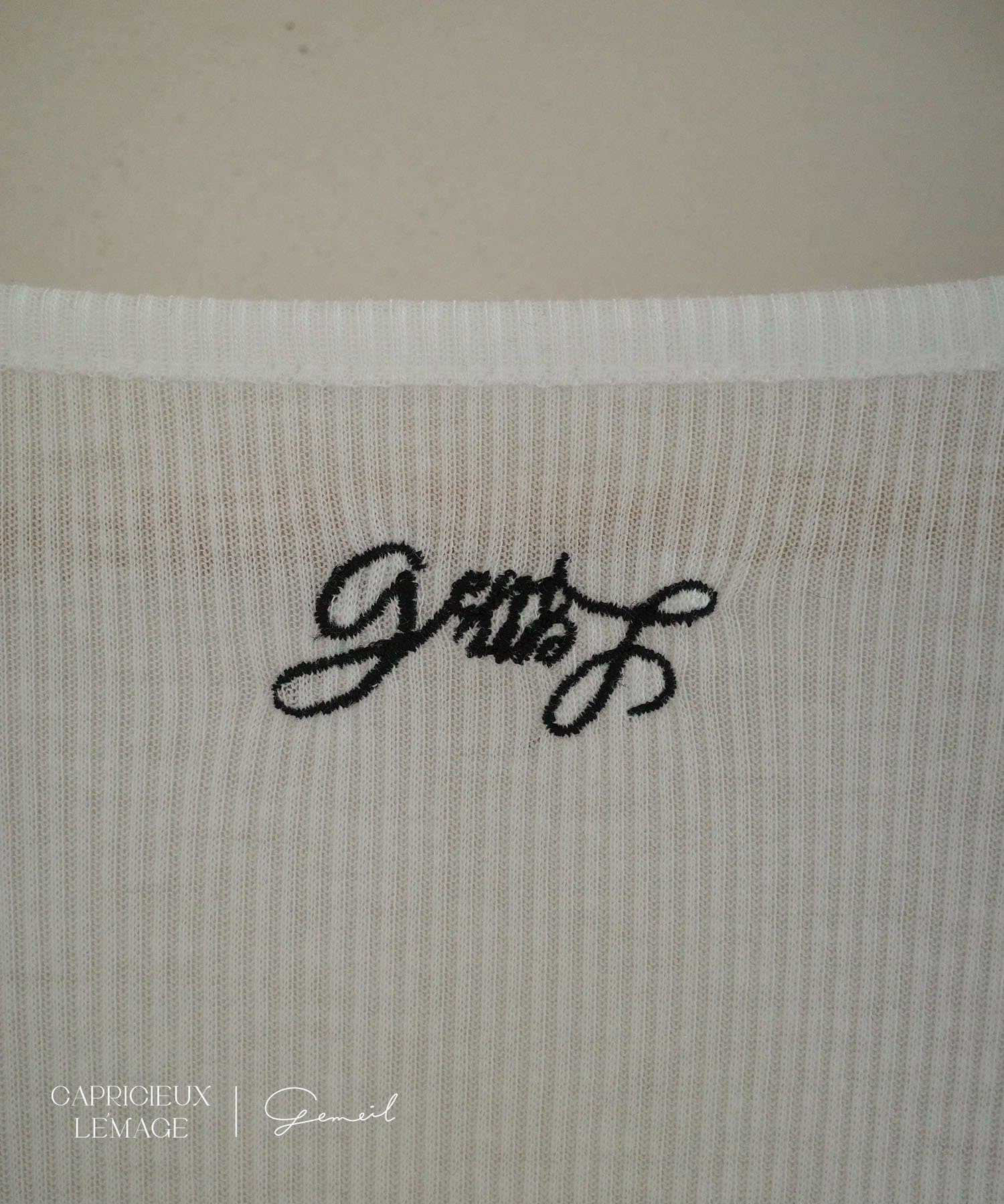 程よく透け感があり、首元後ろのコラボロゴがワンポイントに。