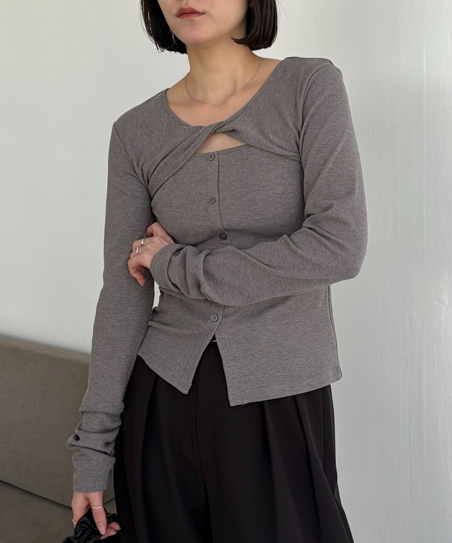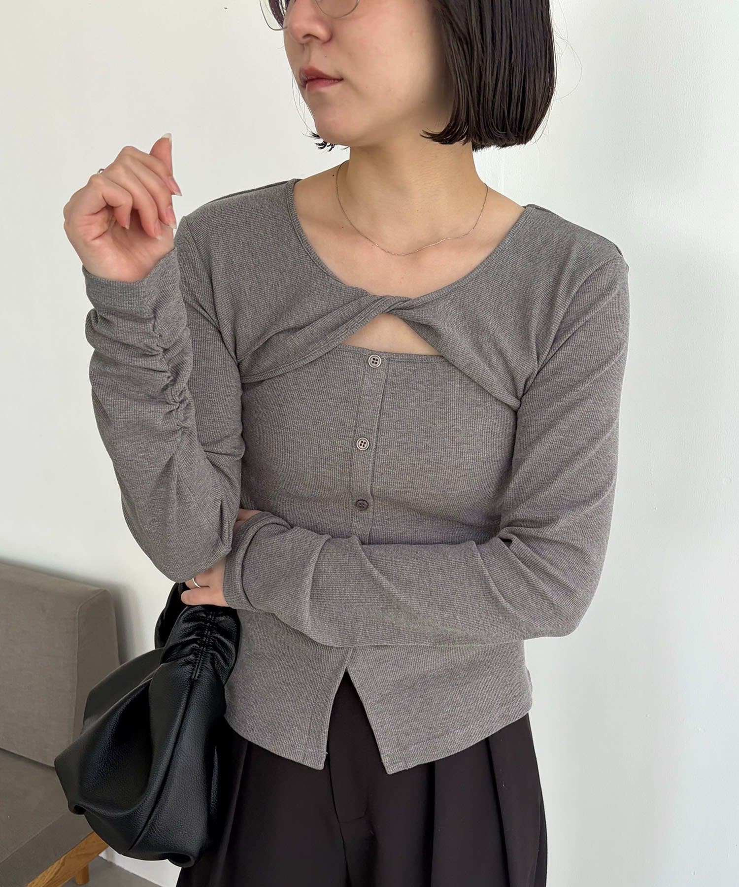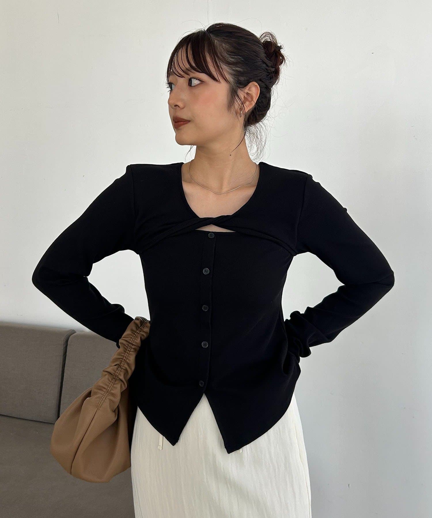 ・デコルテのツイストデザインがこなれ感のある1枚