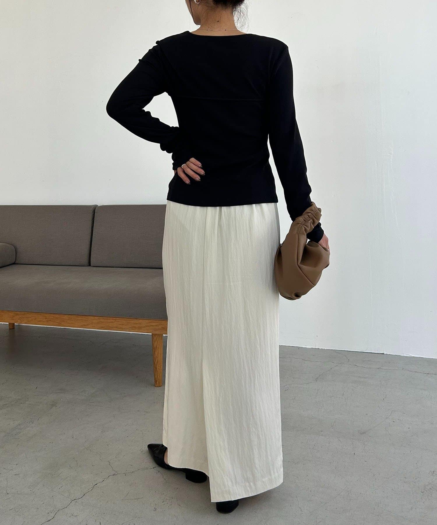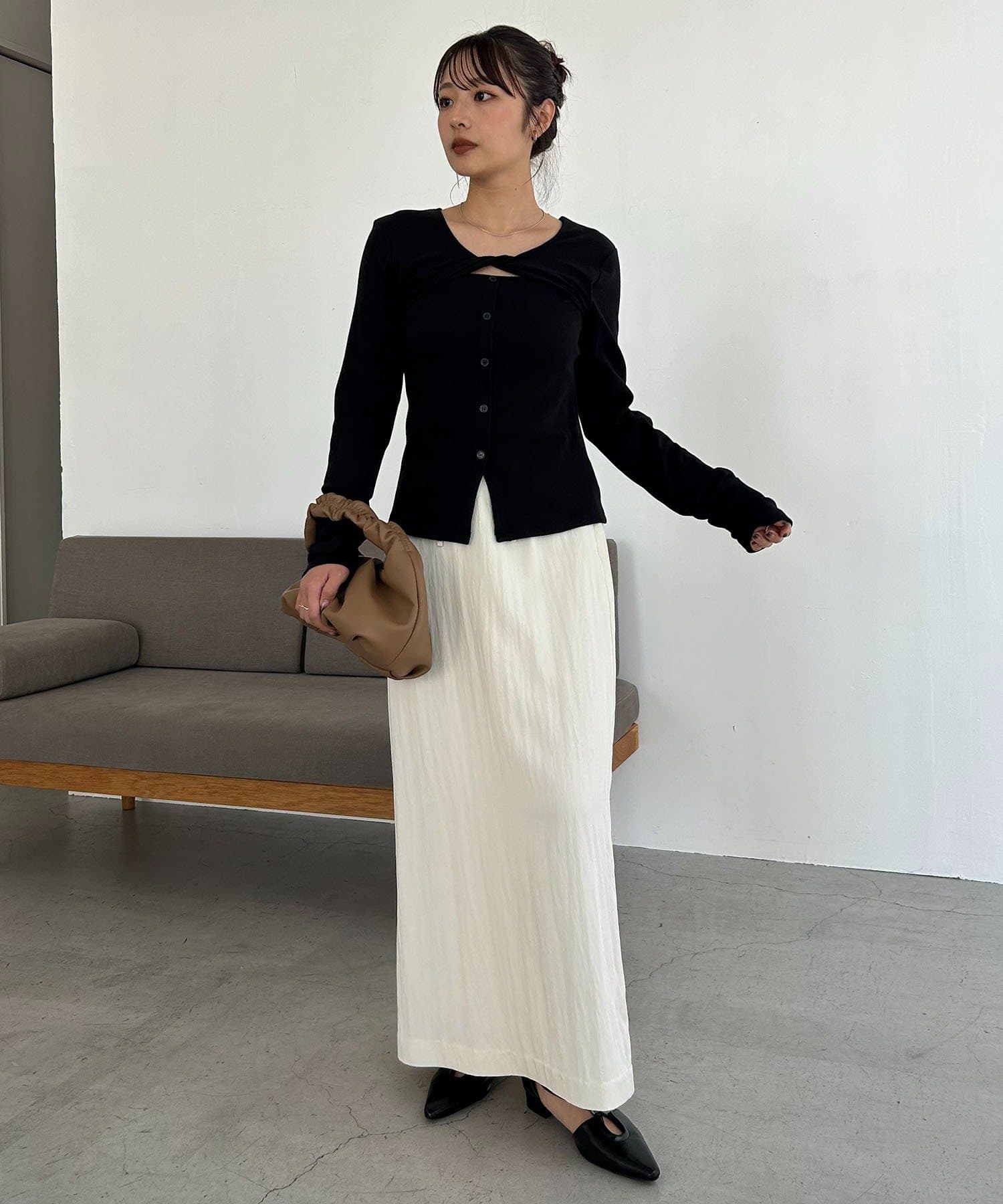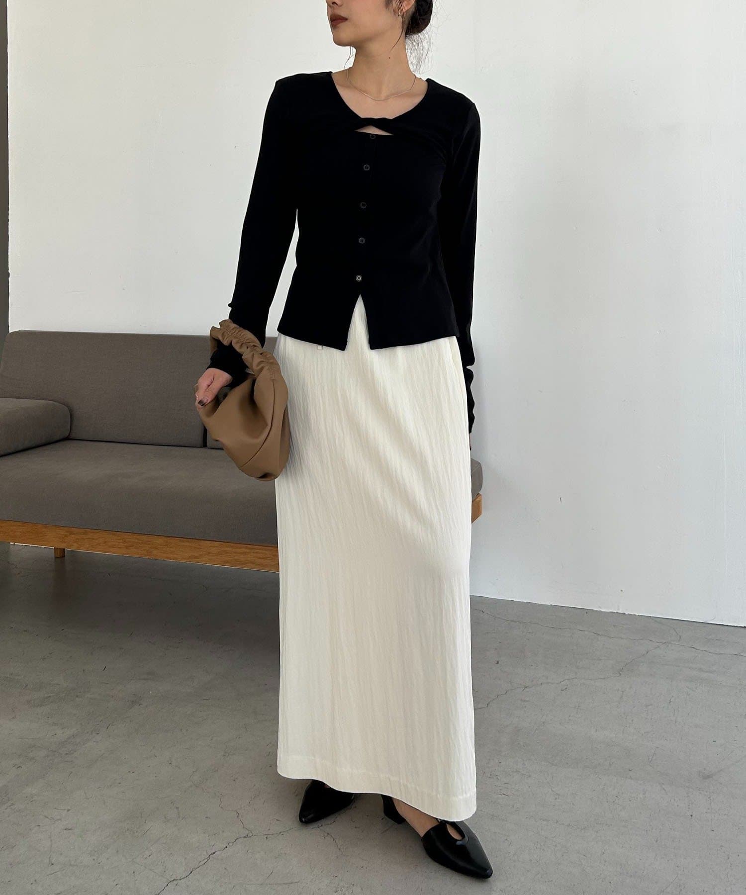 ・マキシスカートあわせで女性らしいコーデに