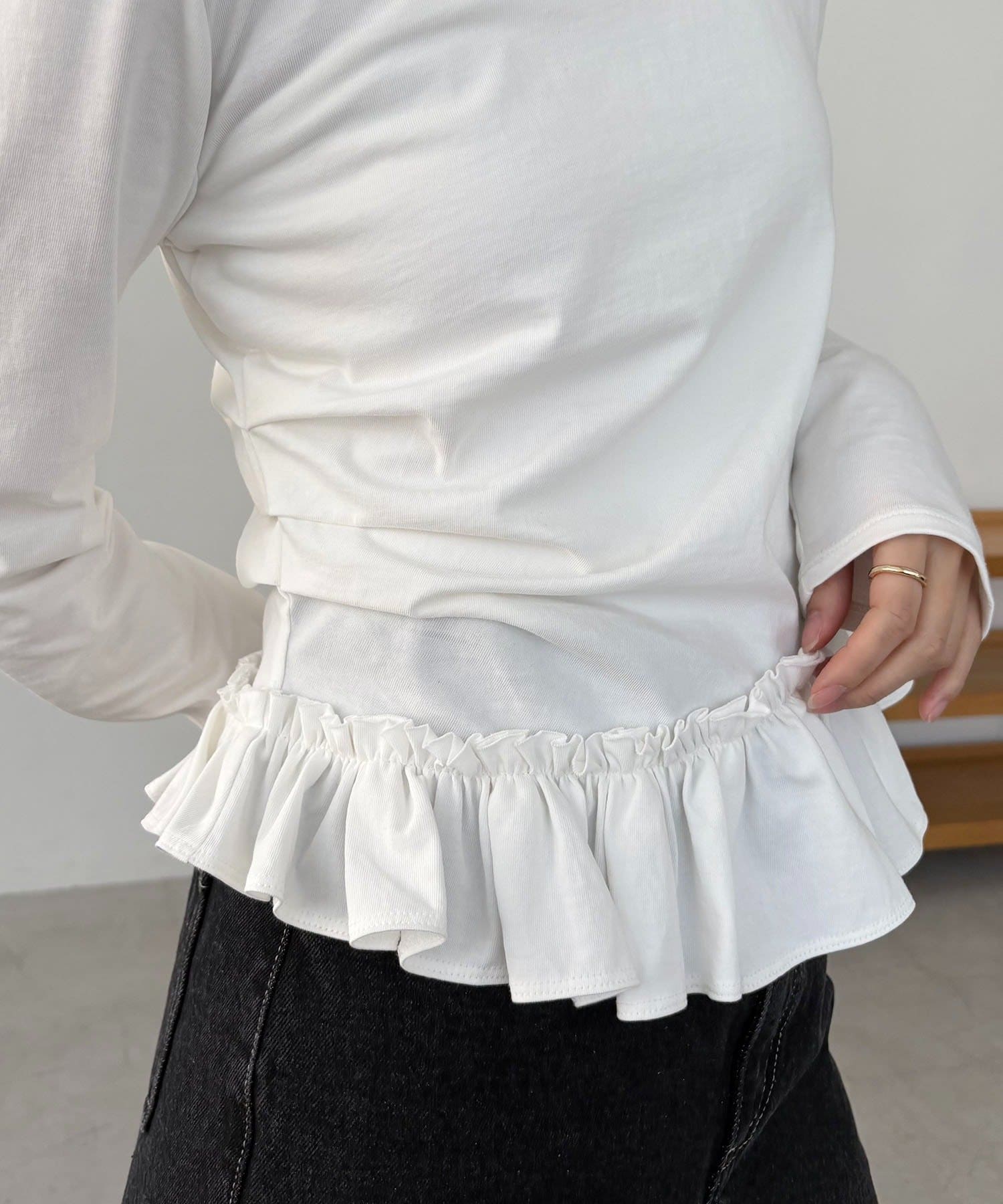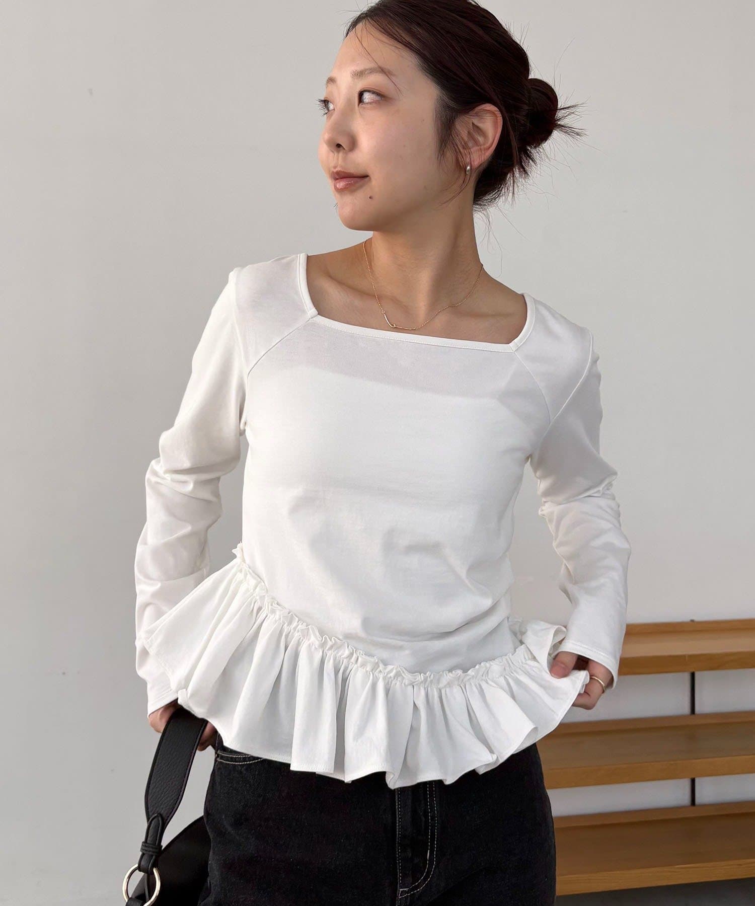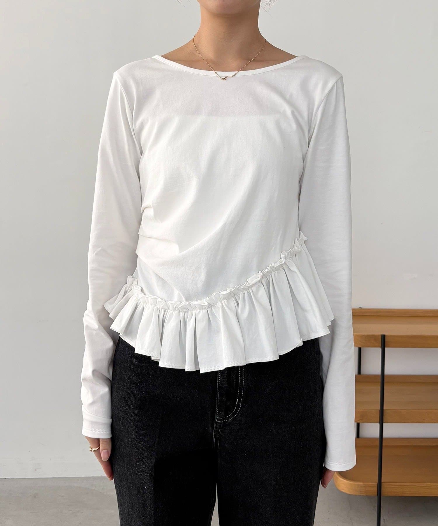 TOP > CAPRICIEUX LE'MAGE > レディース > トップス > Tシャツ/カットソー > アシメフリルロンT