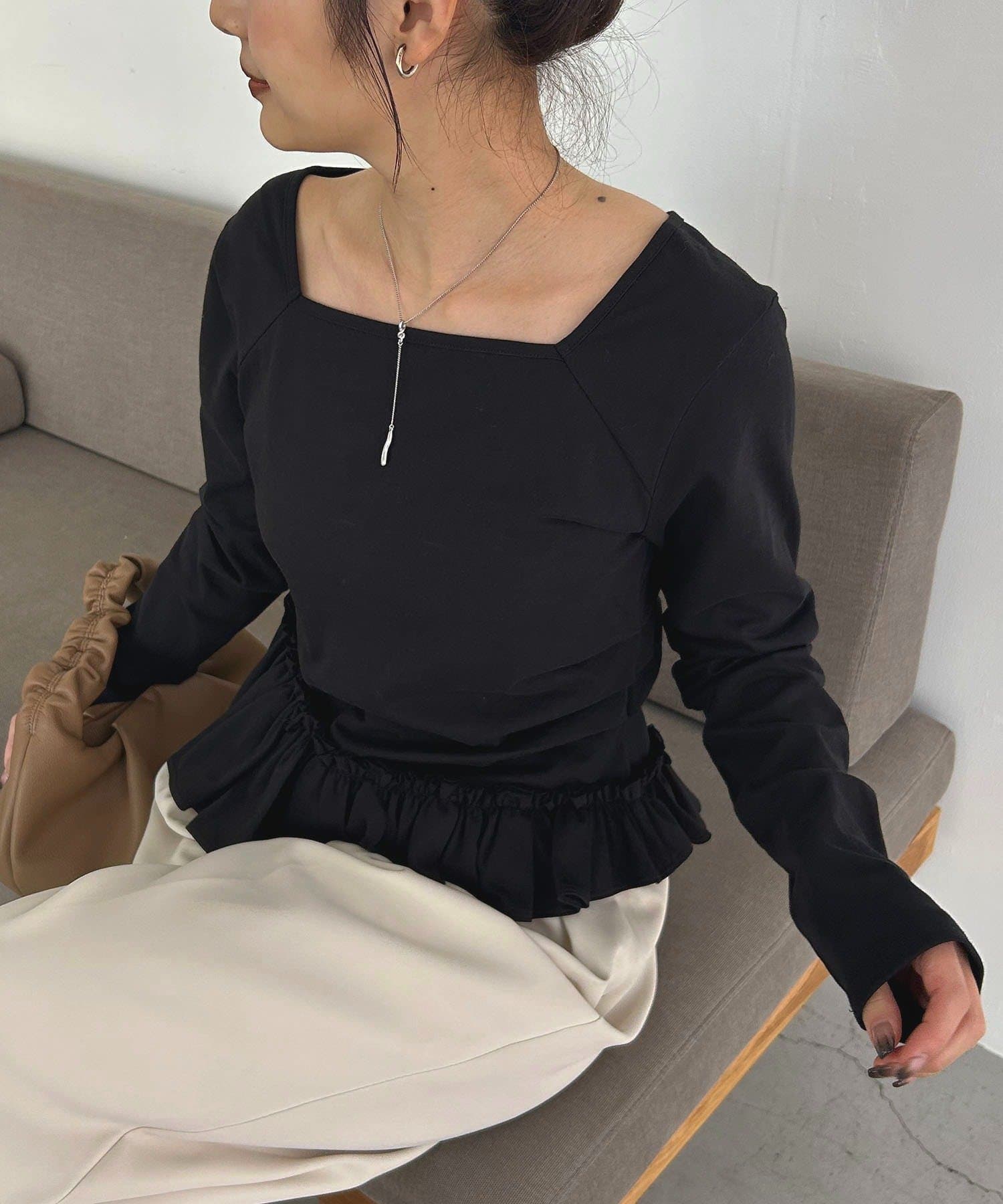 ・アシメデザインで甘さの中にモード感のある1枚に
