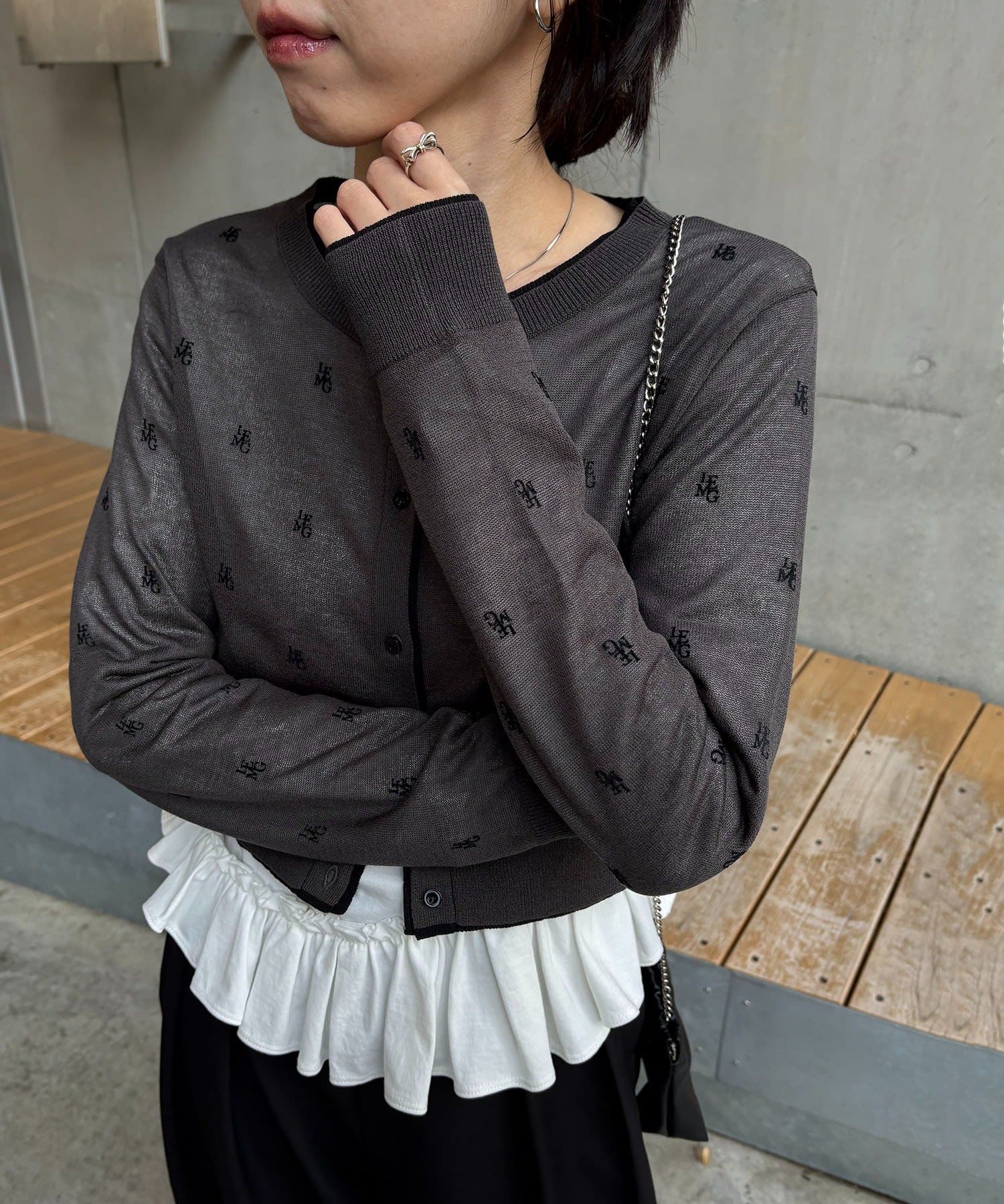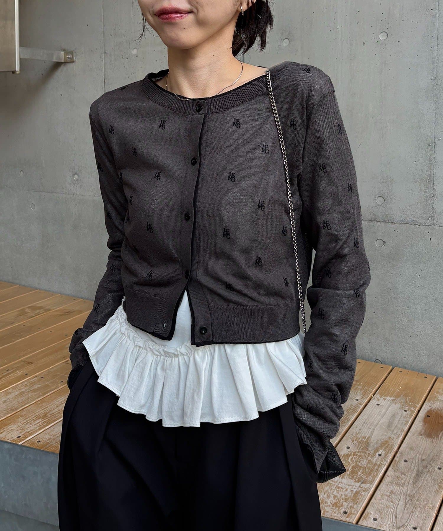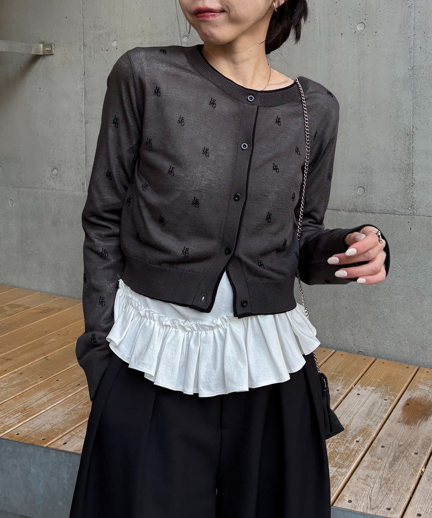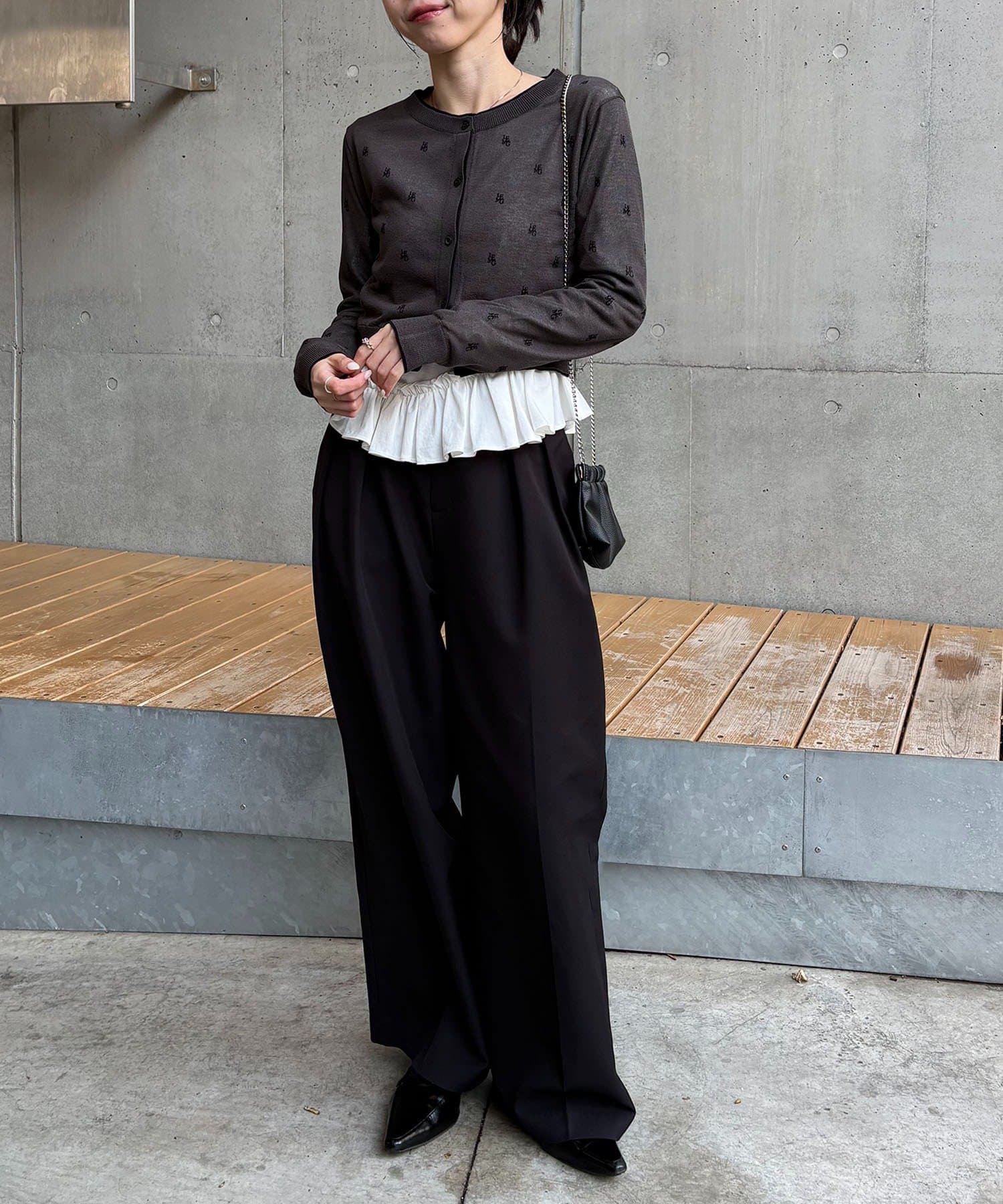 【ホワイト着用アイテム③】cardigan:モノグラムカーディガン pants:【累計2.5万本!】2タックワイドパンツ