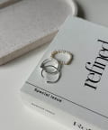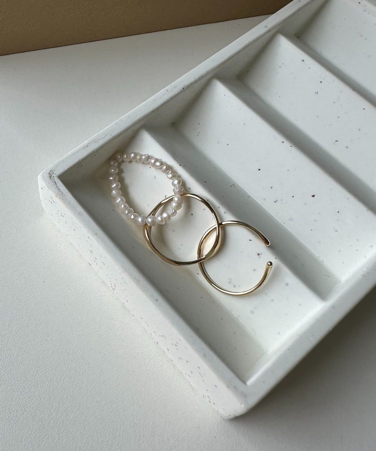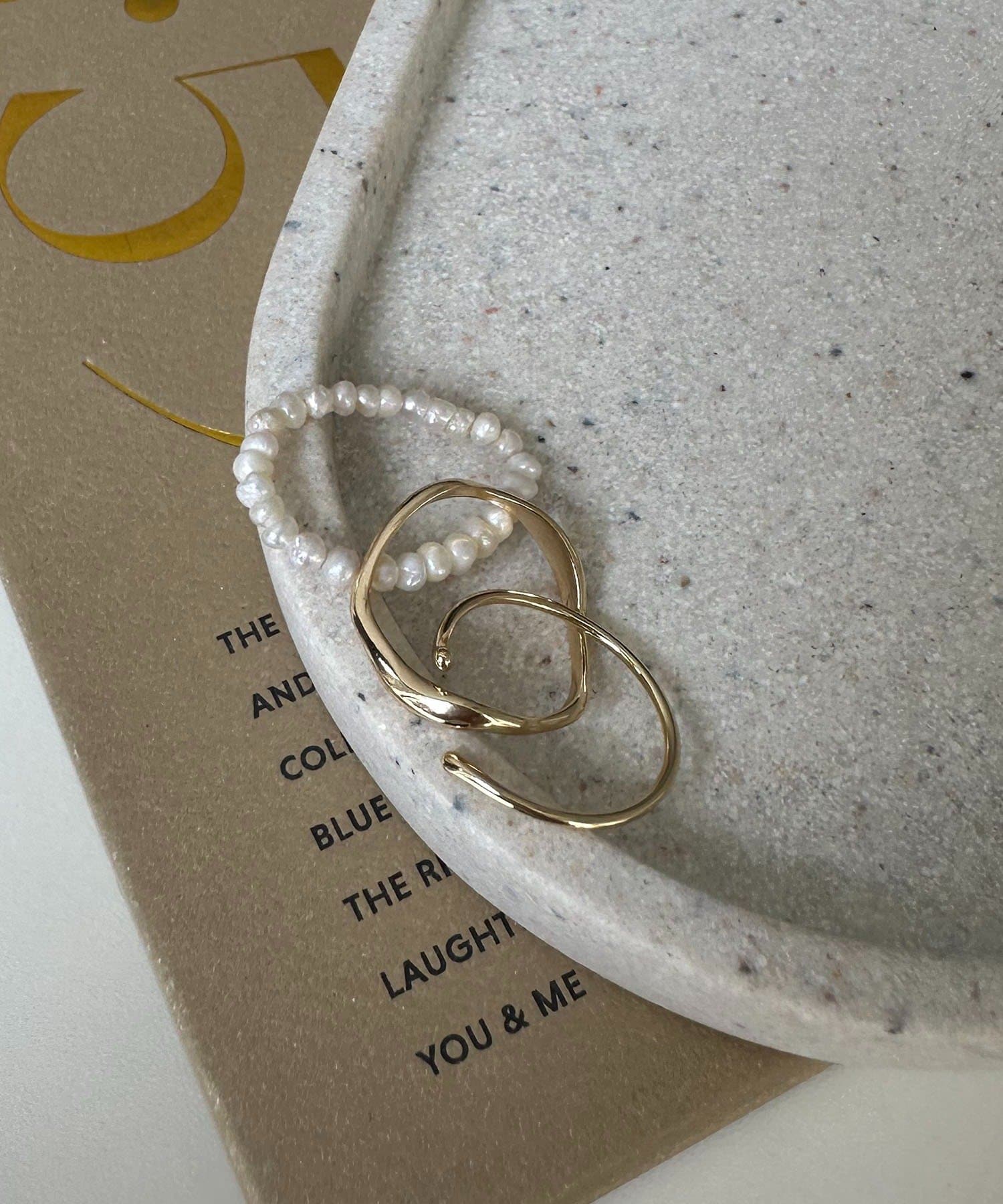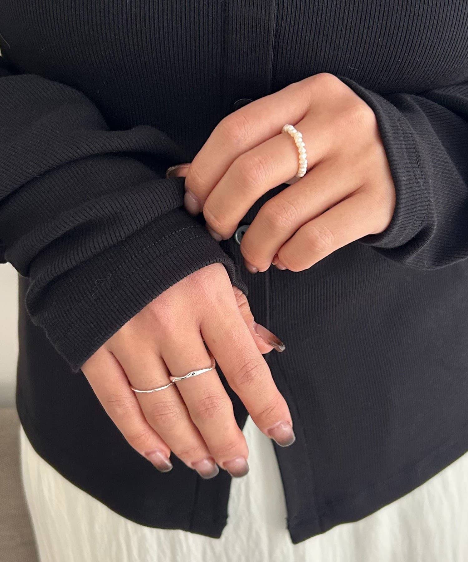 淡水パールのビーズリングとニュアンス感のあるメタルリングの3本セット。
