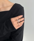 トレンドライクなボールデザインのリングとニュアンス感のあるリングが2本セットに。