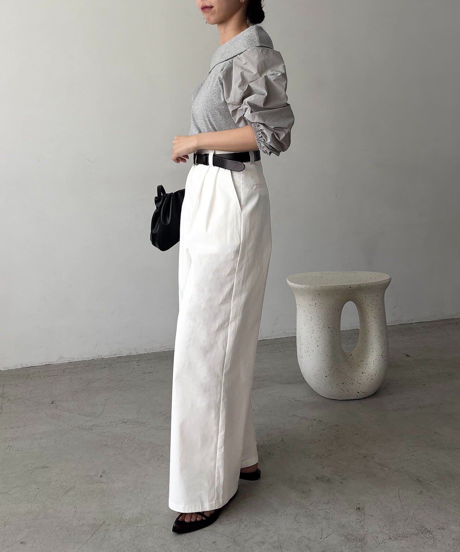・余分なゆとりが出ないため、ワイドシルエットながらもお尻周りが膨らまずすっきりと着こなせます。