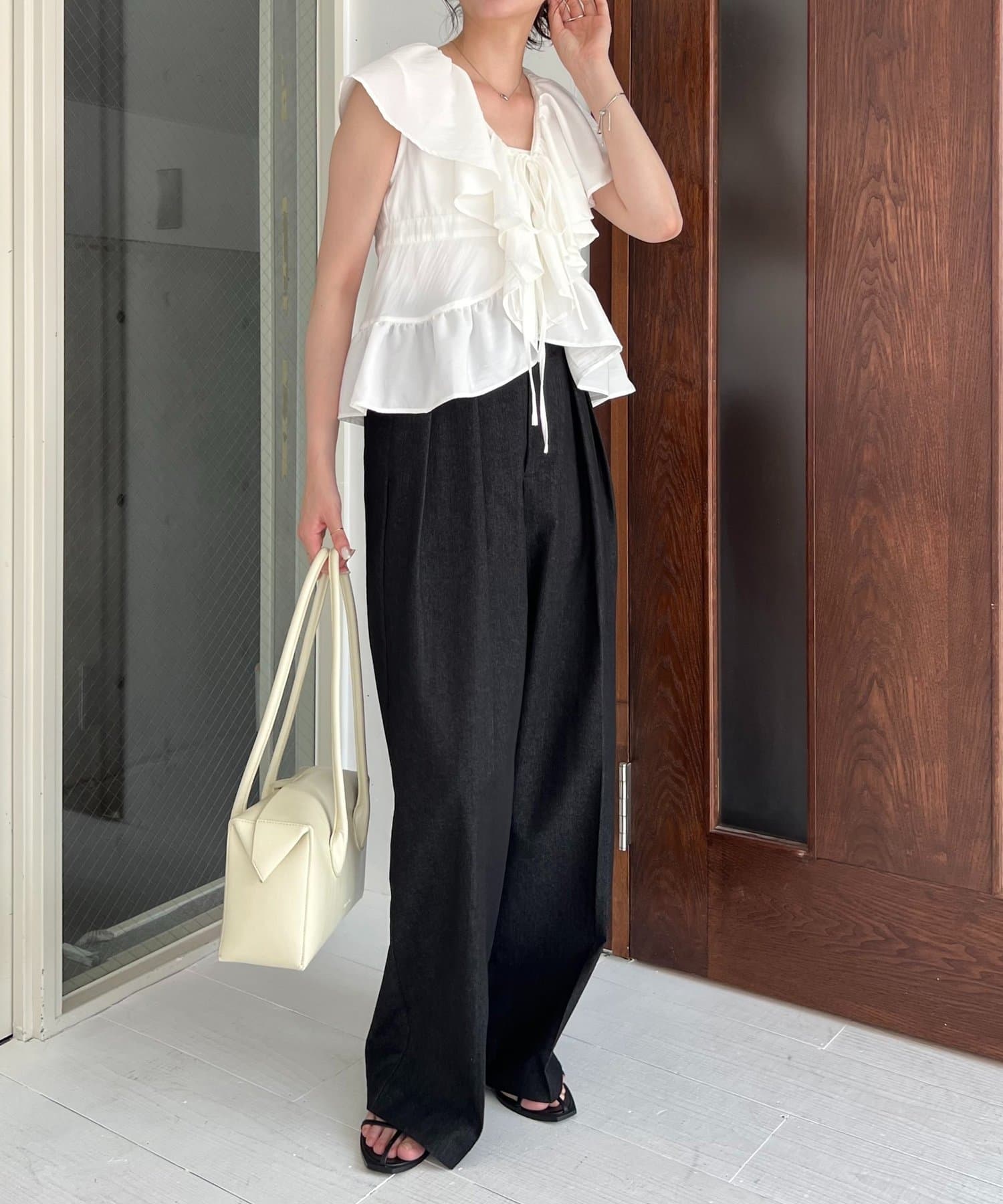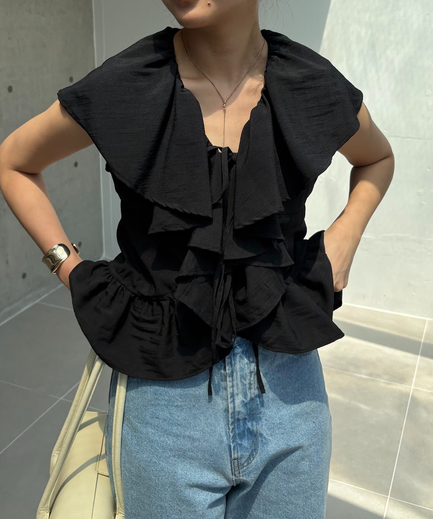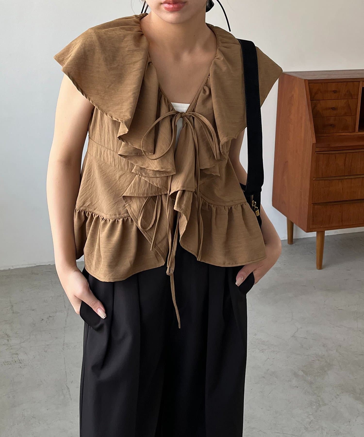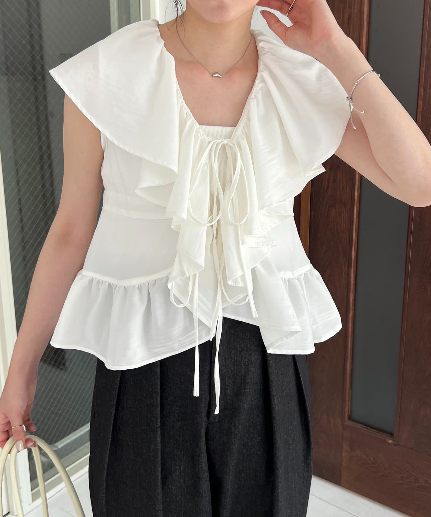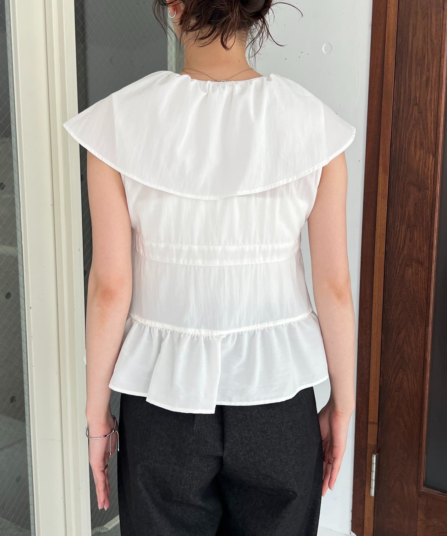 ・大きめのフリル襟が着映えするブラウス