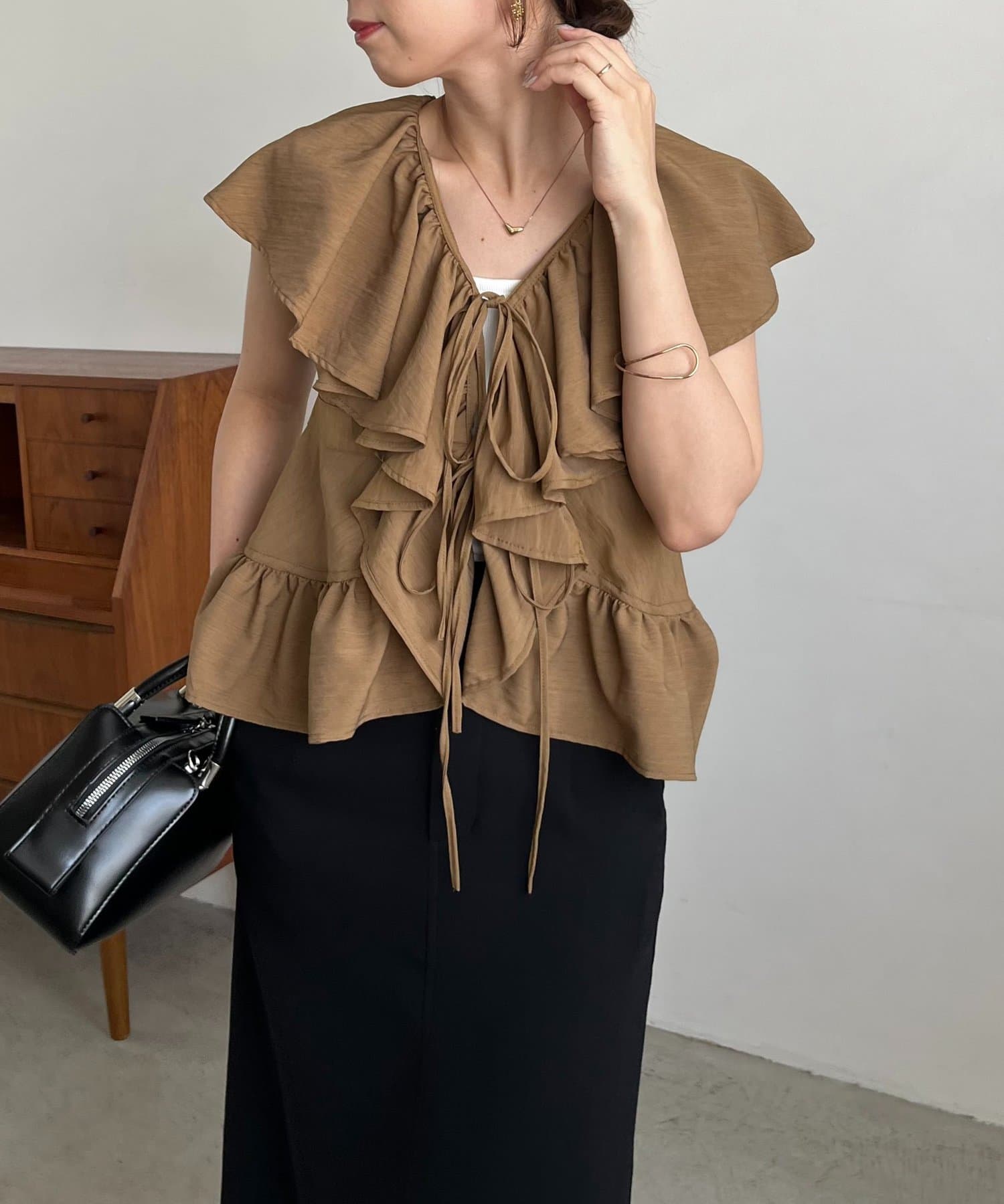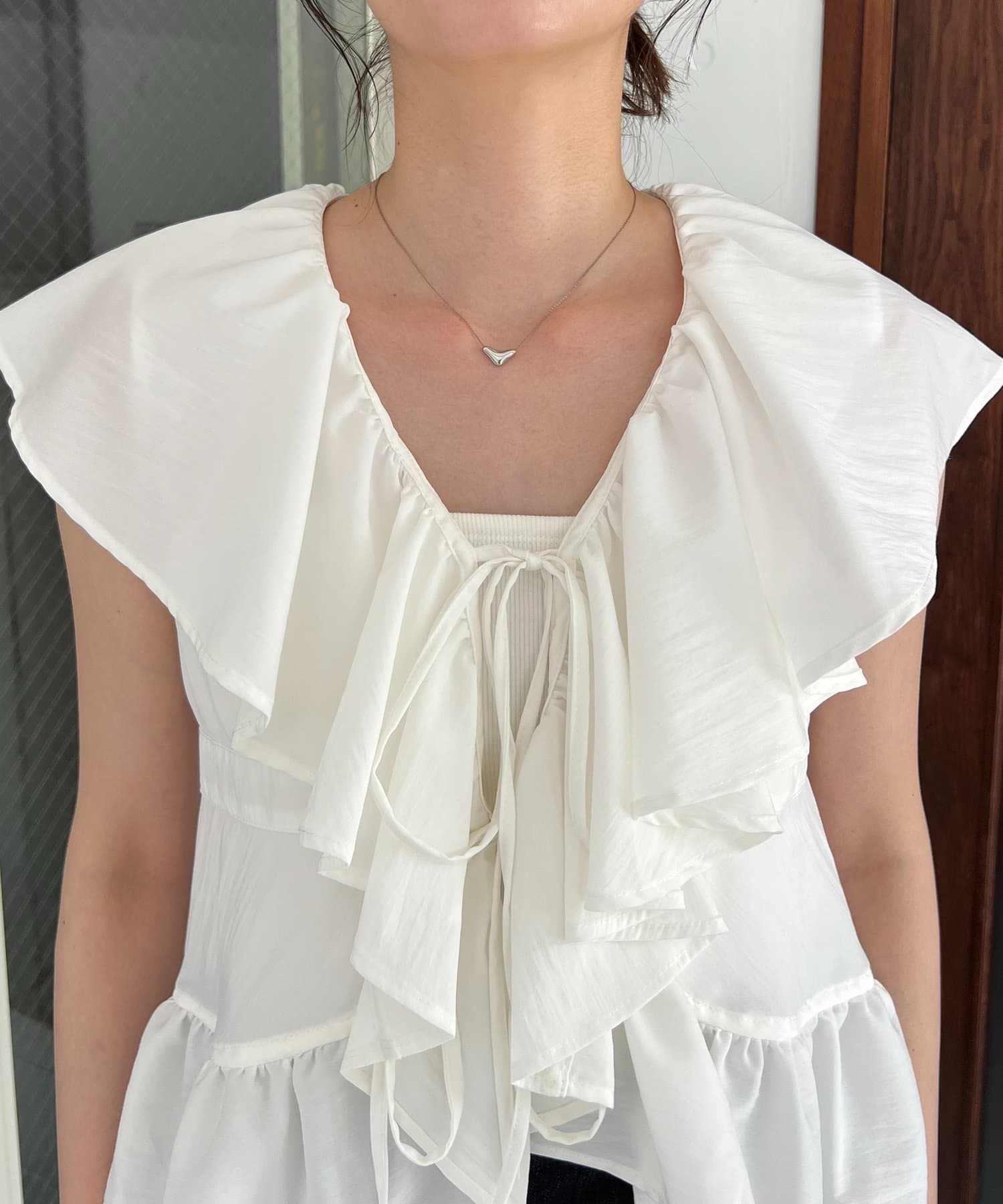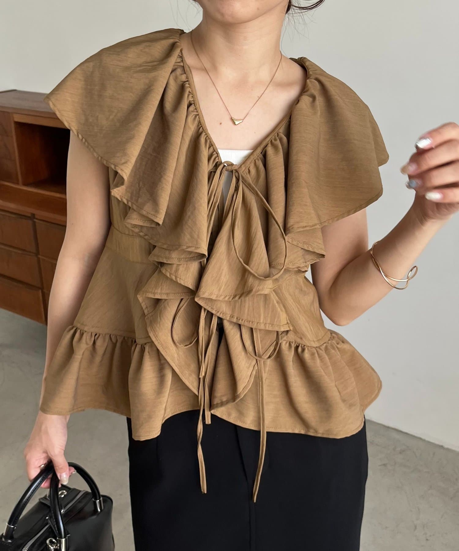 1枚で着映えするフリル襟がポイント