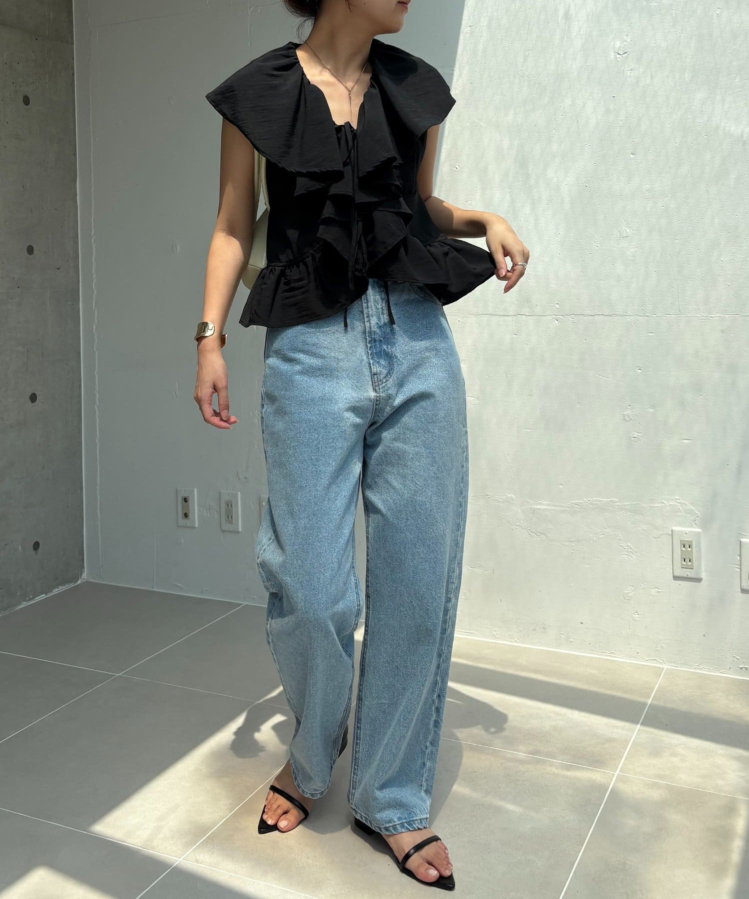 【ブラック着用アイテム】13ozハイウエストストレートデニム