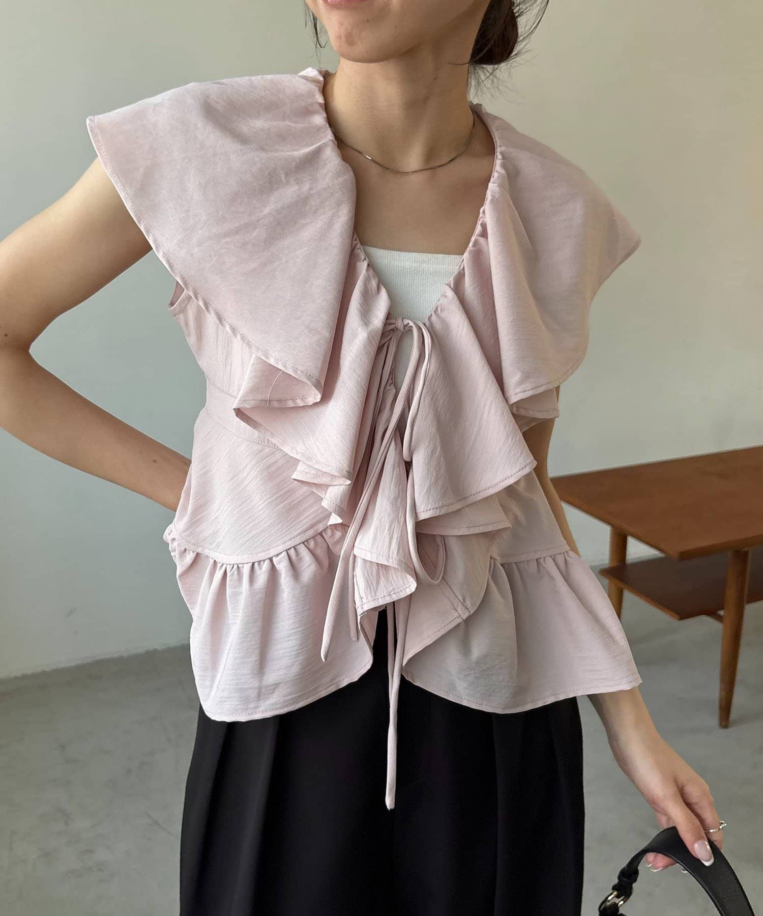 【新色ピンク】フリルカラーブラウス