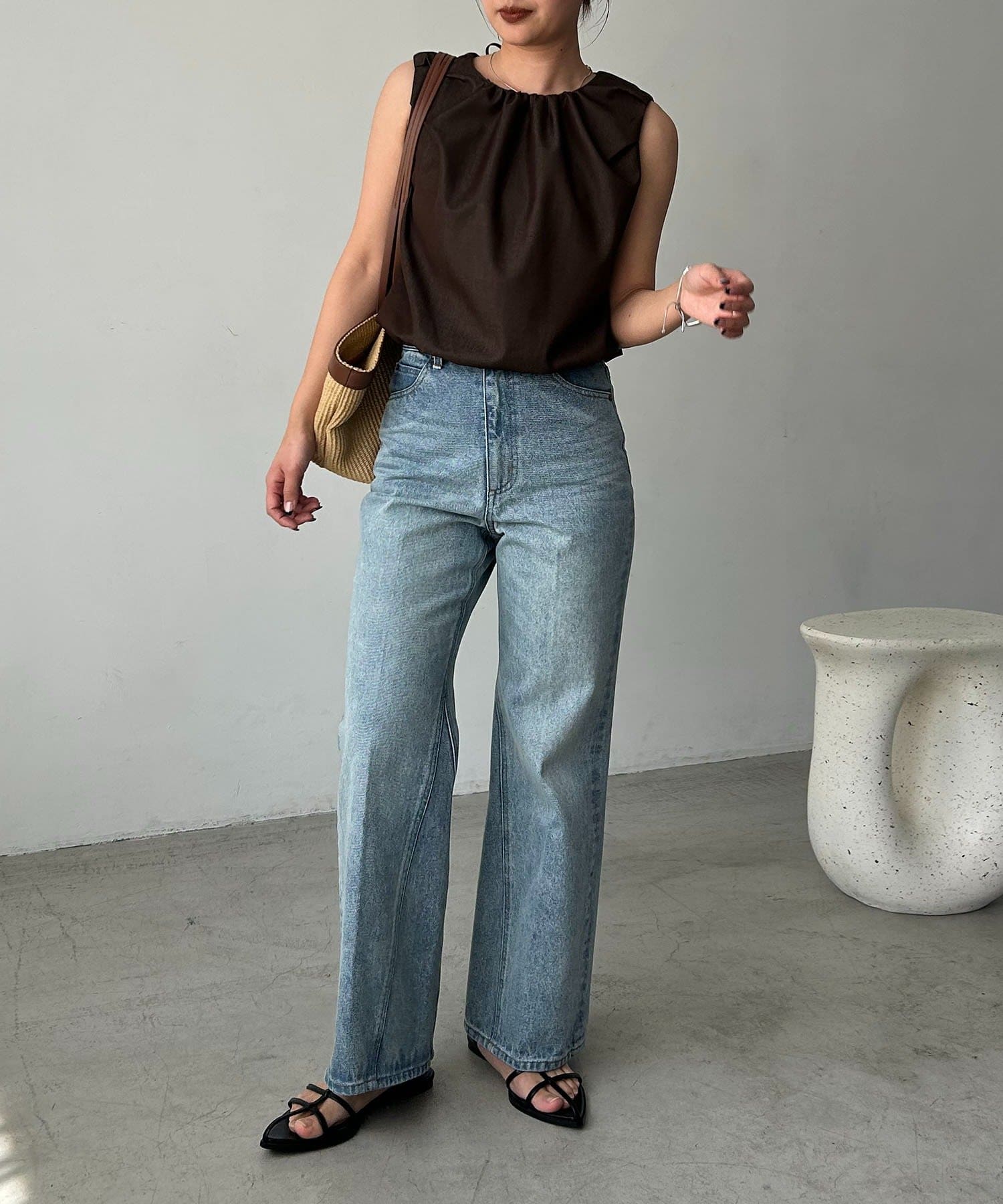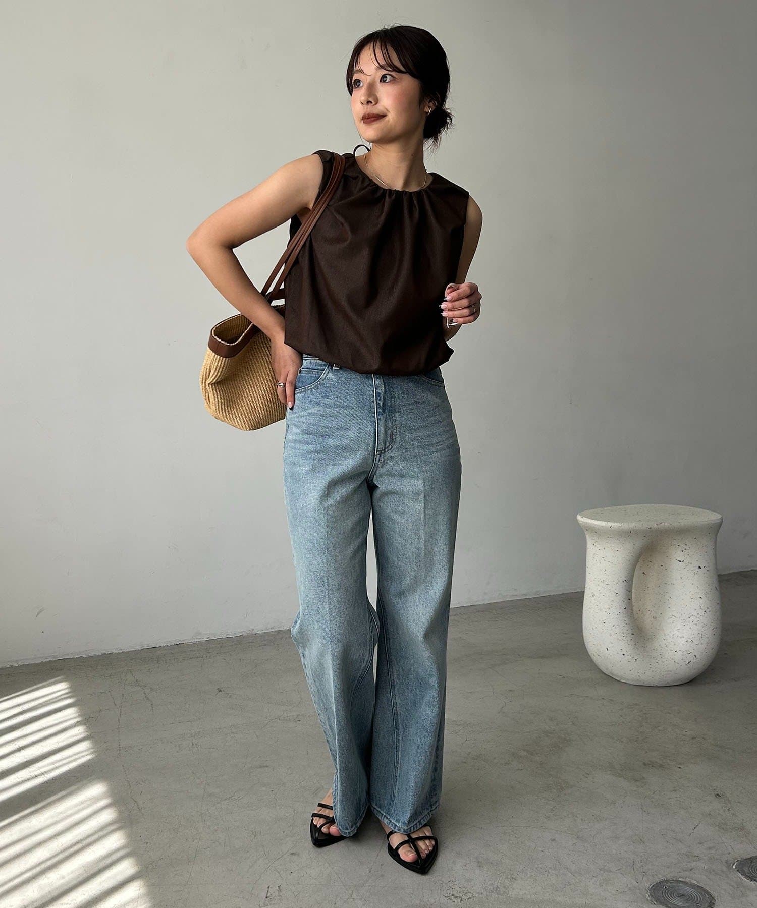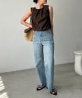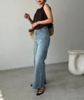 【ブラウン着用アイテム】【低身長サイズあり】セミフレアデニム