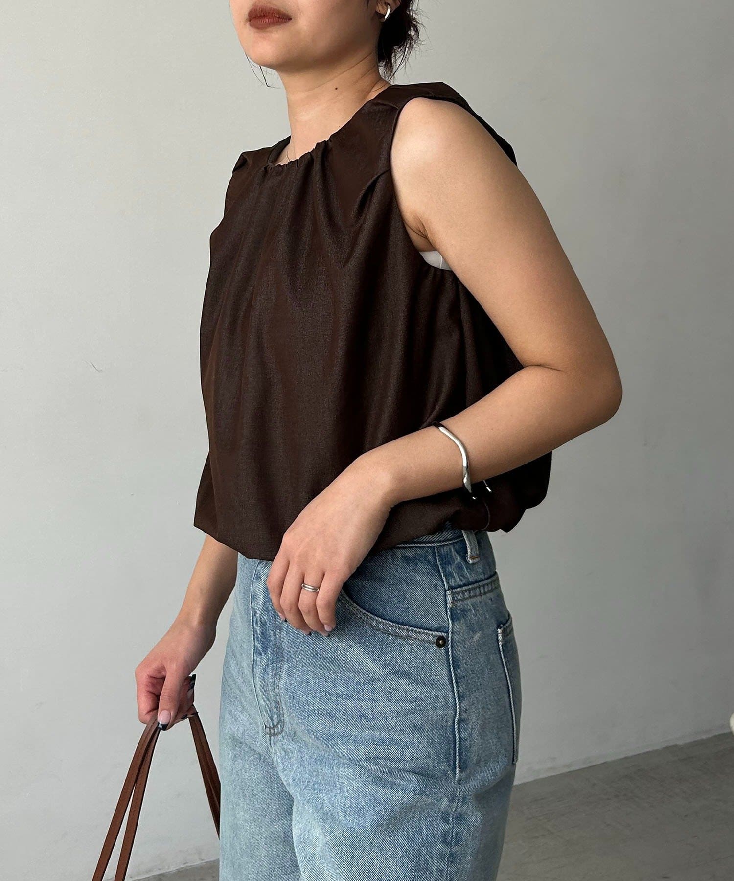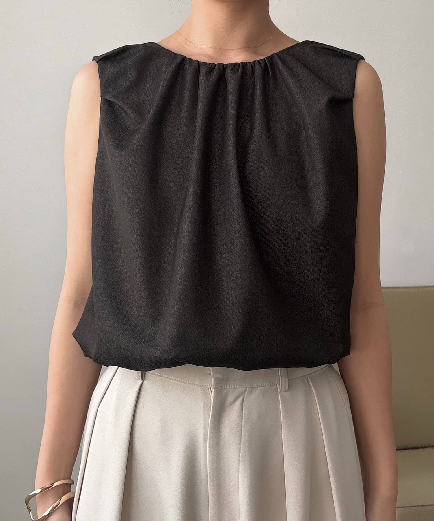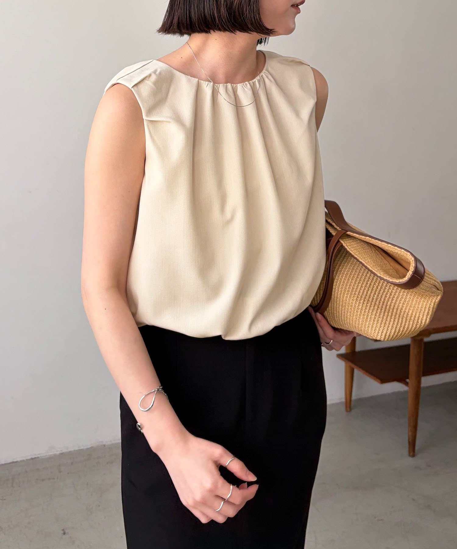 ・ふんわり広がるシルエットの対比効果で気になる二の腕もすっきり見え