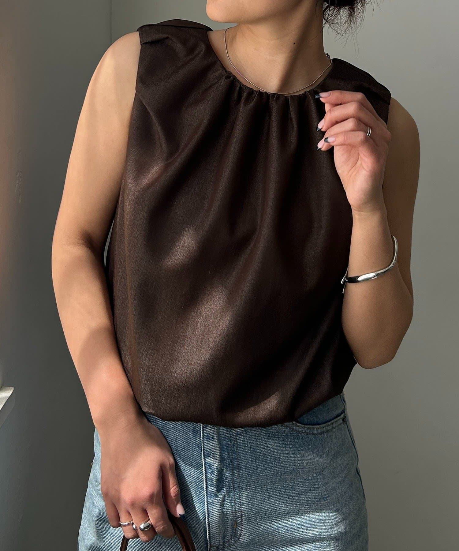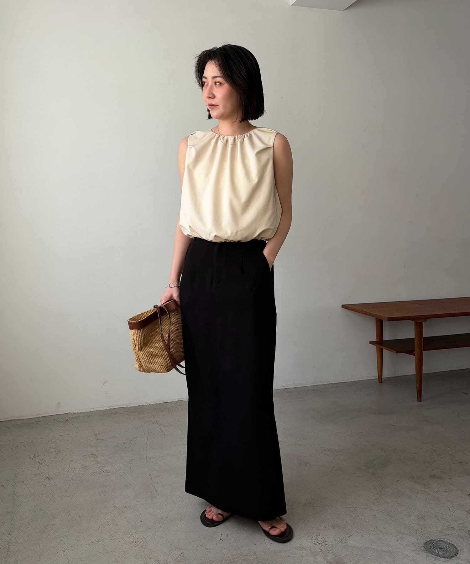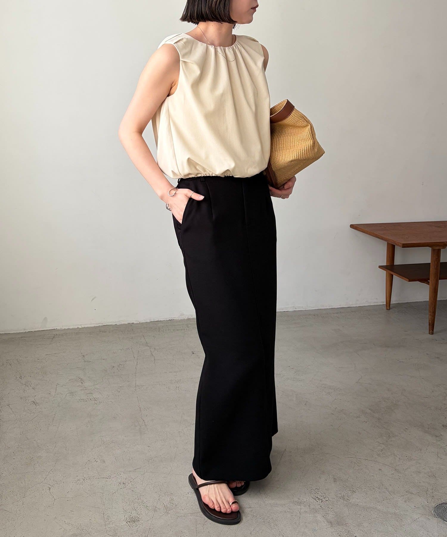 ・ふんわり広がるシルエットの対比効果で気になる二の腕もすっきり見え