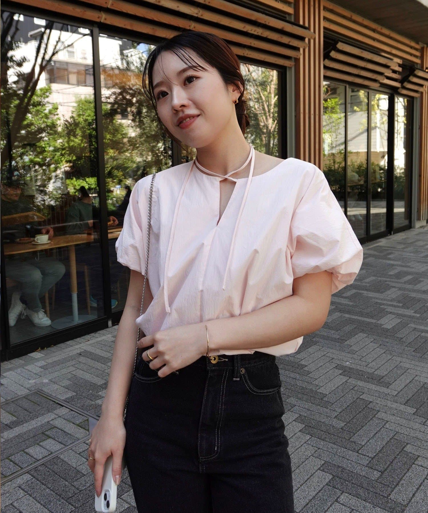 首元の紐で何通りも印象変えれるので万能です!