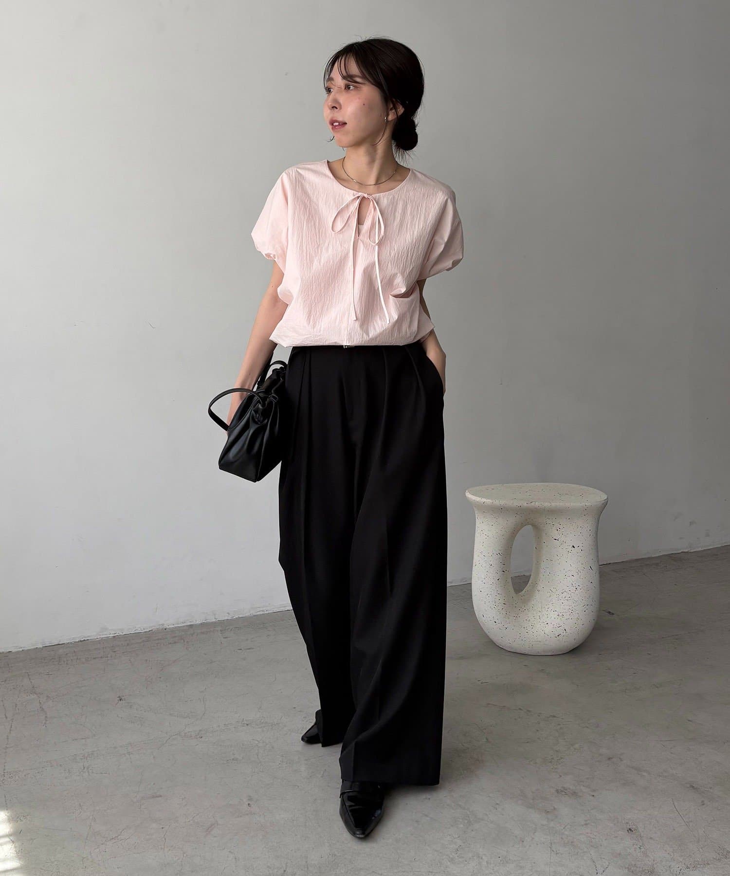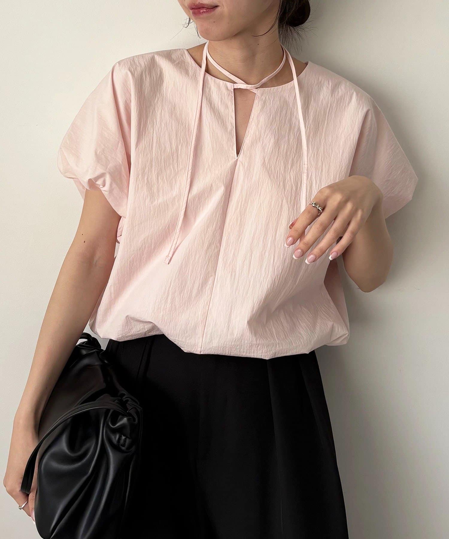 購入場所:パルクローゼット一見シンプルなブラウスですが、首の紐の付け方・結び方によっては印象が変わるため着回ししやすいです。