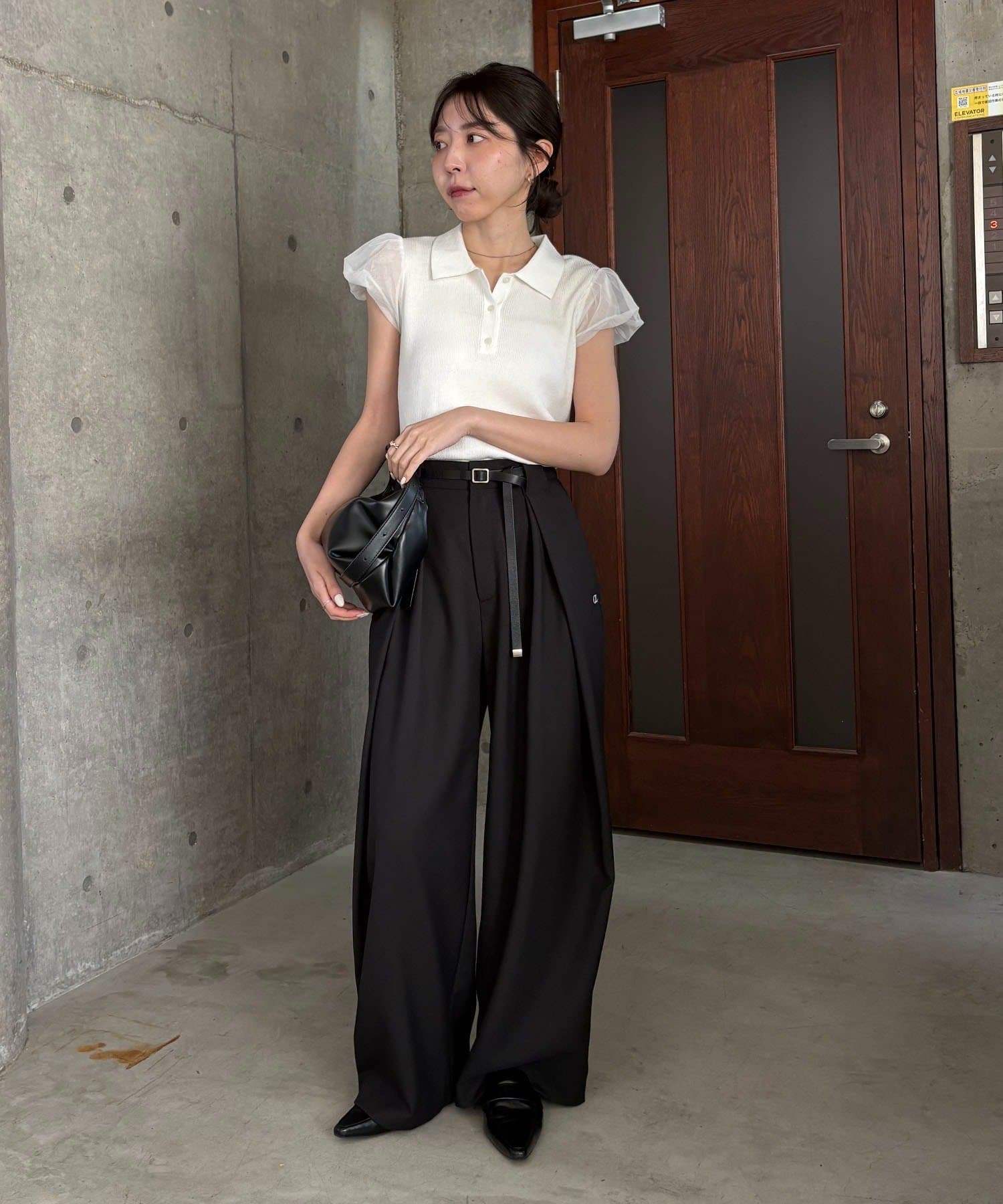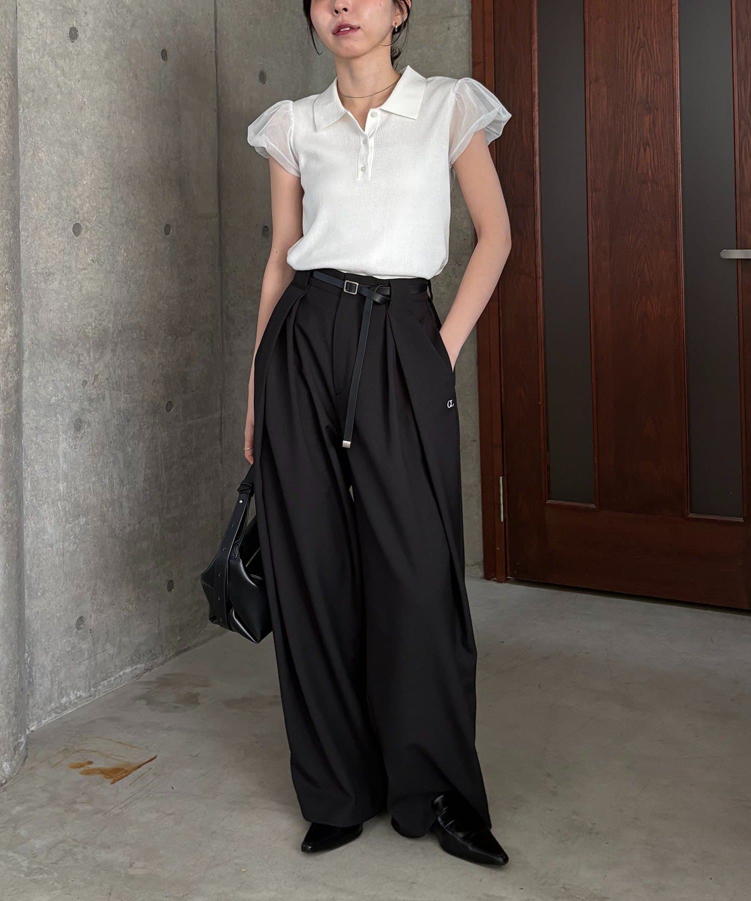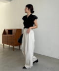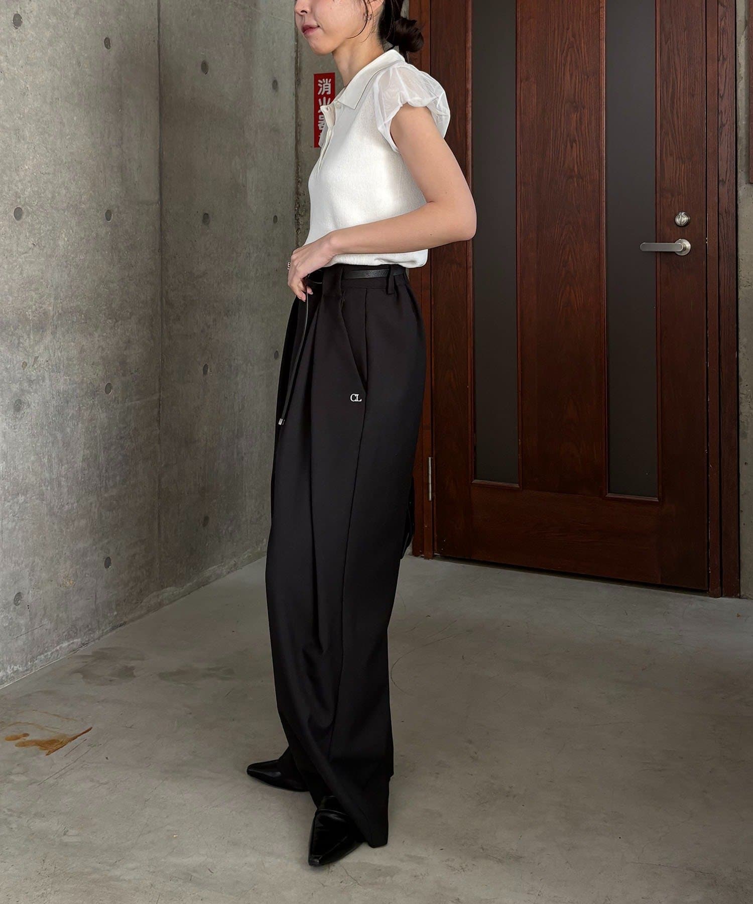 【ホワイト着用アイテム】〈C.L〉レザーベルト付変形タックパンツ
