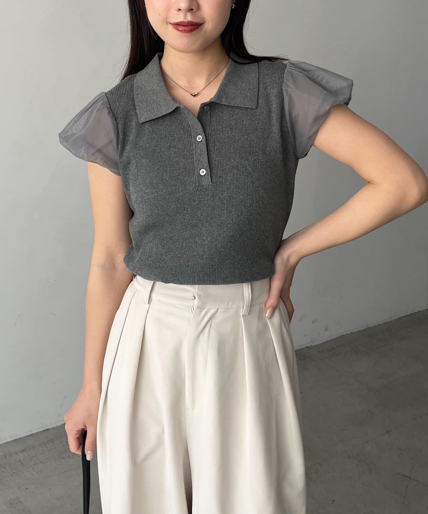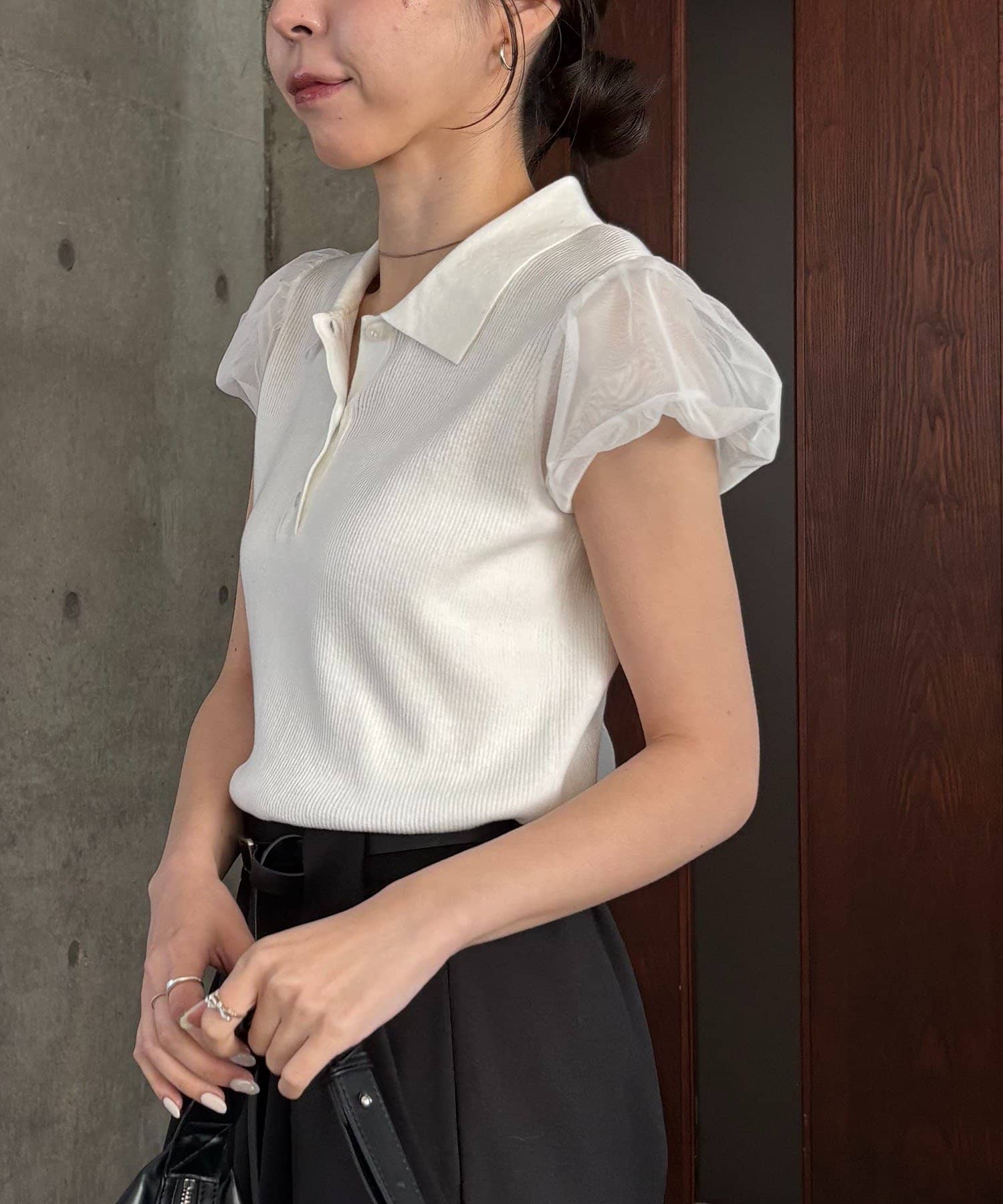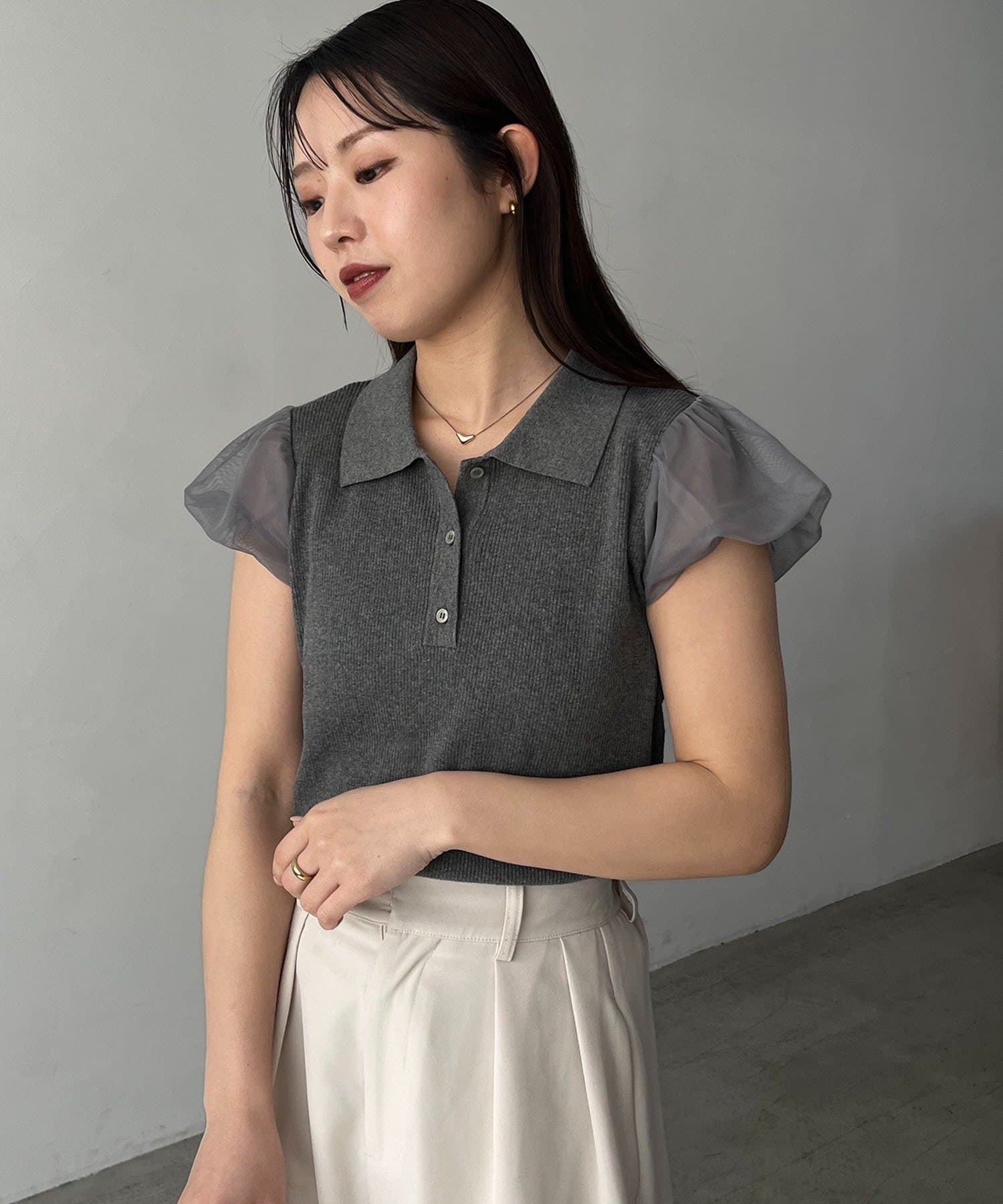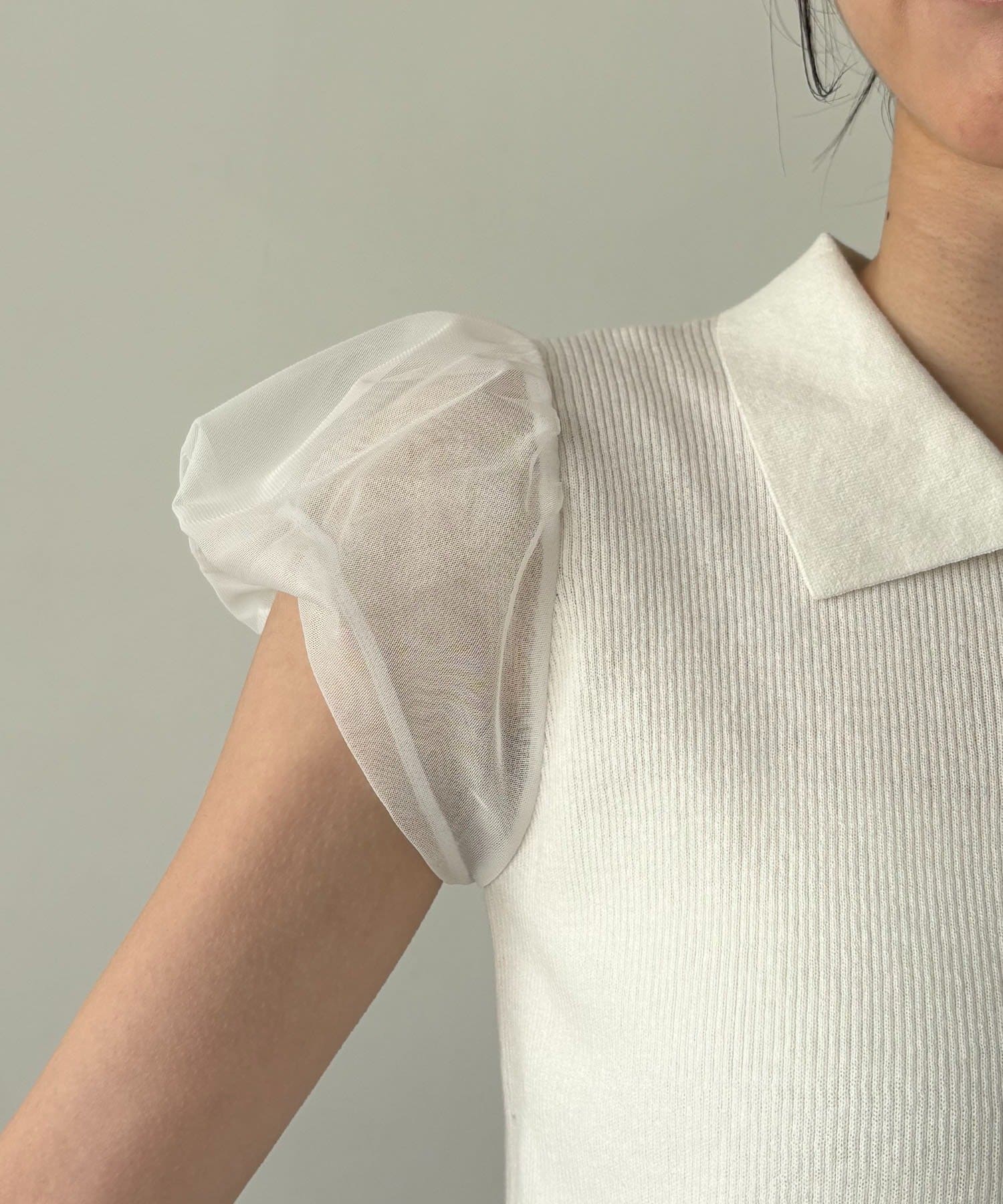 ・袖には軽やかなシアー素材を使用しほんのり透ける抜け感がポイント