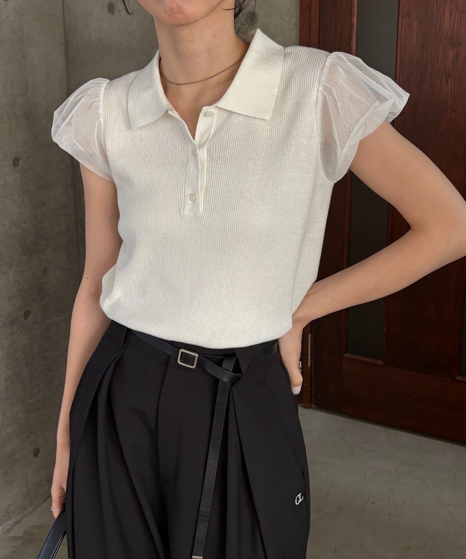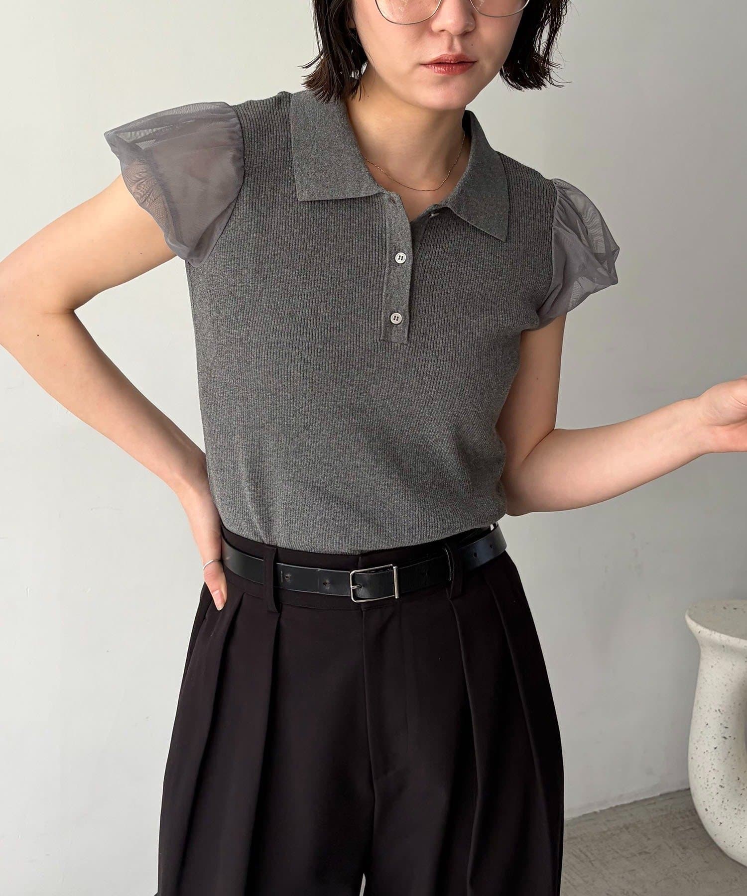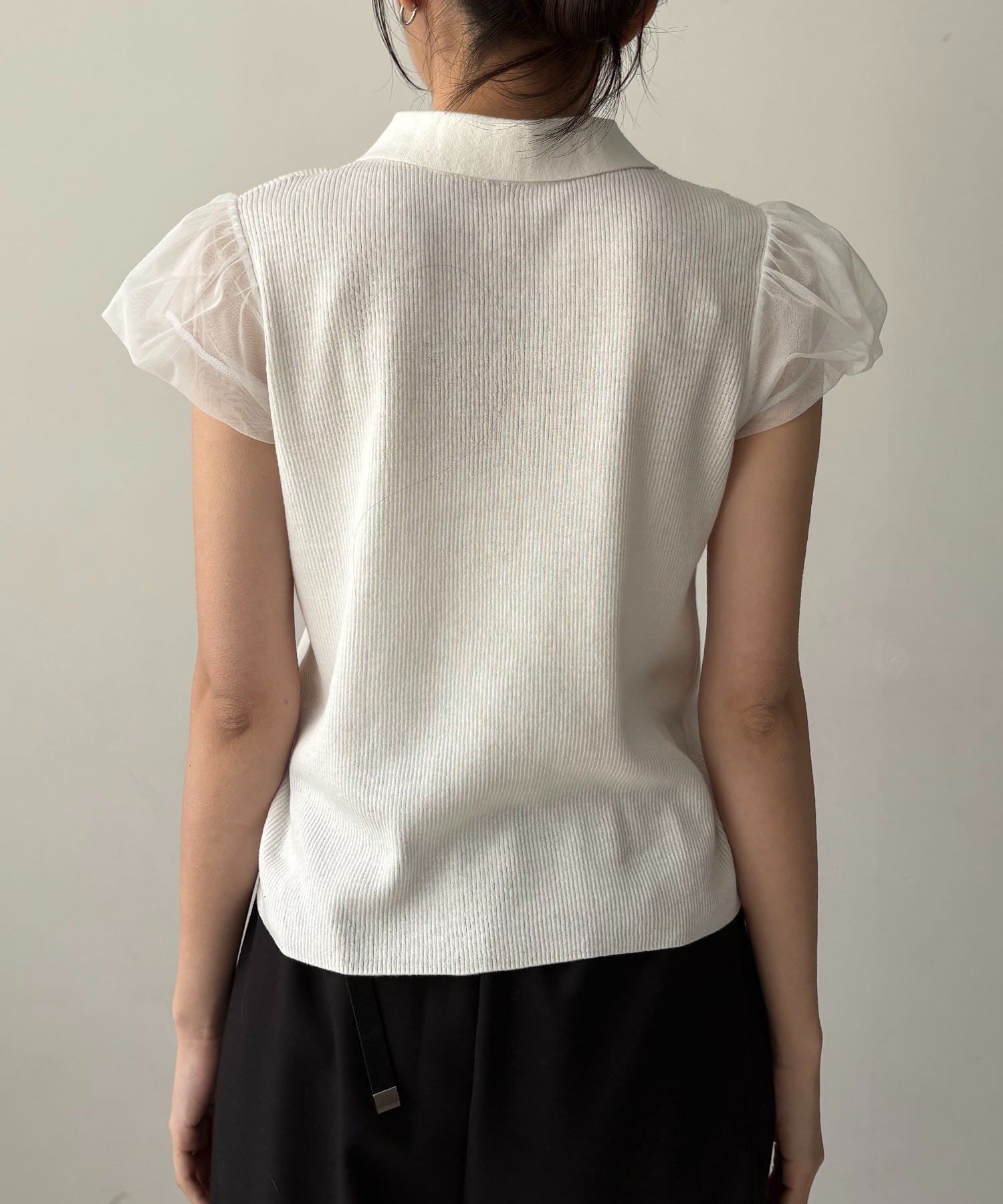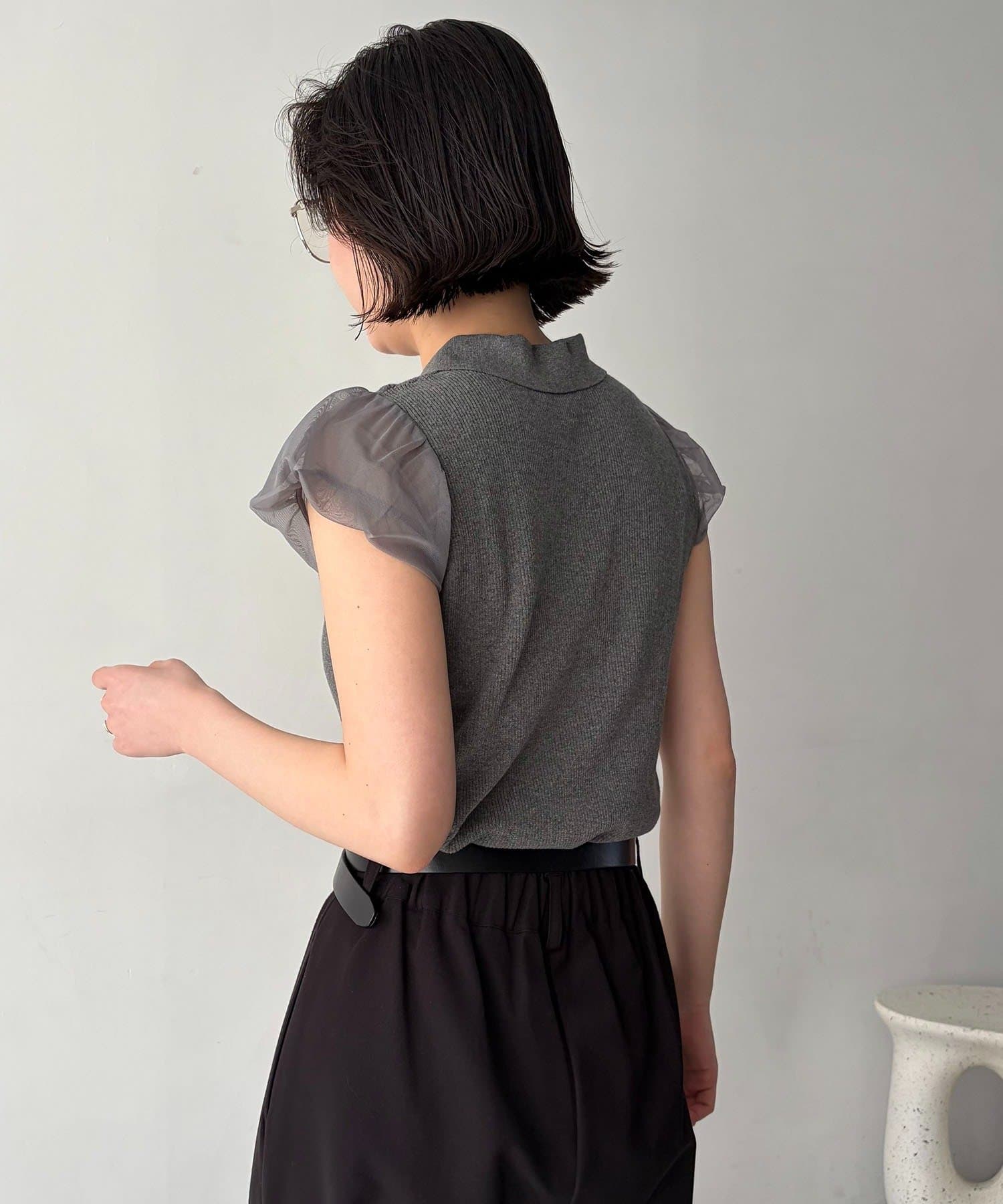 ・袖には軽やかなシアー素材を使用しほんのり透ける抜け感がポイント
