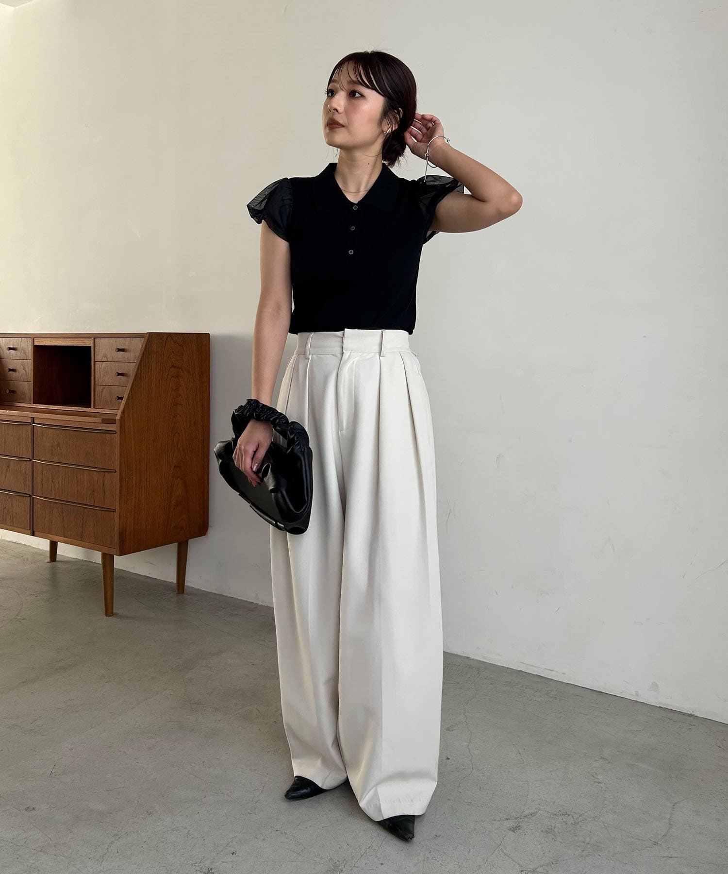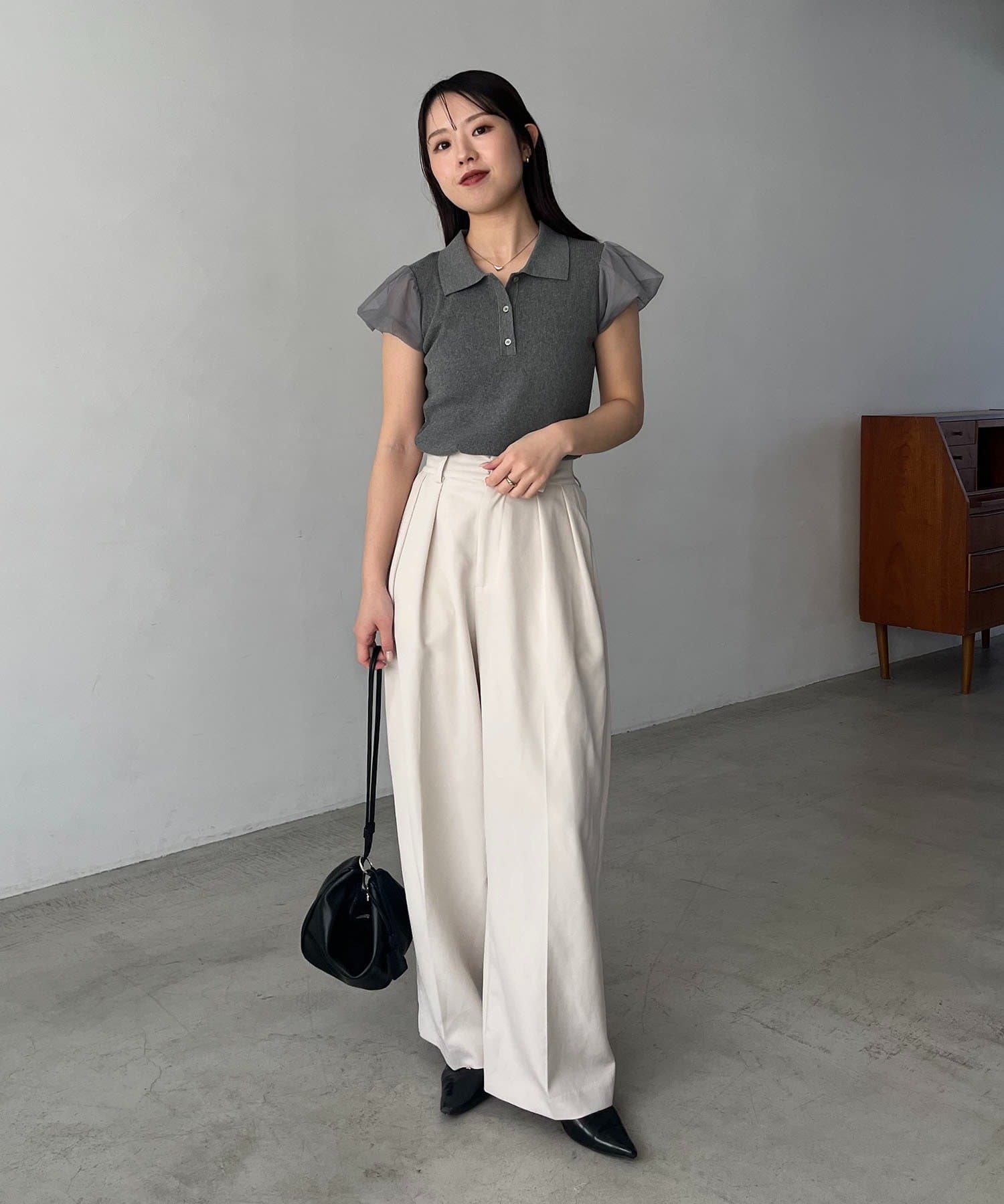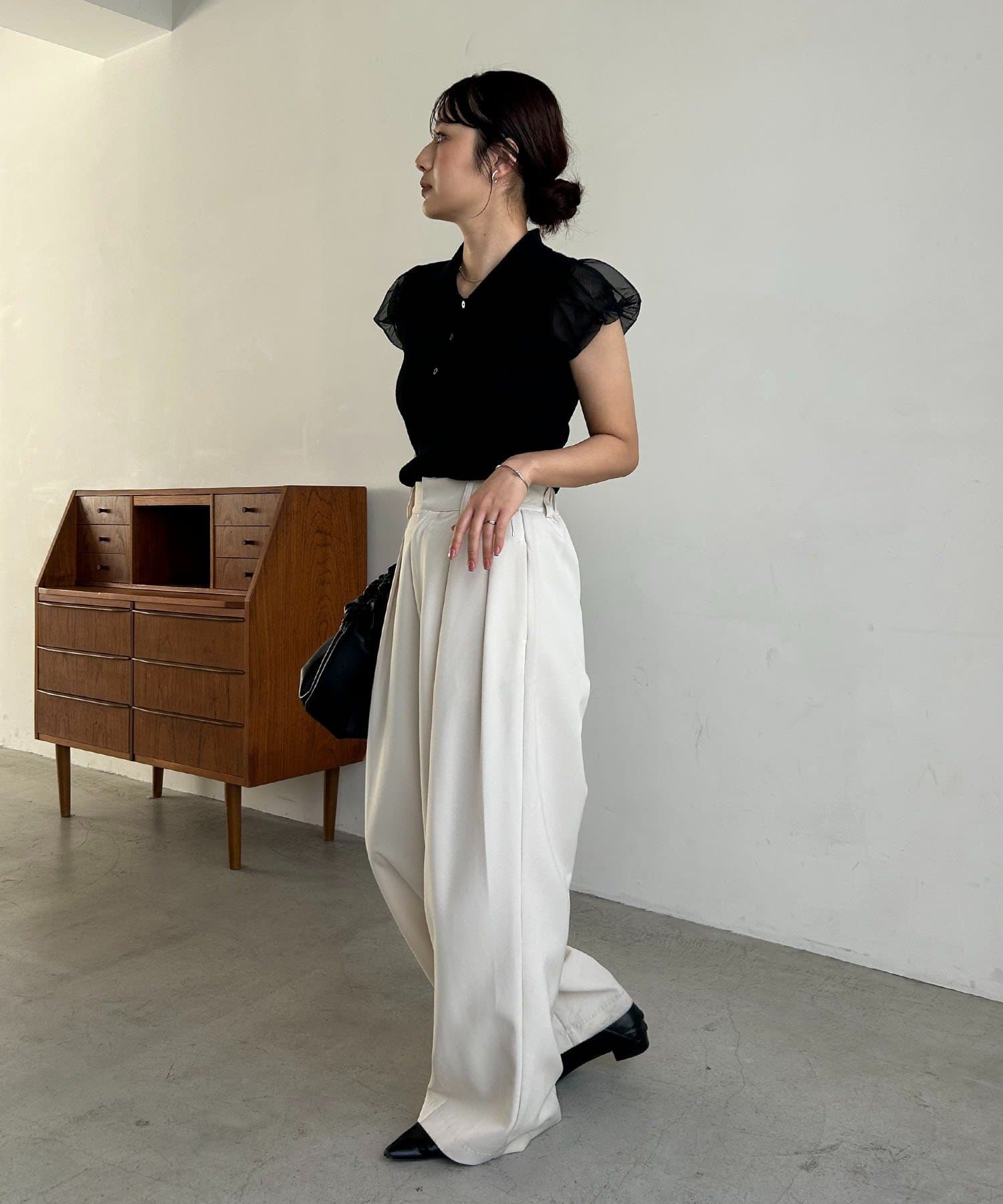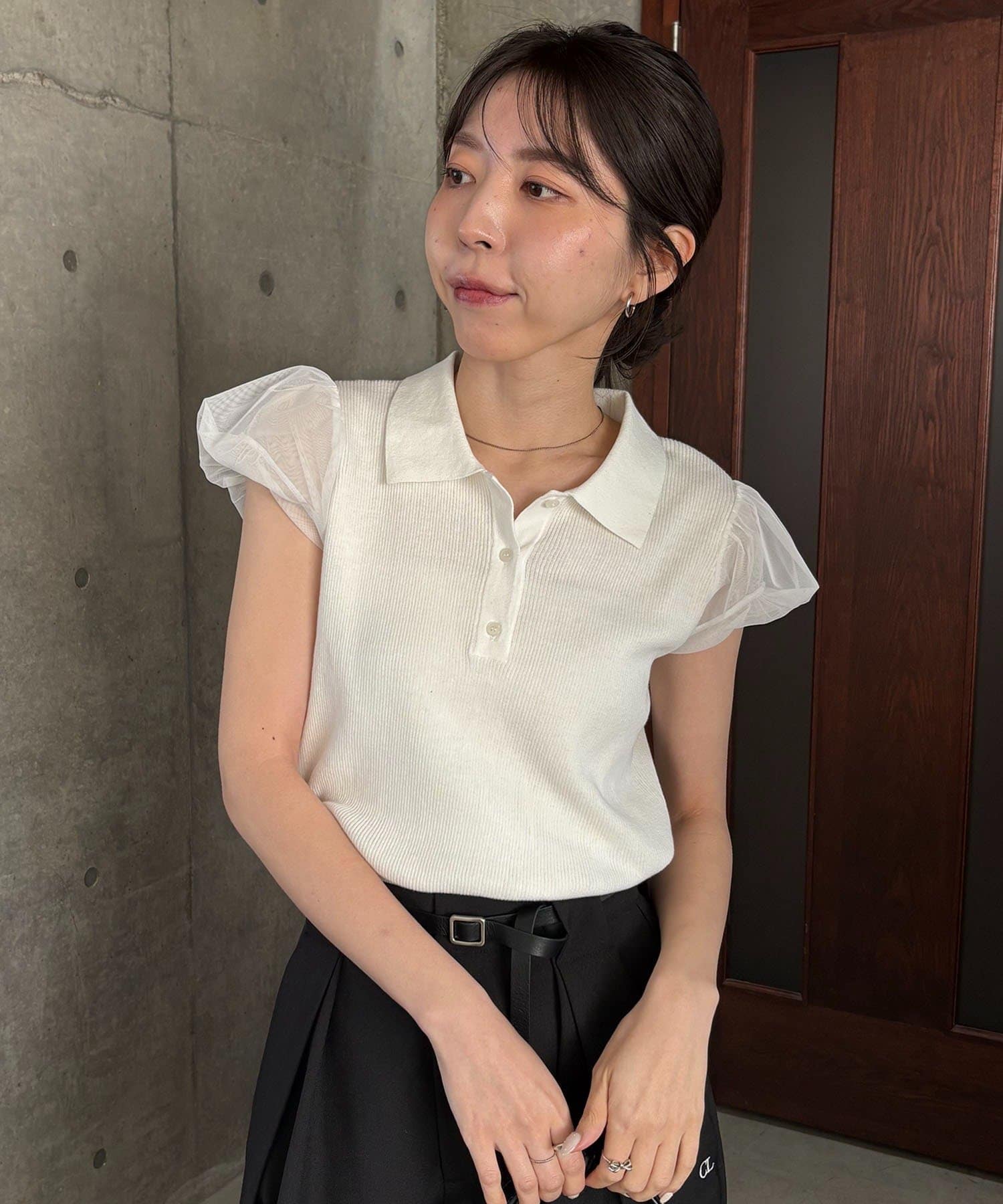 ・袖には軽やかなシアー素材を使用しほんのり透ける抜け感がポイント