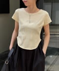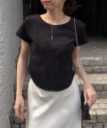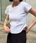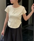 ウエストラインを立体的に見せる切替が入ったデザインTシャツ