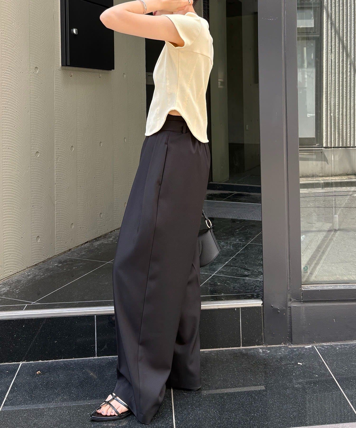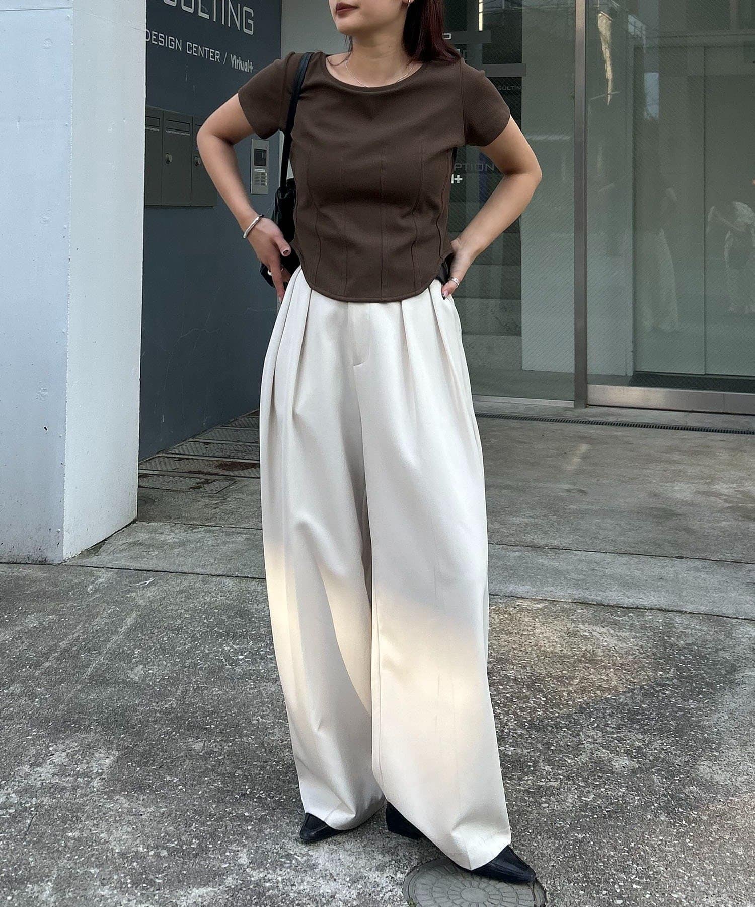 【ブラウン着用アイテム】2タックワイドパンツ