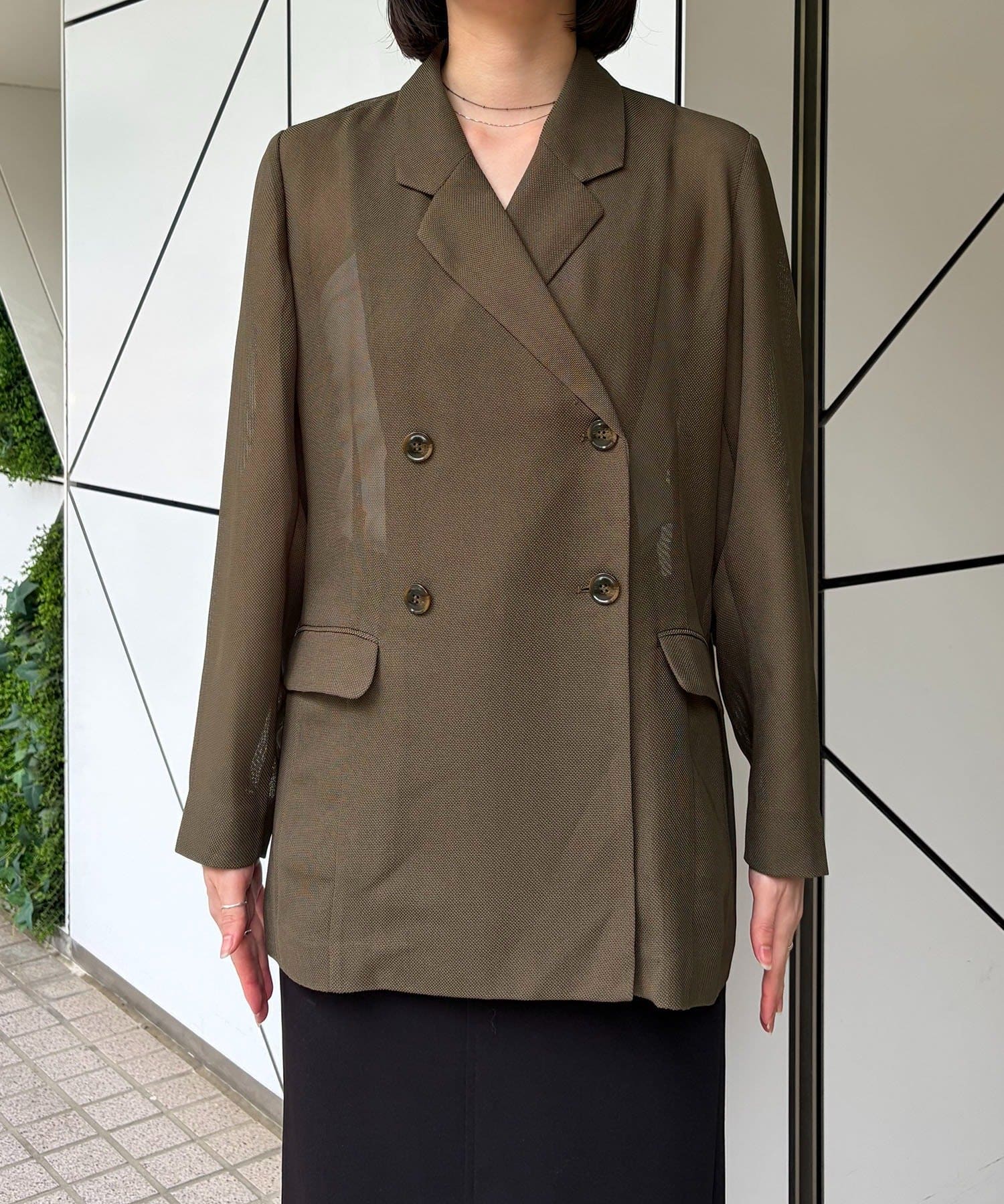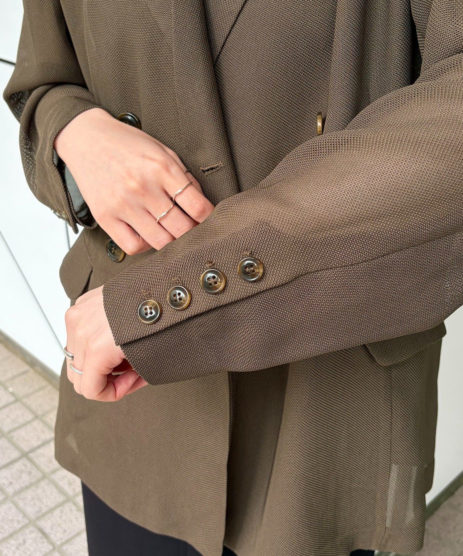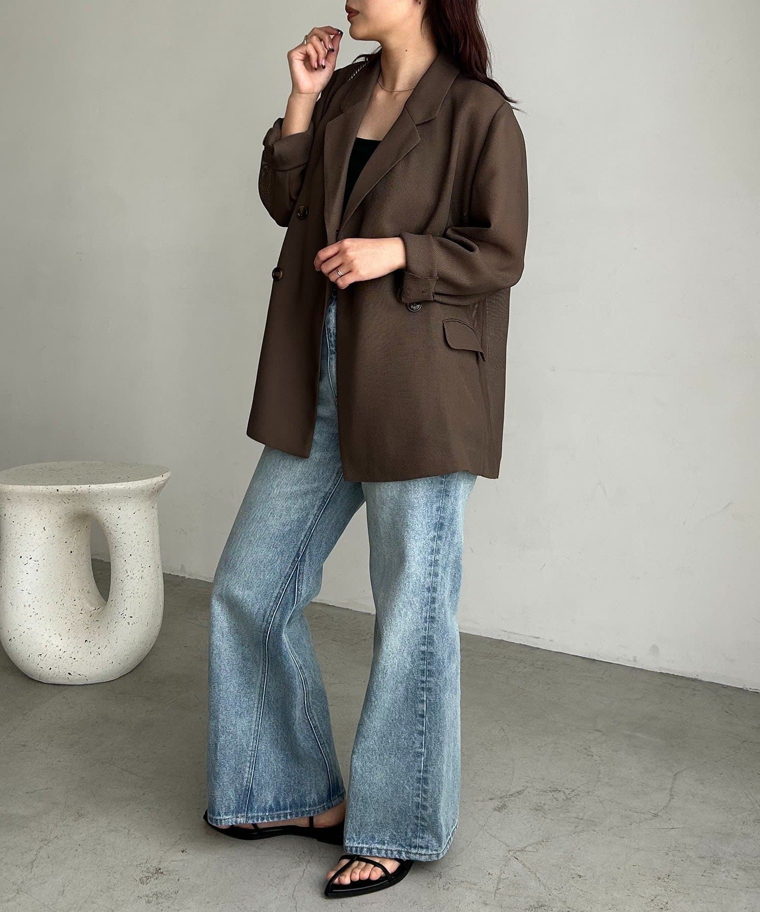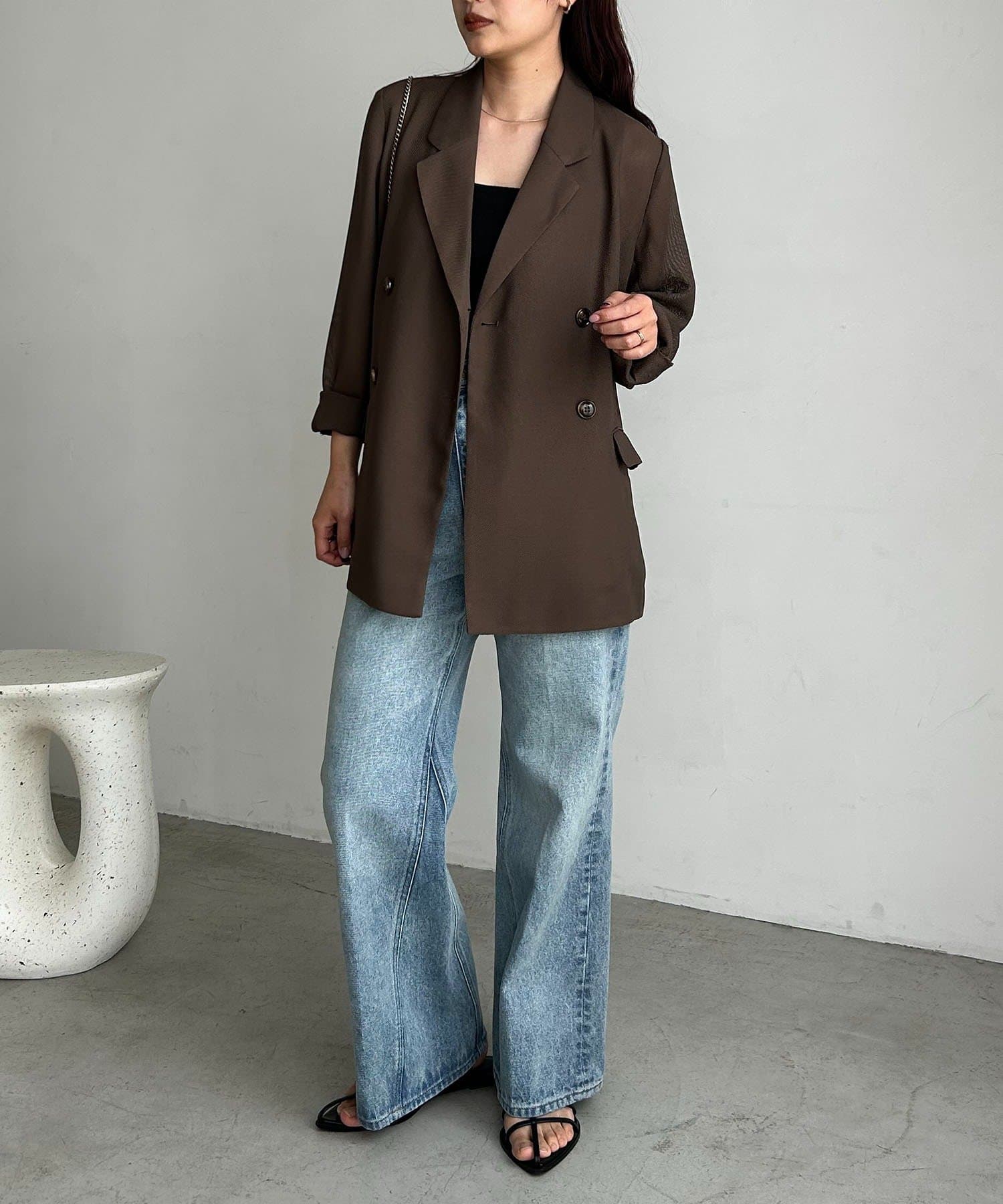・Wボタンの仕様で身幅をたっぷりとり、抜け感のあるシルエットに