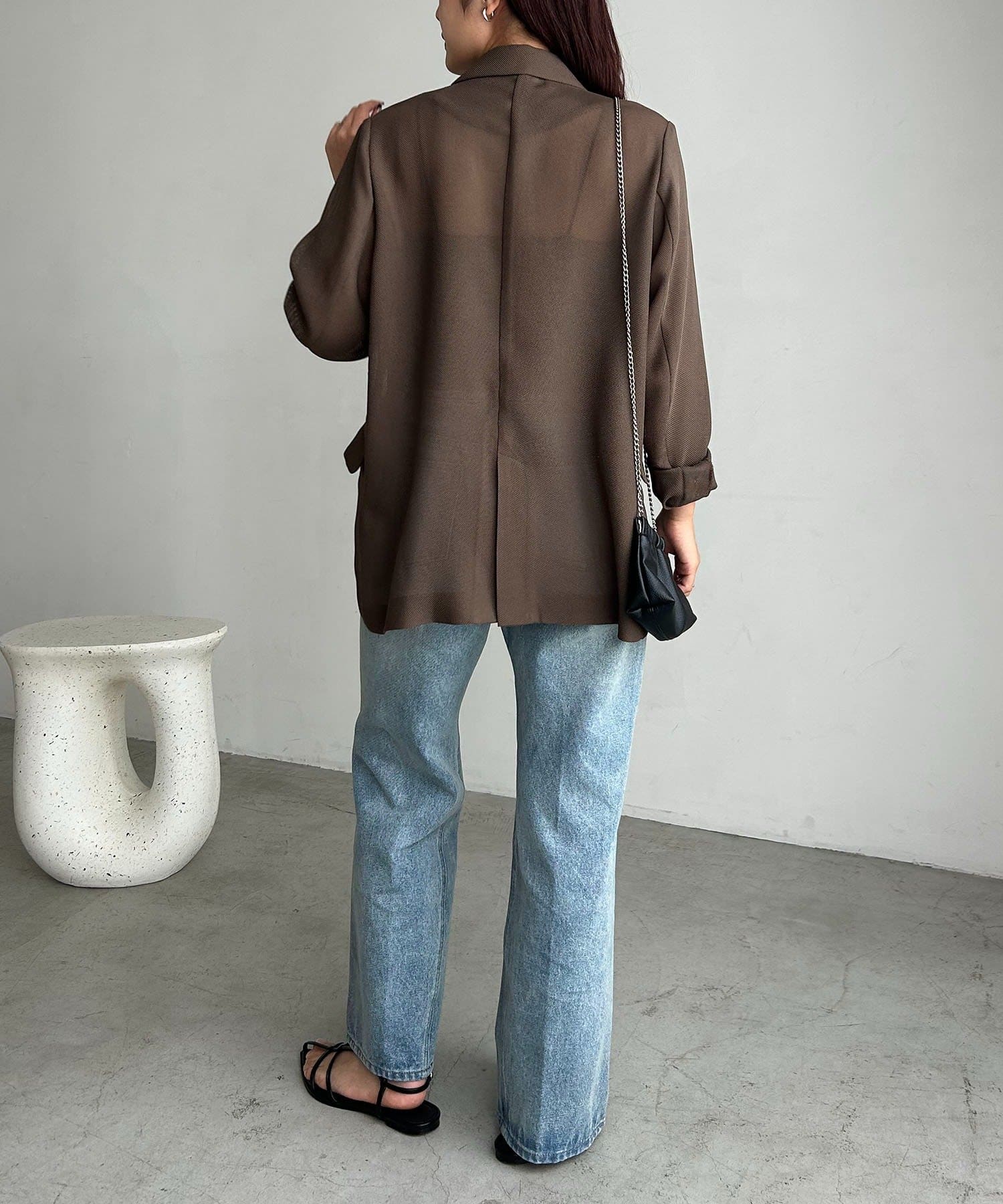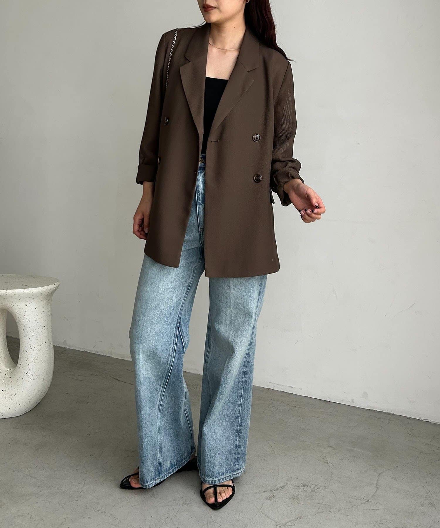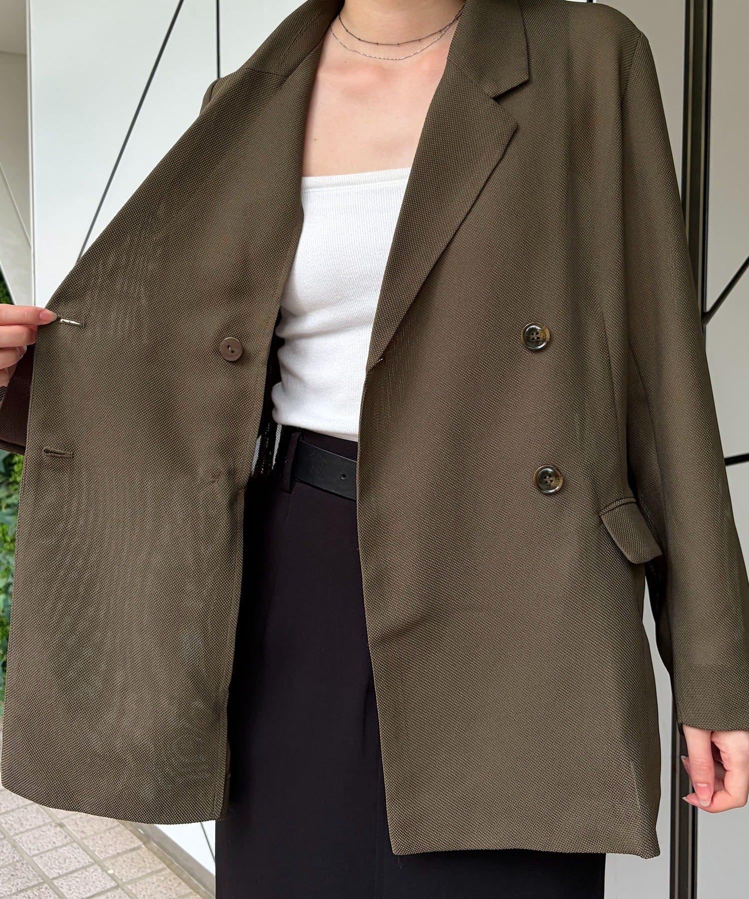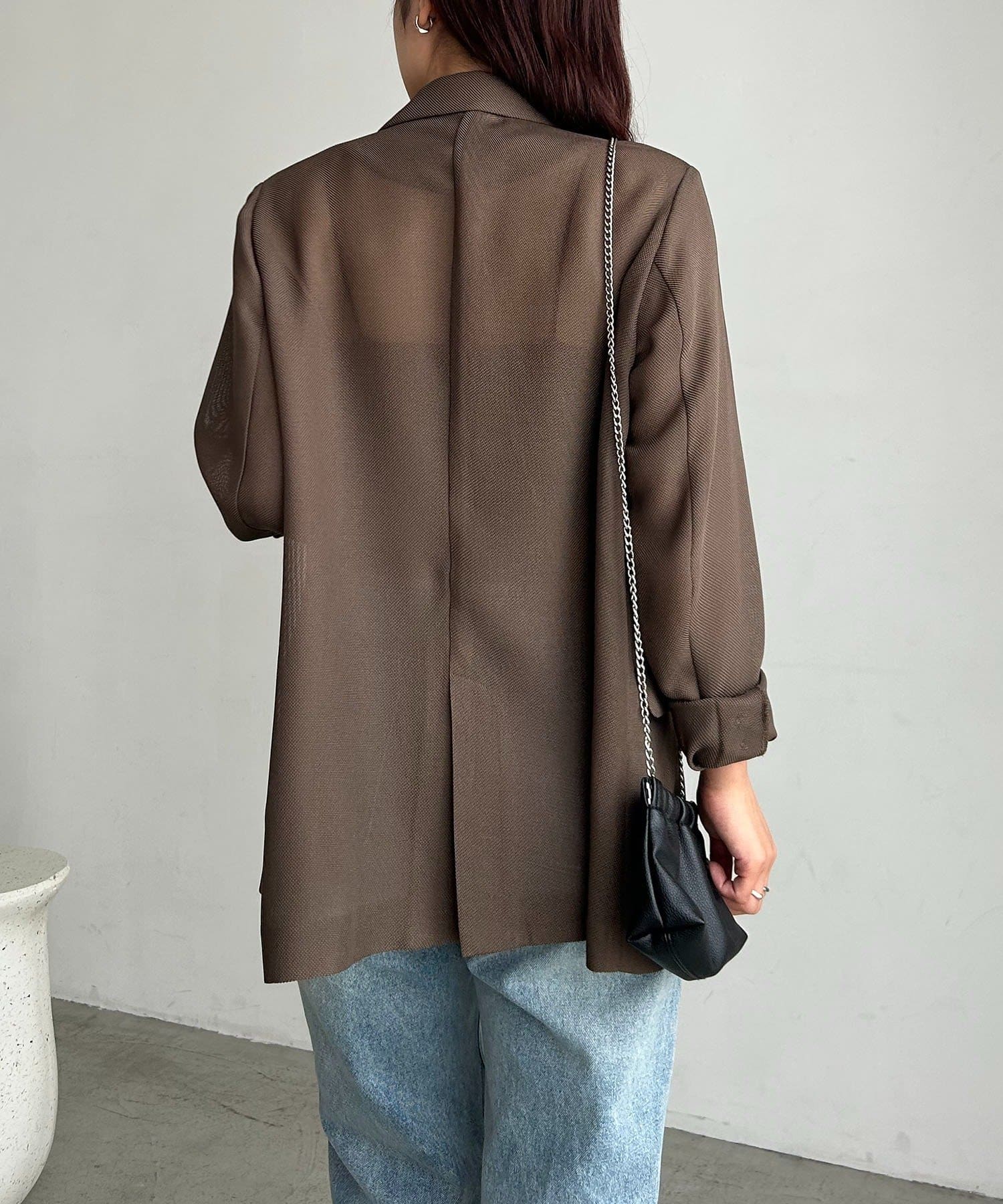 ・Wボタンの仕様で身幅をたっぷりとり、抜け感のあるシルエットに