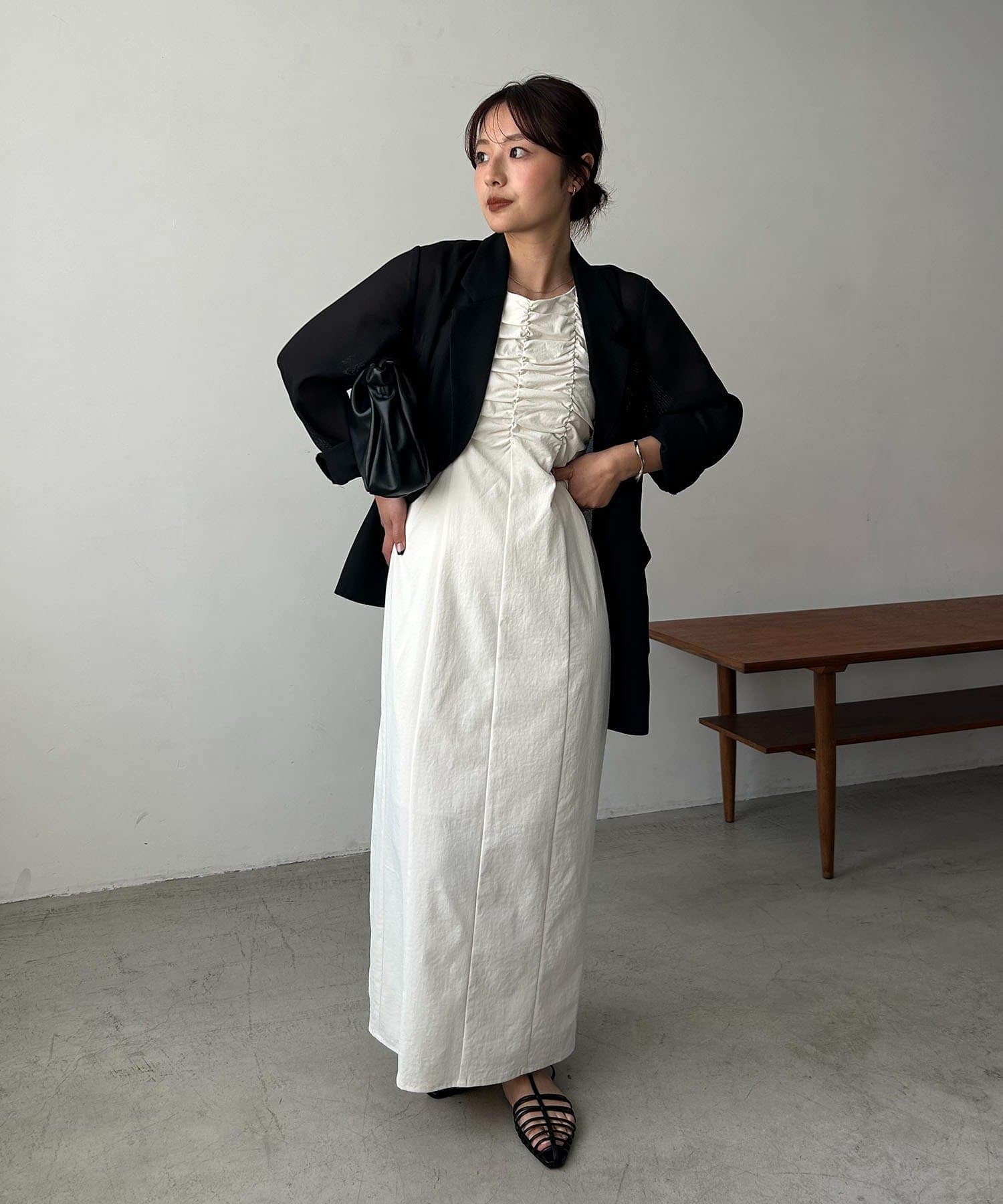 【ブラック着用アイテム➁】ギャザーノースリワンピース