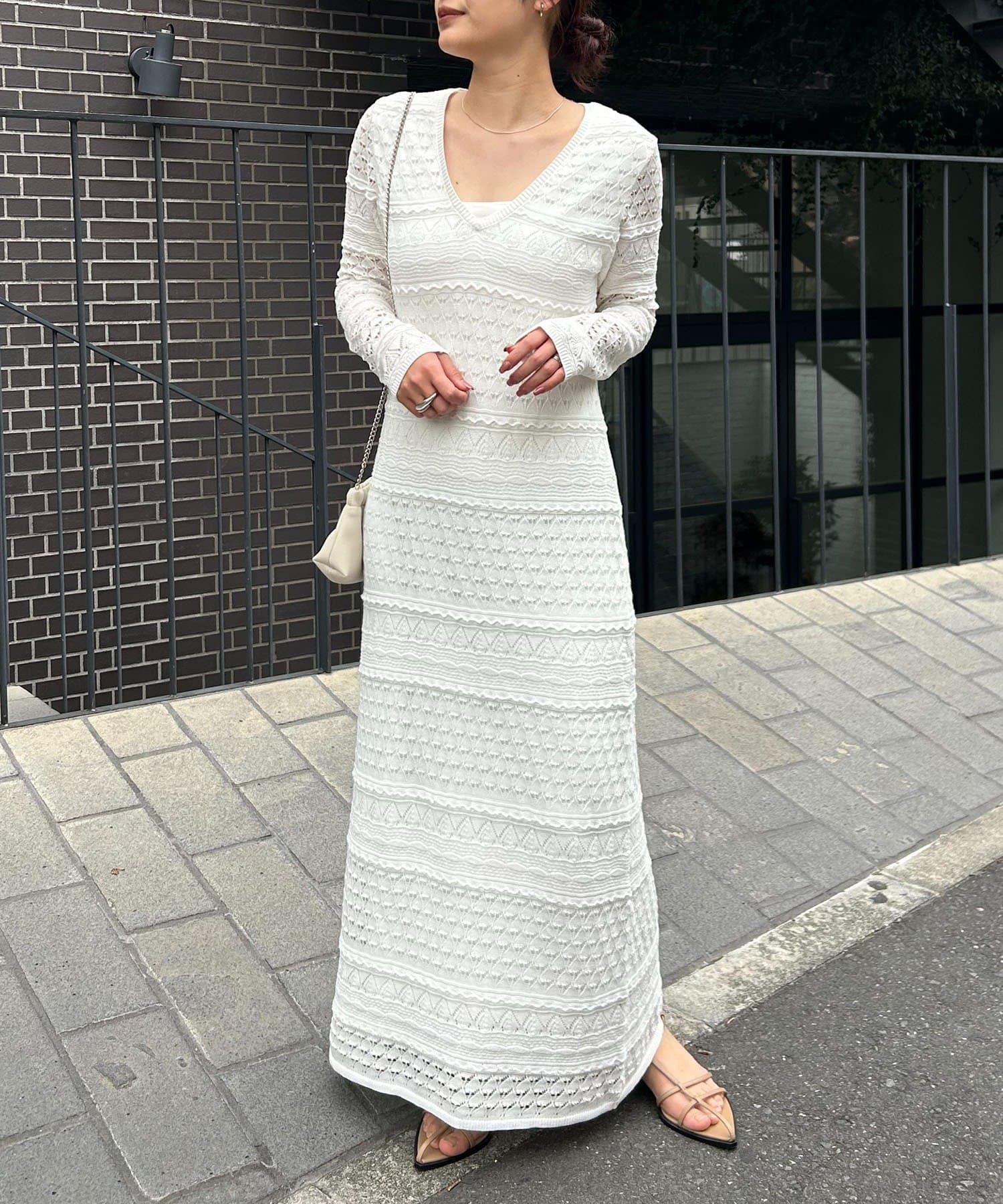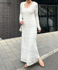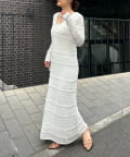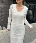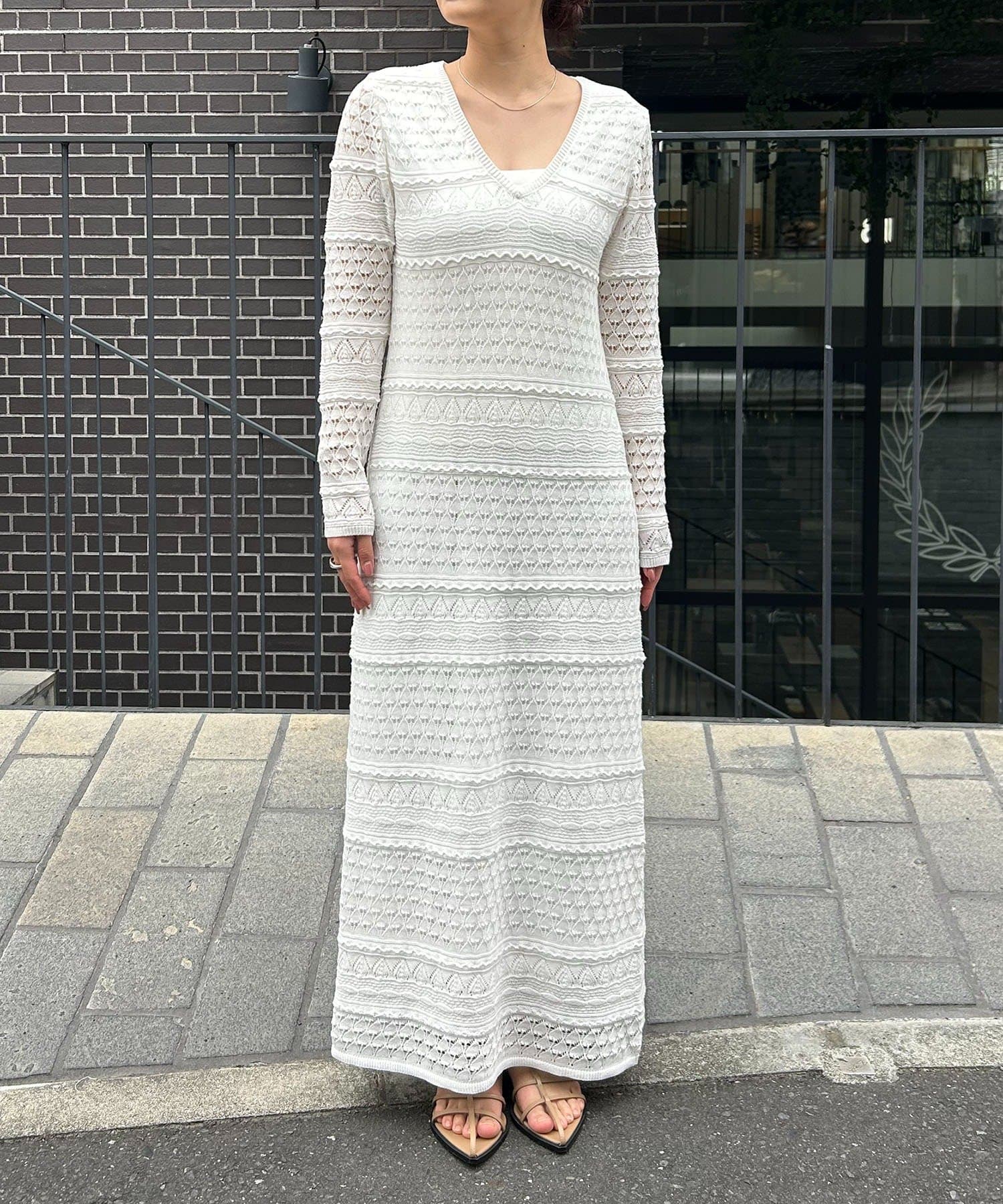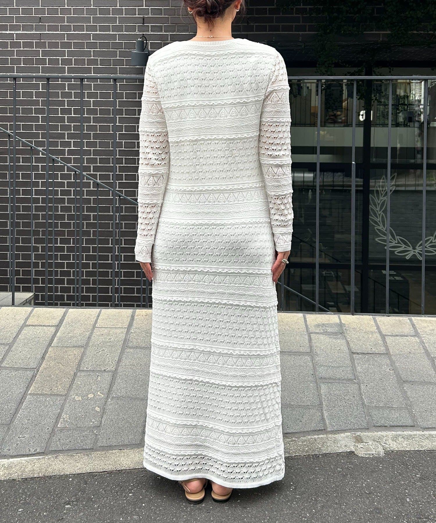 ・異なる編み柄を組み合わせた存在感たっぷりのマキシワンピース