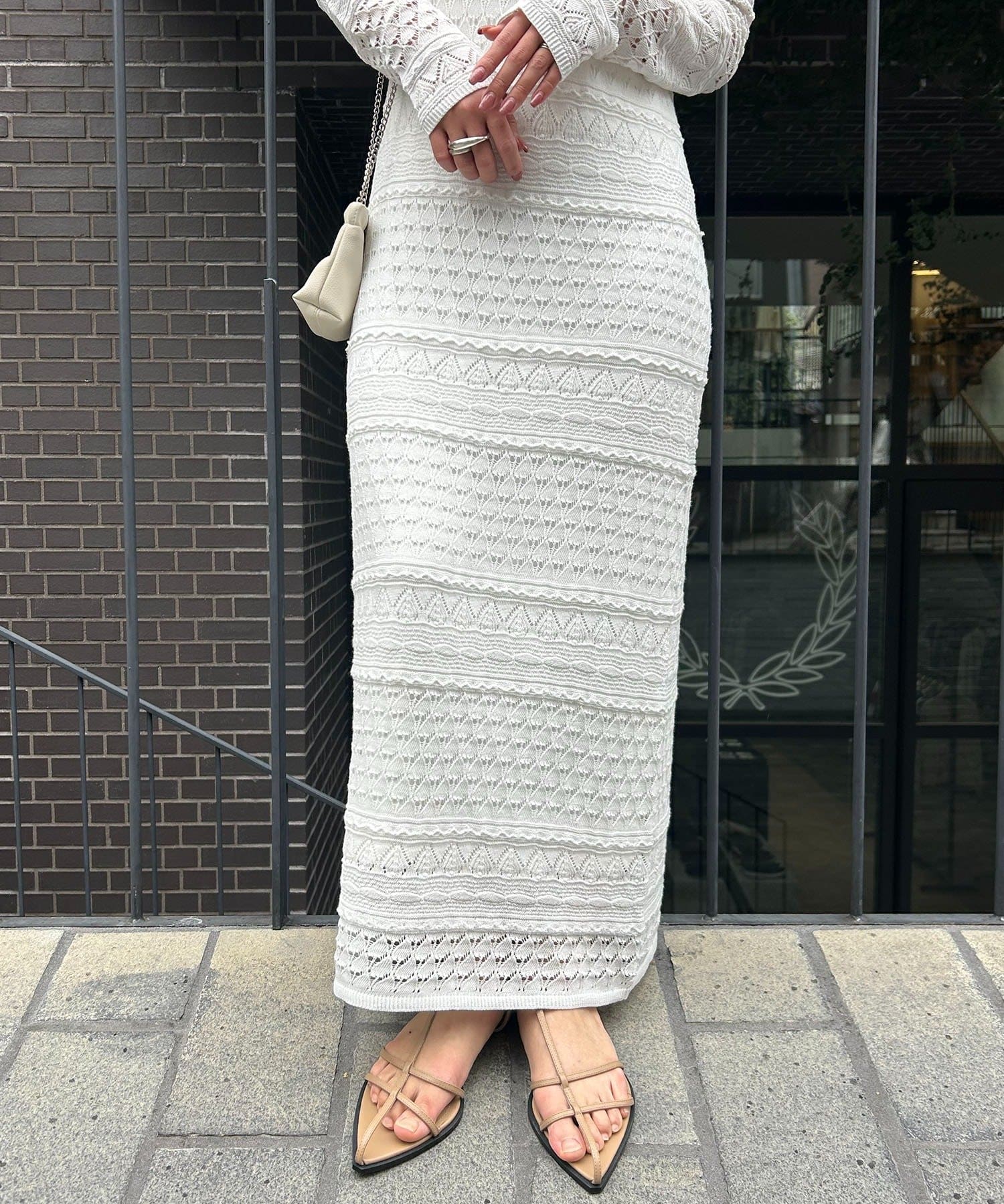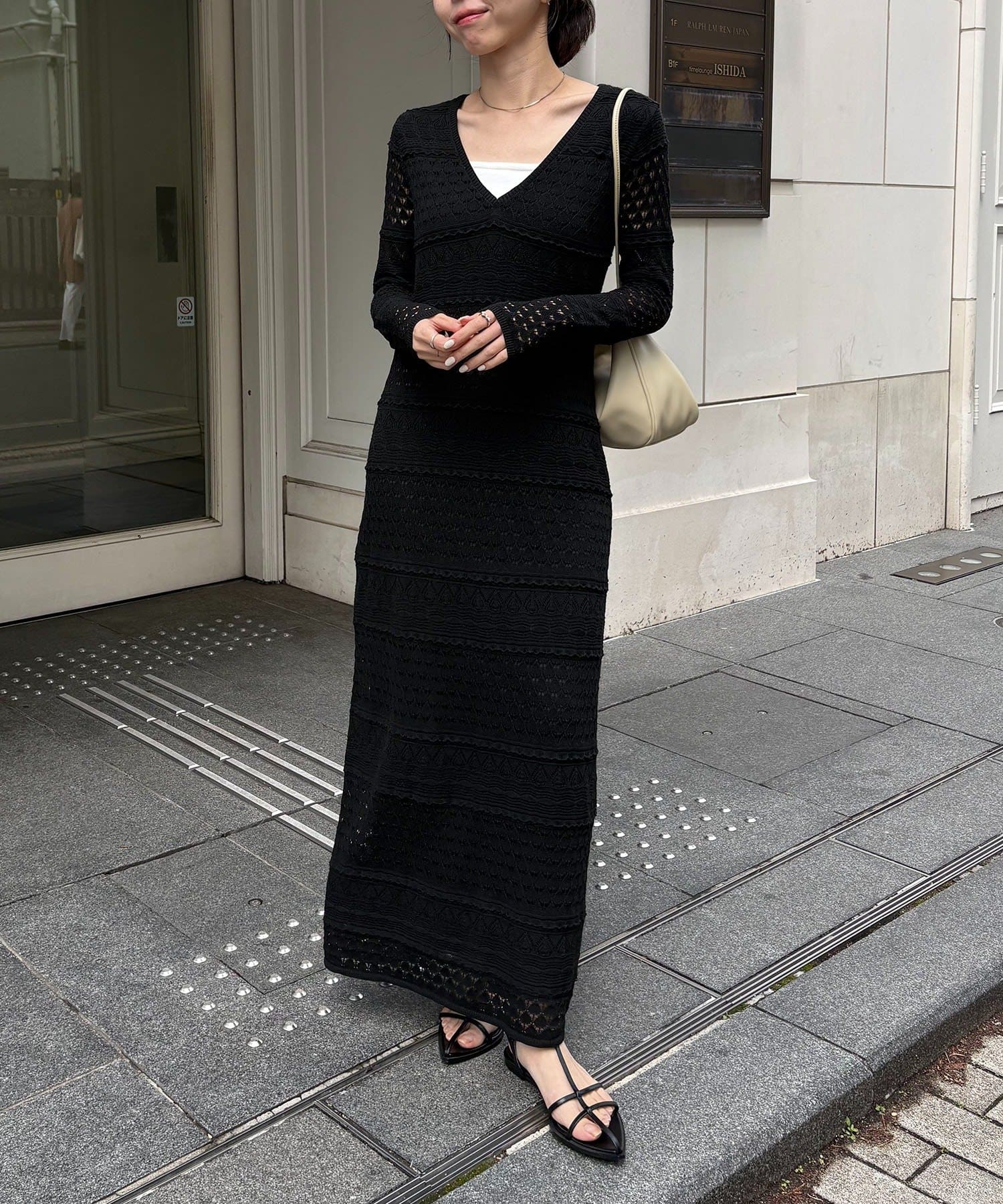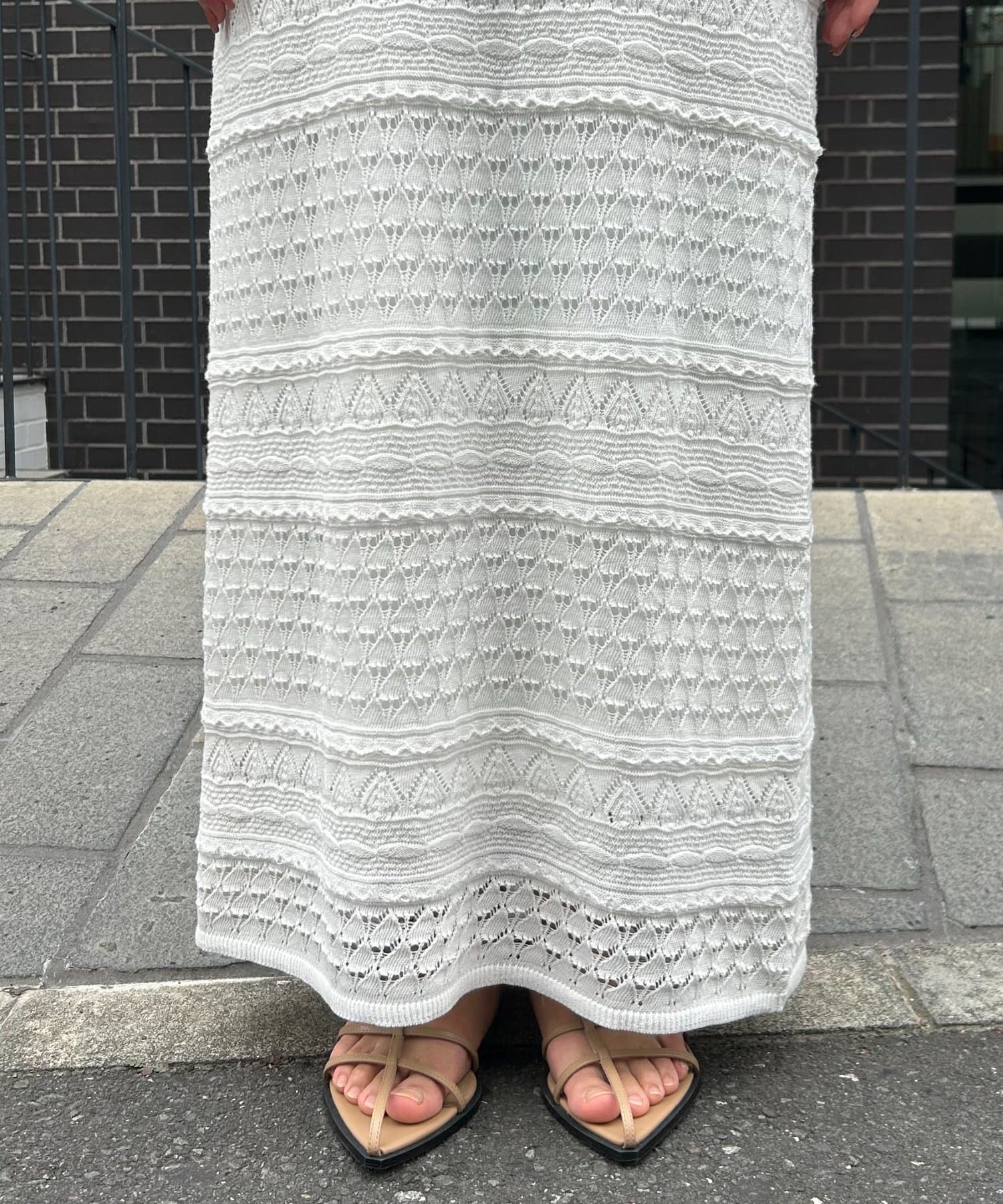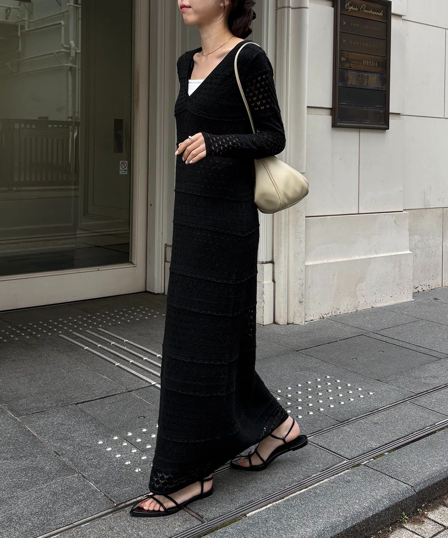 ・異なる編み柄を組み合わせた存在感たっぷりのマキシワンピース