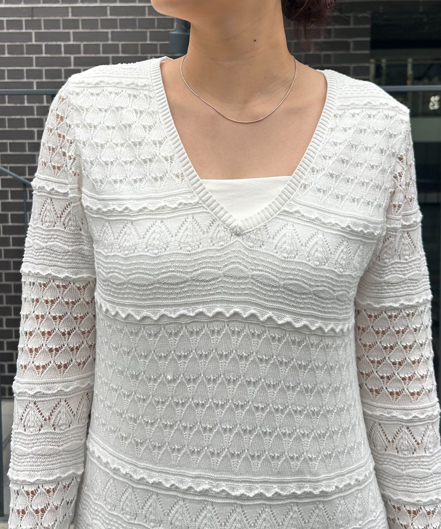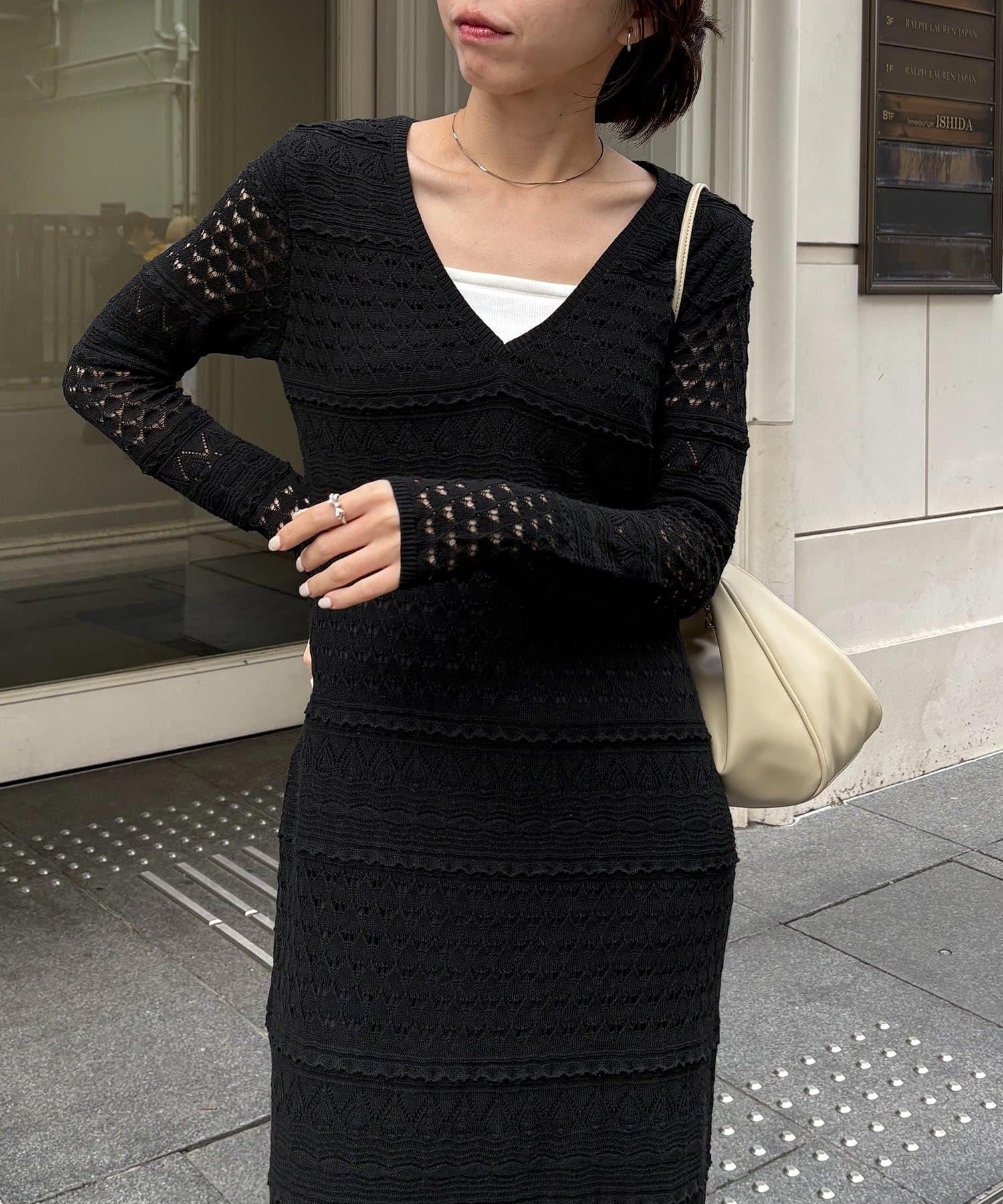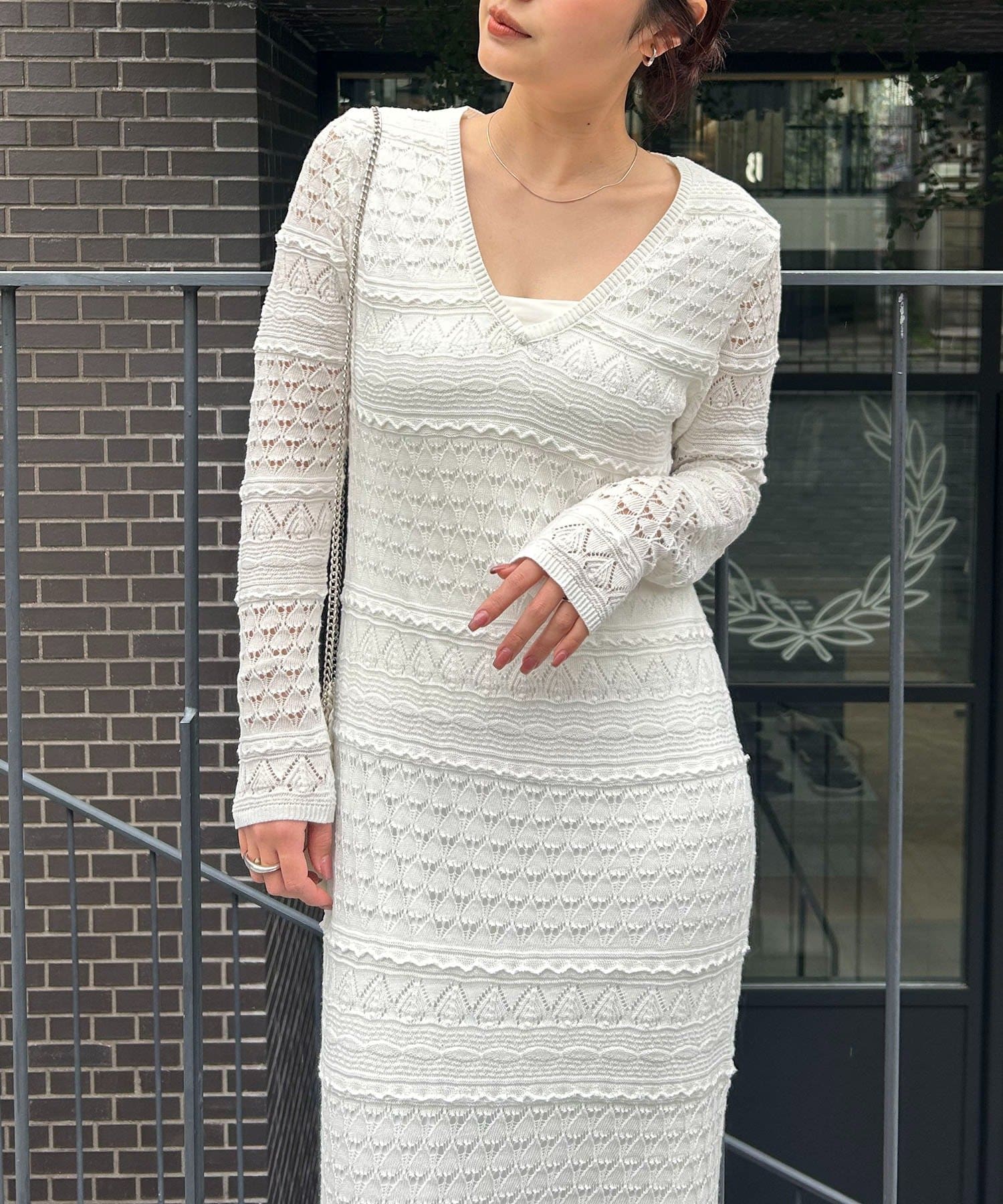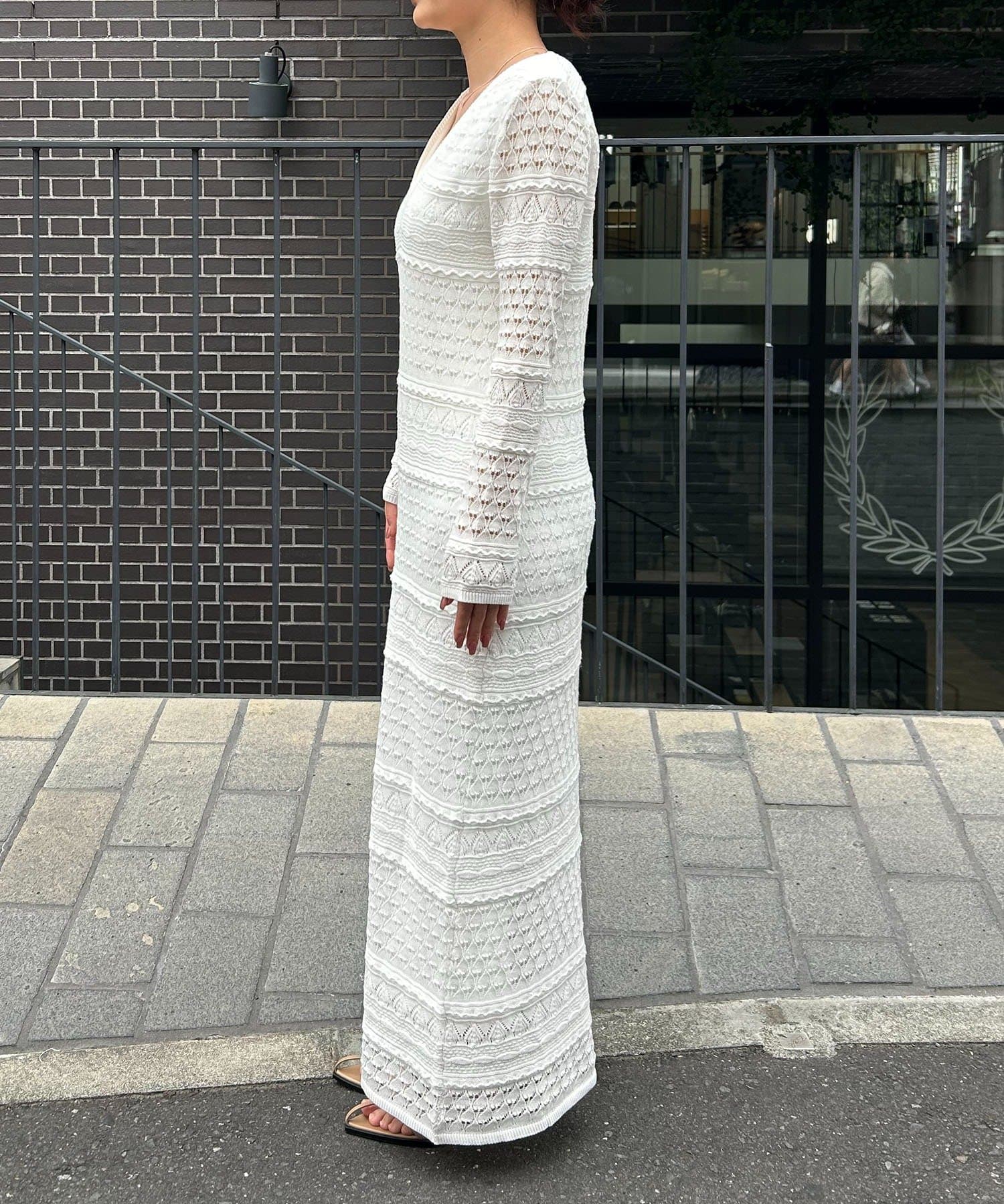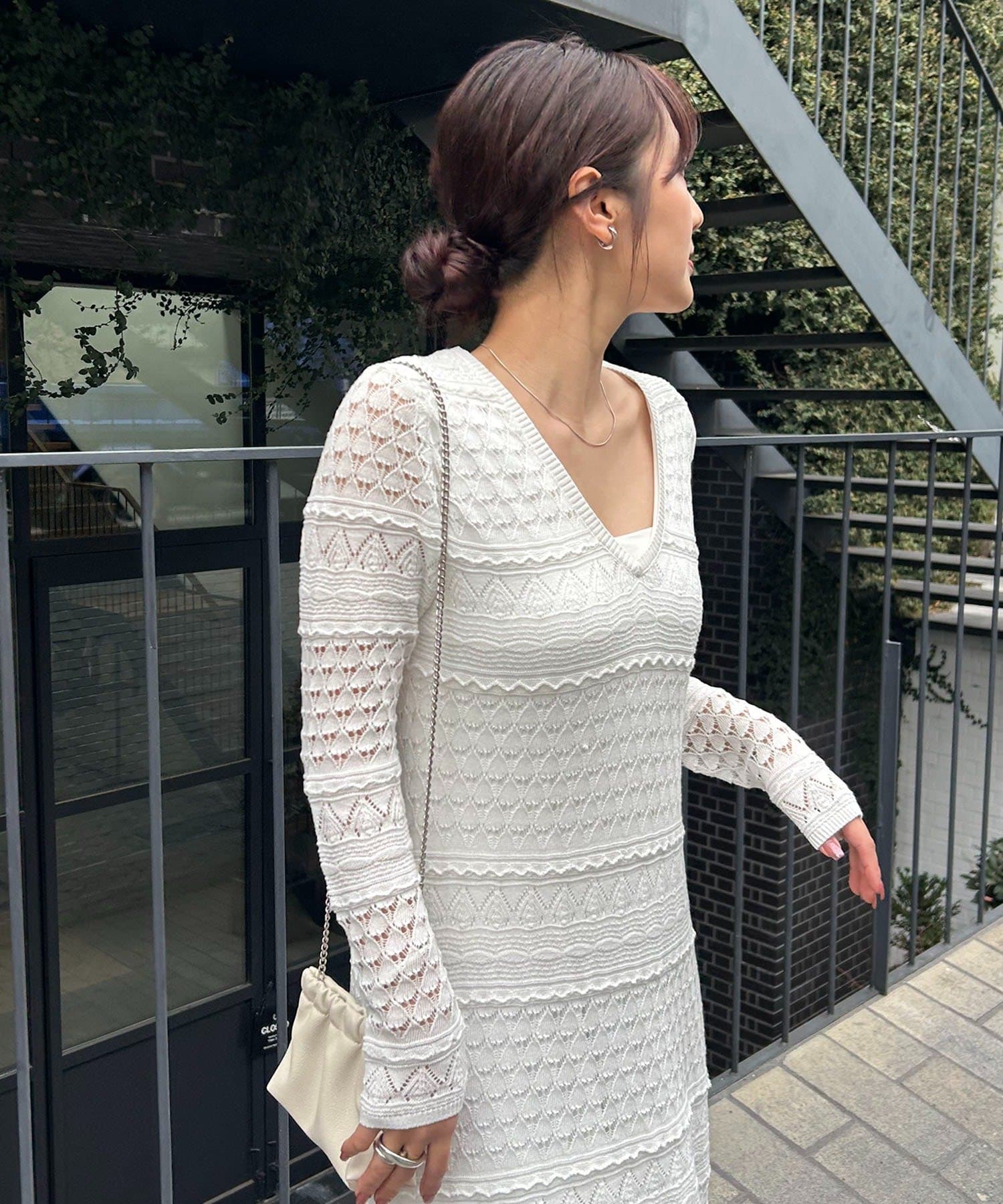 繊細さで魅せるレースニットワンピース
