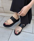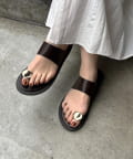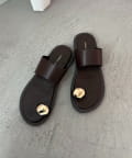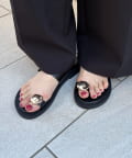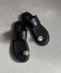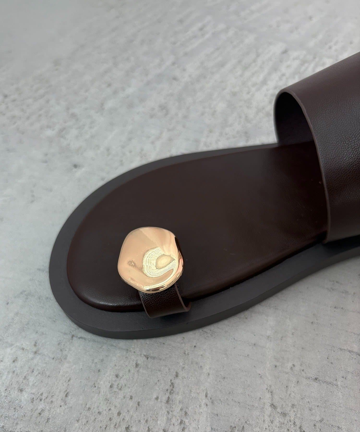 ニュアンスメタルパーツがワンポイントのフラットサンダル