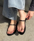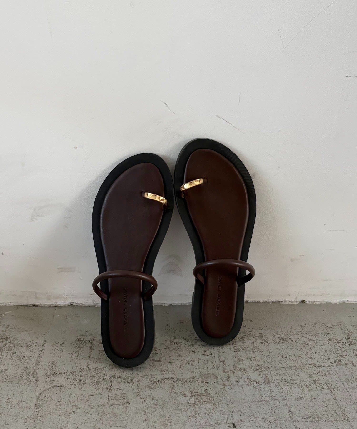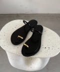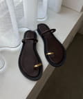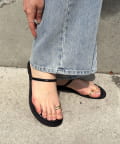 親指にあしらわれたゴールドリングが存在感を放つフラットサンダル