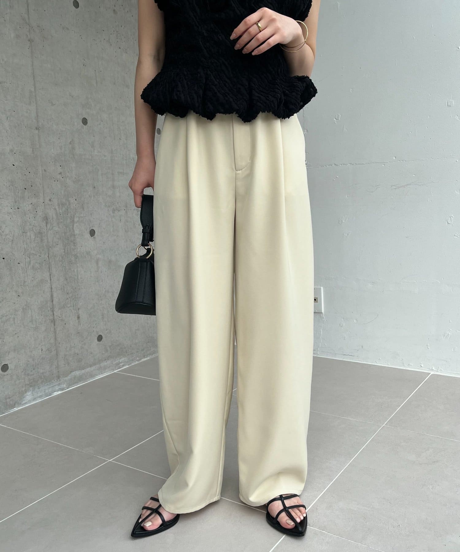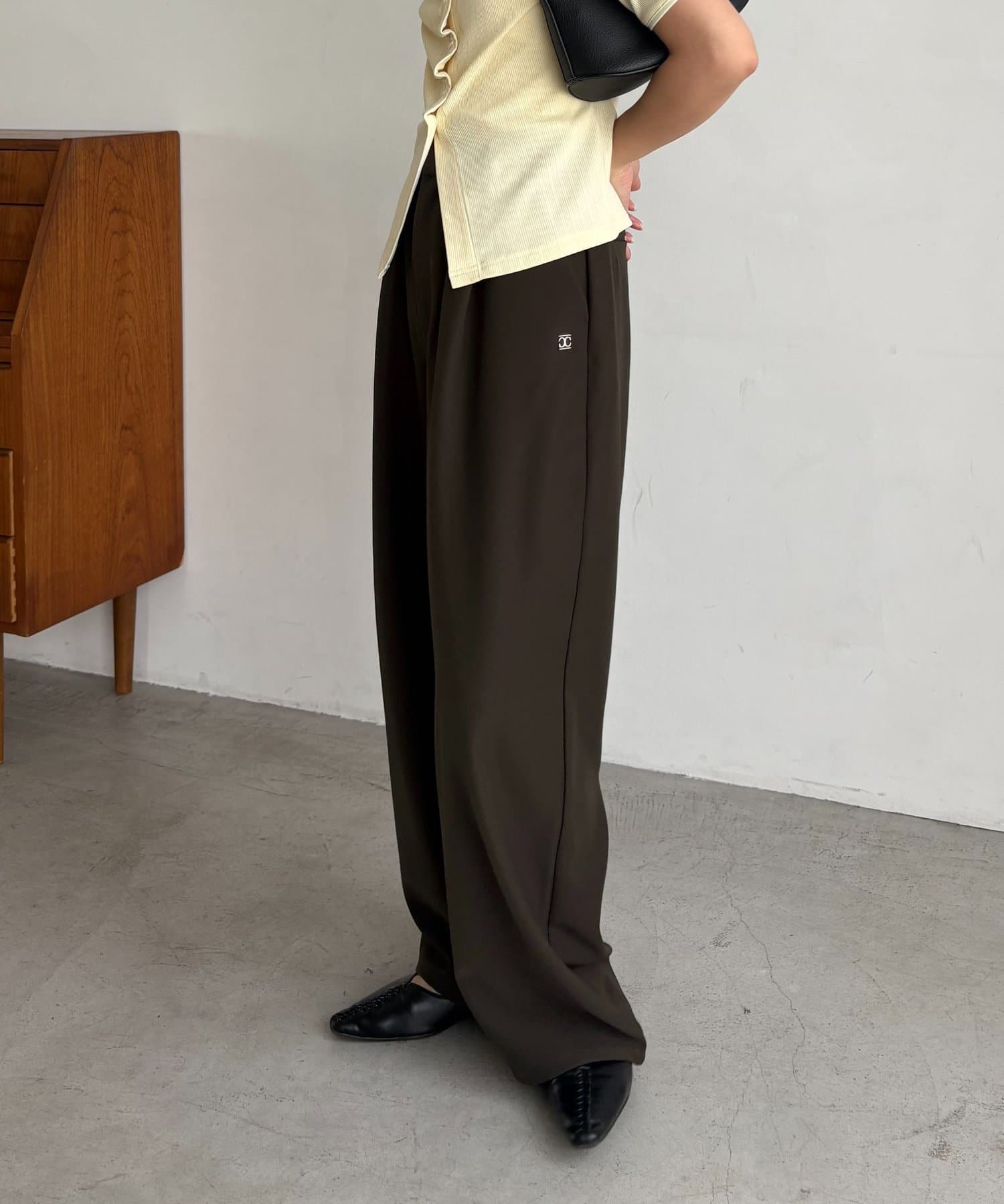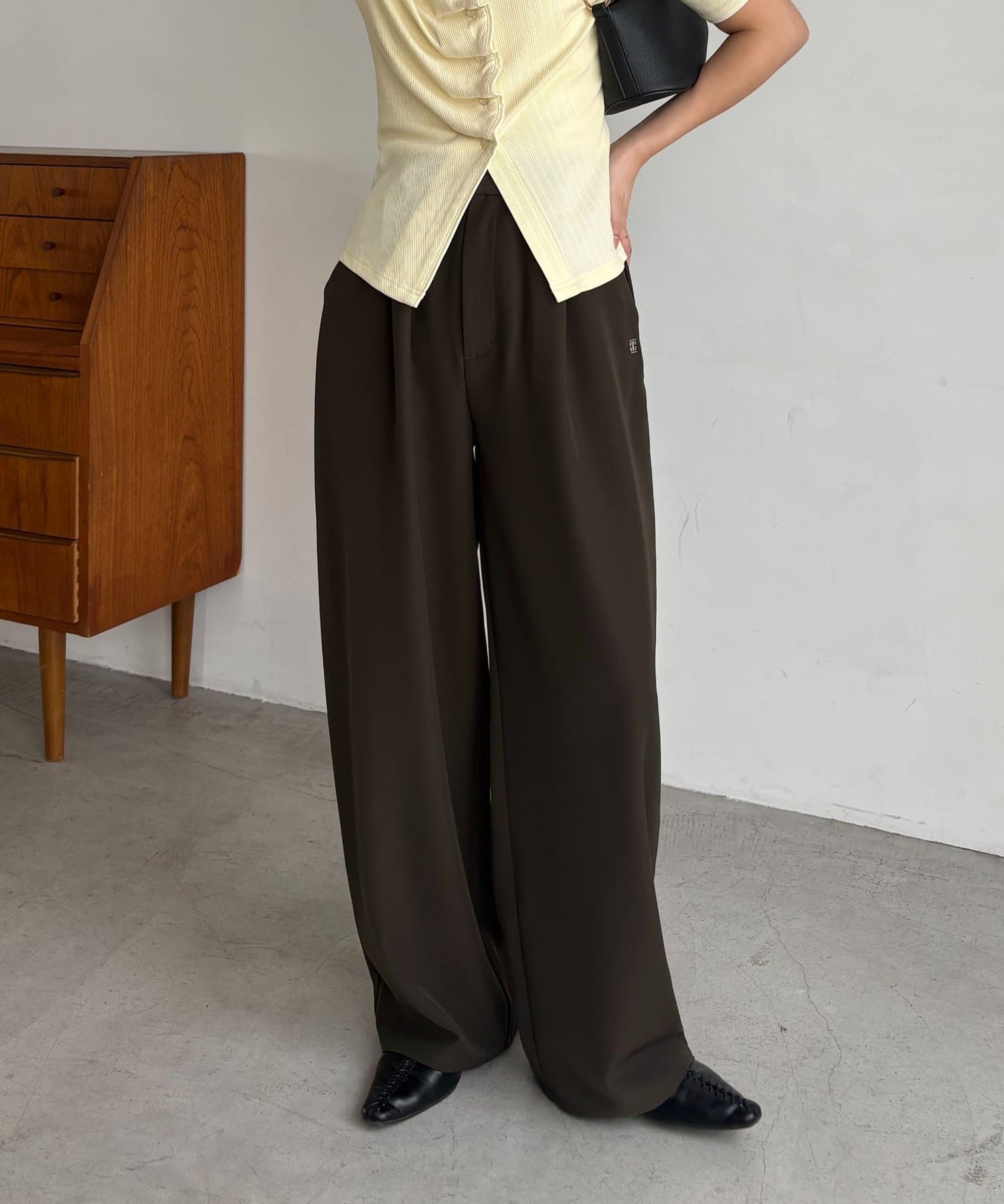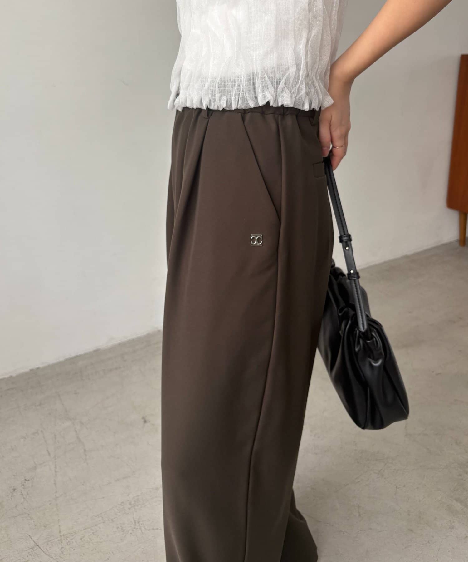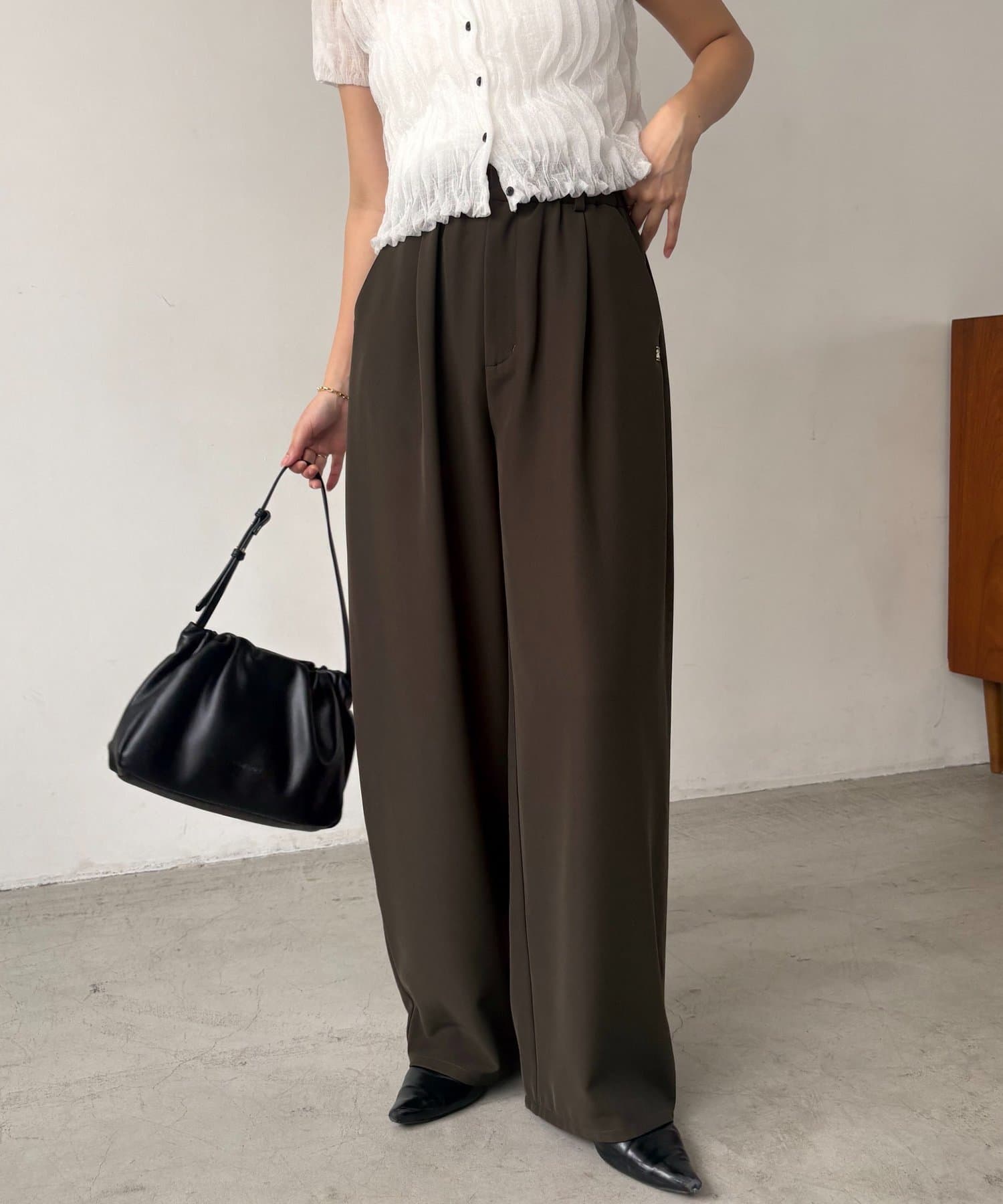 ニュアンスカラーで魅せる、落ち感ワイドパンツ